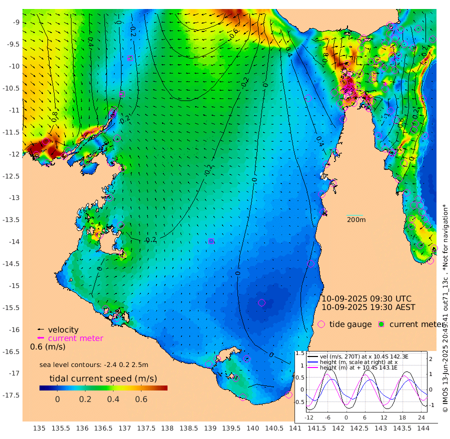 23cm/s -98T +3cm/s rms + 7cm/s -42T. ARA-GOC87 57m 6cm/s -28T +3cm/s rms + 2cm/s -2T. ARA-GOC87 60m 20cm/s -120T +2cm/s rms + 3cm/s 61T. ARA-GOC87 47m -96cm Daru -88cm Bobo Island -15cm Meer Island Barge -35cm Bramble Cay -63cm Unnamed Cay -66cm Pearce Cay -56cm Stephens Island -61cm Merrie England Shoals -84cm Mutacomal Reef -53cm Darnley Island Barge -13cm East Cay -72cm Yorke Island Barge -70cm Rennel Island -75cm Aureed Island -82cm Dungeness Reef -105cm Zagai Island -94cm Yam Island -85cm Dauan Island -81cm Saibai Island -90cm Phipi Reef -110cm Warrior Reef - West -40cm Mabuiag Island Barge -72cm Half Way Island -89cm Coconut Island -77cm Dugong Islet -88cm Poll Island -88cm Kirkcaldie Reef -76cm Suarji Island -89cm Sue Islet 59cm Hawkesbury Island -61cm Alert Patches -71cm Twin Island 27cm Badu Island -80cm St Pauls (Moa Island) 11cm Kubin (Moa Island) -41cm Ince Point -19cm Thursday Island -25cm Nardana Patches 10cm Turtle Head 32cm Round Island 63cm Goods Island 91cm Booby Island 89cm White Rocks Area 80cm Carpentaria -64cm Papou Point 94cm Bampfield Head 62cm Crab Island 77cm Red Wallis Island 31cm Packe Island -87cm Harrington Reef 66cm Herald Camp -36cm Sharp Point 10cm Red Island Point -26cm Possession Island -71cm Alpha Rock -80cm Frederick Point -88cm Wyborn Reef Light -91cm Tetley Island -20cm Triangle Reef -81cm Turtle Head Island -10cm Maclennan Cay 9cm Raine Island -60cm Mcsweeny Reef -50cm Collette Reef -18cm Shadwell Reef -53cm Hannibal Island -31cm Round Point 60cm Vrilya Point -21cm Cape Grenville -19cm Hicks Island -9cm Sir Charles Hardy Island -9cm Harvey Island -2cm Kay Reef 6cm Rocky Island 17cm Chapman Island 14cm Ham Reef 4cm Jubilee Reef -3cm Night Island 13cm Unnamed Reef No. 3 6cm Morris Island 10cm 1st 3 Mile Opening 6cm Creech Reef -5cm Fife Island 14cm Eden Reef 8cm Stanley Island 8cm Normanby River 82cm Yabooma Island 66cm Hutchison River 68cm Elcho Island 69cm North West Crocodile Island 11cm Cape Wessel 32cm Stevens Island -46cm Guluwuru Island 48cm Hopeful Bay 27cm Auster Point 19cm Two Island Bay -2cm Cadell Strait -177cm Mallison Island -27cm Melville Bay (Gove Harbour) -30cm Truant Island -32cm Cape Arnhem -19cm Cape Grey -20cm Hawk Island -7cm Milner Bay (Groote Eylandt) -7cm Cape Beatrice -1cm West Island -2cm Centre Island -28cm Mornington Island -19cm West Wellesley Islands 7cm Bountiful Island -15cm Albert River Mouth -8cm Sweers Island -15cm Karumba -13cm Nassau River Offshore -3cm Christmas Creek 31cm Archer River 35cm Boyd Point 53cm Weipa (Humbug Point) 28cm Pennefather River 59cm Cullen Point
