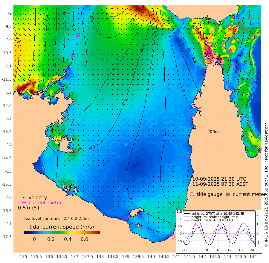 16cm/s -119T +3cm/s rms + 7cm/s -42T. ARA-GOC87 57m 10cm/s -29T +3cm/s rms + 2cm/s -2T. ARA-GOC87 60m 17cm/s -142T +2cm/s rms + 3cm/s 61T. ARA-GOC87 47m -114cm Daru -110cm Bobo Island -43cm Meer Island Barge -62cm Bramble Cay -94cm Unnamed Cay -91cm Pearce Cay -83cm Stephens Island -83cm Merrie England Shoals -105cm Mutacomal Reef -83cm Darnley Island Barge -41cm East Cay -101cm Yorke Island Barge -92cm Rennel Island -103cm Aureed Island -103cm Dungeness Reef -121cm Zagai Island -107cm Yam Island -94cm Dauan Island -100cm Saibai Island -95cm Phipi Reef -122cm Warrior Reef - West -56cm Mabuiag Island Barge -90cm Half Way Island -105cm Coconut Island -101cm Dugong Islet -103cm Poll Island -97cm Kirkcaldie Reef -106cm Suarji Island -112cm Sue Islet 50cm Hawkesbury Island -77cm Alert Patches -83cm Twin Island 25cm Badu Island -94cm St Pauls (Moa Island) 4cm Kubin (Moa Island) -50cm Ince Point -26cm Thursday Island -34cm Nardana Patches 5cm Turtle Head 18cm Round Island 57cm Goods Island 90cm Booby Island 83cm White Rocks Area 75cm Carpentaria -74cm Papou Point 64cm Bampfield Head 90cm Crab Island 87cm Red Wallis Island 37cm Packe Island -109cm Harrington Reef 52cm Herald Camp -33cm Sharp Point 14cm Red Island Point -44cm Possession Island -89cm Alpha Rock -97cm Frederick Point -113cm Wyborn Reef Light -113cm Tetley Island -45cm Triangle Reef -106cm Turtle Head Island -39cm Maclennan Cay -11cm Raine Island -87cm Mcsweeny Reef -76cm Collette Reef -42cm Shadwell Reef -81cm Hannibal Island -57cm Round Point 95cm Vrilya Point -49cm Cape Grenville -46cm Hicks Island -51cm Sir Charles Hardy Island -17cm Harvey Island -33cm Kay Reef -26cm Rocky Island -13cm Chapman Island -15cm Ham Reef -24cm Jubilee Reef -22cm Night Island -11cm Unnamed Reef No. 3 -23cm Morris Island -19cm 1st 3 Mile Opening -21cm Creech Reef -24cm Fife Island -18cm Eden Reef -20cm Stanley Island -24cm Normanby River 38cm Yabooma Island 16cm Hutchison River 31cm Elcho Island 36cm North West Crocodile Island -28cm Cape Wessel 4cm Stevens Island -83cm Guluwuru Island 13cm Hopeful Bay -12cm Auster Point -14cm Two Island Bay -25cm Cadell Strait -169cm Mallison Island -64cm Melville Bay (Gove Harbour) -68cm Truant Island -57cm Cape Arnhem -49cm Cape Grey -37cm Hawk Island -18cm Milner Bay (Groote Eylandt) -10cm Cape Beatrice -4cm West Island 4cm Centre Island -7cm Mornington Island -5cm West Wellesley Islands -18cm Bountiful Island 11cm Albert River Mouth -5cm Sweers Island 15cm Karumba 15cm Nassau River Offshore 22cm Christmas Creek 51cm Archer River 42cm Boyd Point 58cm Weipa (Humbug Point) 67cm Pennefather River 77cm Cullen Point