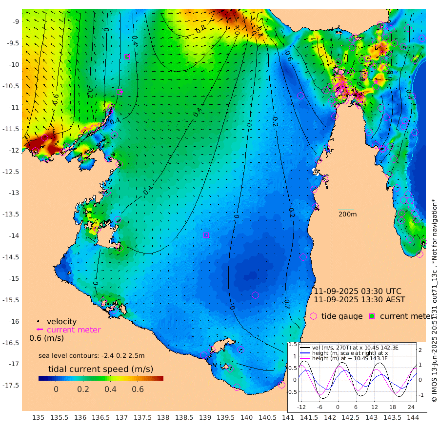 31cm/s 91T +3cm/s rms + 7cm/s -42T. ARA-GOC87 57m 6cm/s 129T +3cm/s rms + 2cm/s -2T. ARA-GOC87 60m 28cm/s 75T +2cm/s rms + 3cm/s 61T. ARA-GOC87 47m 108cm Daru 106cm Bobo Island 47cm Meer Island Barge 63cm Bramble Cay 87cm Unnamed Cay 90cm Pearce Cay 82cm Stephens Island 81cm Merrie England Shoals 94cm Mutacomal Reef 82cm Darnley Island Barge 44cm East Cay 94cm Yorke Island Barge 85cm Rennel Island 97cm Aureed Island 96cm Dungeness Reef 105cm Zagai Island 86cm Yam Island 73cm Dauan Island 69cm Saibai Island 89cm Phipi Reef 104cm Warrior Reef - West 30cm Mabuiag Island Barge 86cm Half Way Island 101cm Coconut Island 88cm Dugong Islet 91cm Poll Island 87cm Kirkcaldie Reef 86cm Suarji Island 91cm Sue Islet -68cm Hawkesbury Island 63cm Alert Patches 68cm Twin Island -31cm Badu Island 75cm St Pauls (Moa Island) -17cm Kubin (Moa Island) 35cm Ince Point 14cm Thursday Island 20cm Nardana Patches -11cm Turtle Head -27cm Round Island -61cm Goods Island -90cm Booby Island -88cm White Rocks Area -79cm Carpentaria 57cm Papou Point -69cm Bampfield Head -73cm Crab Island -87cm Red Wallis Island -38cm Packe Island 100cm Harrington Reef -65cm Herald Camp 27cm Sharp Point -21cm Red Island Point 34cm Possession Island 66cm Alpha Rock 83cm Frederick Point 101cm Wyborn Reef Light 99cm Tetley Island 44cm Triangle Reef 101cm Turtle Head Island 38cm Maclennan Cay 21cm Raine Island 83cm Mcsweeny Reef 75cm Collette Reef 46cm Shadwell Reef 82cm Hannibal Island 60cm Round Point -74cm Vrilya Point 50cm Cape Grenville 49cm Hicks Island 42cm Sir Charles Hardy Island 17cm Harvey Island 34cm Kay Reef 28cm Rocky Island 18cm Chapman Island 17cm Ham Reef 27cm Jubilee Reef 31cm Night Island 16cm Unnamed Reef No. 3 29cm Morris Island 28cm 1st 3 Mile Opening 27cm Creech Reef 33cm Fife Island 27cm Eden Reef 26cm Stanley Island 26cm Normanby River -49cm Yabooma Island -23cm Hutchison River -36cm Elcho Island -46cm North West Crocodile Island 17cm Cape Wessel -3cm Stevens Island 80cm Guluwuru Island -14cm Hopeful Bay 8cm Auster Point 7cm Two Island Bay 30cm Cadell Strait 197cm Mallison Island 63cm Melville Bay (Gove Harbour) 68cm Truant Island 59cm Cape Arnhem 44cm Cape Grey 37cm Hawk Island 19cm Milner Bay (Groote Eylandt) 8cm Cape Beatrice -5cm West Island -2cm Centre Island 20cm Mornington Island 11cm West Wellesley Islands 7cm Bountiful Island 3cm Albert River Mouth 20cm Sweers Island 2cm Karumba 2cm Nassau River Offshore -5cm Christmas Creek -32cm Archer River -35cm Boyd Point -49cm Weipa (Humbug Point) -37cm Pennefather River -67cm Cullen Point