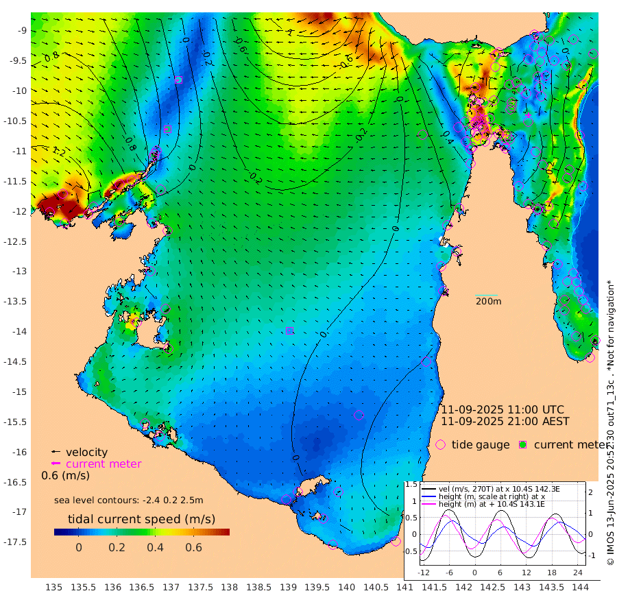 21cm/s -100T +3cm/s rms + 7cm/s -42T. ARA-GOC87 57m 8cm/s -82T +3cm/s rms + 2cm/s -2T. ARA-GOC87 60m 16cm/s -116T +2cm/s rms + 3cm/s 61T. ARA-GOC87 47m -36cm Daru -30cm Bobo Island 11cm Meer Island Barge 6cm Bramble Cay -12cm Unnamed Cay -9cm Pearce Cay -8cm Stephens Island -11cm Merrie England Shoals -26cm Mutacomal Reef -13cm Darnley Island Barge 19cm East Cay -25cm Yorke Island Barge -14cm Rennel Island -23cm Aureed Island -25cm Dungeness Reef -54cm Zagai Island -43cm Yam Island -39cm Dauan Island -47cm Saibai Island -34cm Phipi Reef -51cm Warrior Reef - West -13cm Mabuiag Island Barge -22cm Half Way Island -33cm Coconut Island -24cm Dugong Islet -33cm Poll Island -36cm Kirkcaldie Reef -22cm Suarji Island -44cm Sue Islet 69cm Hawkesbury Island -18cm Alert Patches -25cm Twin Island 45cm Badu Island -33cm St Pauls (Moa Island) 35cm Kubin (Moa Island) -6cm Ince Point 7cm Thursday Island 4cm Nardana Patches 34cm Turtle Head 49cm Round Island 71cm Goods Island 80cm Booby Island 87cm White Rocks Area 39cm Carpentaria -25cm Papou Point 86cm Bampfield Head 50cm Crab Island 70cm Red Wallis Island 48cm Packe Island -28cm Harrington Reef 69cm Herald Camp -25cm Sharp Point 28cm Red Island Point 5cm Possession Island -30cm Alpha Rock -28cm Frederick Point -29cm Wyborn Reef Light -33cm Tetley Island 8cm Triangle Reef -23cm Turtle Head Island 16cm Maclennan Cay 27cm Raine Island -12cm Mcsweeny Reef -9cm Collette Reef 8cm Shadwell Reef -8cm Hannibal Island 12cm Round Point 33cm Vrilya Point 11cm Cape Grenville 15cm Hicks Island 20cm Sir Charles Hardy Island 2cm Harvey Island 23cm Kay Reef 28cm Rocky Island 34cm Chapman Island 28cm Ham Reef 22cm Jubilee Reef 17cm Night Island 28cm Unnamed Reef No. 3 28cm Morris Island 28cm 1st 3 Mile Opening 24cm Creech Reef 23cm Fife Island 35cm Eden Reef 27cm Stanley Island 34cm Normanby River 145cm Yabooma Island 148cm Hutchison River 132cm Elcho Island 132cm North West Crocodile Island 48cm Cape Wessel 91cm Stevens Island -5cm Guluwuru Island 97cm Hopeful Bay 70cm Auster Point 63cm Two Island Bay 68cm Cadell Strait -161cm Mallison Island 15cm Melville Bay (Gove Harbour) 11cm Truant Island -5cm Cape Arnhem 0cm Cape Grey 0cm Hawk Island -6cm Milner Bay (Groote Eylandt) -2cm Cape Beatrice -13cm West Island -18cm Centre Island -11cm Mornington Island -4cm West Wellesley Islands 35cm Bountiful Island 24cm Albert River Mouth 27cm Sweers Island 25cm Karumba 7cm Nassau River Offshore 10cm Christmas Creek 29cm Archer River 27cm Boyd Point 49cm Weipa (Humbug Point) 10cm Pennefather River 39cm Cullen Point