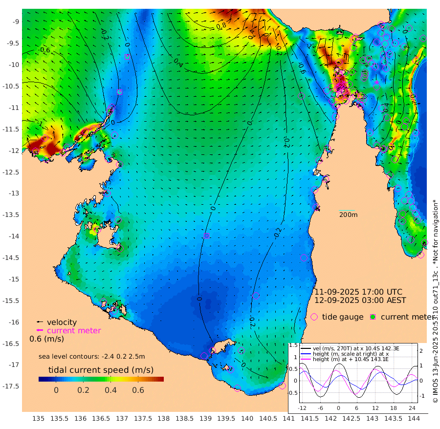 15cm/s 25T +3cm/s rms + 7cm/s -42T. ARA-GOC87 57m 6cm/s 129T +3cm/s rms + 2cm/s -2T. ARA-GOC87 60m 17cm/s 8T +2cm/s rms + 3cm/s 61T. ARA-GOC87 47m 34cm Daru 29cm Bobo Island -14cm Meer Island Barge -7cm Bramble Cay 13cm Unnamed Cay 7cm Pearce Cay 6cm Stephens Island 8cm Merrie England Shoals 27cm Mutacomal Reef 12cm Darnley Island Barge -19cm East Cay 26cm Yorke Island Barge 15cm Rennel Island 21cm Aureed Island 22cm Dungeness Reef 53cm Zagai Island 48cm Yam Island 42cm Dauan Island 57cm Saibai Island 24cm Phipi Reef 54cm Warrior Reef - West 14cm Mabuiag Island Barge 19cm Half Way Island 24cm Coconut Island 27cm Dugong Islet 31cm Poll Island 33cm Kirkcaldie Reef 19cm Suarji Island 47cm Sue Islet -76cm Hawkesbury Island 7cm Alert Patches 18cm Twin Island -66cm Badu Island 28cm St Pauls (Moa Island) -46cm Kubin (Moa Island) -3cm Ince Point -21cm Thursday Island -16cm Nardana Patches -52cm Turtle Head -65cm Round Island -93cm Goods Island -109cm Booby Island -111cm White Rocks Area -69cm Carpentaria 22cm Papou Point -116cm Bampfield Head -87cm Crab Island -97cm Red Wallis Island -71cm Packe Island 25cm Harrington Reef -82cm Herald Camp 24cm Sharp Point -40cm Red Island Point -19cm Possession Island 32cm Alpha Rock 24cm Frederick Point 28cm Wyborn Reef Light 32cm Tetley Island -10cm Triangle Reef 16cm Turtle Head Island -16cm Maclennan Cay -34cm Raine Island 10cm Mcsweeny Reef 5cm Collette Reef -13cm Shadwell Reef 4cm Hannibal Island -16cm Round Point -76cm Vrilya Point -13cm Cape Grenville -16cm Hicks Island -13cm Sir Charles Hardy Island -2cm Harvey Island -24cm Kay Reef -28cm Rocky Island -38cm Chapman Island -28cm Ham Reef -24cm Jubilee Reef -25cm Night Island -32cm Unnamed Reef No. 3 -31cm Morris Island -36cm 1st 3 Mile Opening -30cm Creech Reef -27cm Fife Island -39cm Eden Reef -31cm Stanley Island -31cm Normanby River -105cm Yabooma Island -106cm Hutchison River -96cm Elcho Island -90cm North West Crocodile Island -20cm Cape Wessel -64cm Stevens Island 25cm Guluwuru Island -70cm Hopeful Bay -46cm Auster Point -31cm Two Island Bay -37cm Cadell Strait 146cm Mallison Island 2cm Melville Bay (Gove Harbour) 4cm Truant Island 12cm Cape Arnhem 12cm Cape Grey 9cm Hawk Island 10cm Milner Bay (Groote Eylandt) 12cm Cape Beatrice 23cm West Island 18cm Centre Island 12cm Mornington Island 12cm West Wellesley Islands -9cm Bountiful Island -5cm Albert River Mouth -12cm Sweers Island -10cm Karumba -13cm Nassau River Offshore -25cm Christmas Creek -54cm Archer River -47cm Boyd Point -70cm Weipa (Humbug Point) -55cm Pennefather River -68cm Cullen Point
