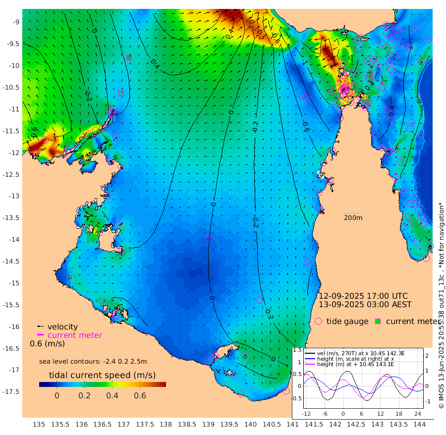 20cm/s 37T +3cm/s rms + 7cm/s -42T. ARA-GOC87 57m 1cm/s 2T +3cm/s rms + 2cm/s -2T. ARA-GOC87 60m 24cm/s 28T +2cm/s rms + 3cm/s 61T. ARA-GOC87 47m 27cm Daru 29cm Bobo Island 3cm Meer Island Barge 6cm Bramble Cay 15cm Unnamed Cay 12cm Pearce Cay 14cm Stephens Island 9cm Merrie England Shoals 18cm Mutacomal Reef 21cm Darnley Island Barge -2cm East Cay 28cm Yorke Island Barge 12cm Rennel Island 22cm Aureed Island 12cm Dungeness Reef 31cm Zagai Island 21cm Yam Island 9cm Dauan Island 24cm Saibai Island -2cm Phipi Reef 30cm Warrior Reef - West -26cm Mabuiag Island Barge 15cm Half Way Island 11cm Coconut Island 18cm Dugong Islet 11cm Poll Island 11cm Kirkcaldie Reef -8cm Suarji Island 25cm Sue Islet -119cm Hawkesbury Island -28cm Alert Patches -16cm Twin Island -109cm Badu Island -9cm St Pauls (Moa Island) -84cm Kubin (Moa Island) -41cm Ince Point -62cm Thursday Island -56cm Nardana Patches -90cm Turtle Head -99cm Round Island -131cm Goods Island -153cm Booby Island -152cm White Rocks Area -117cm Carpentaria -9cm Papou Point -153cm Bampfield Head -129cm Crab Island -143cm Red Wallis Island -112cm Packe Island 13cm Harrington Reef -119cm Herald Camp 10cm Sharp Point -76cm Red Island Point -48cm Possession Island 1cm Alpha Rock -1cm Frederick Point 17cm Wyborn Reef Light 16cm Tetley Island -2cm Triangle Reef 8cm Turtle Head Island -4cm Maclennan Cay -18cm Raine Island 12cm Mcsweeny Reef 10cm Collette Reef -2cm Shadwell Reef 12cm Hannibal Island -3cm Round Point -121cm Vrilya Point -2cm Cape Grenville -1cm Hicks Island 1cm Sir Charles Hardy Island 2cm Harvey Island -9cm Kay Reef -11cm Rocky Island -20cm Chapman Island -12cm Ham Reef -9cm Jubilee Reef -11cm Night Island -17cm Unnamed Reef No. 3 -13cm Morris Island -19cm 1st 3 Mile Opening -13cm Creech Reef -9cm Fife Island -13cm Eden Reef -13cm Stanley Island -8cm Normanby River -45cm Yabooma Island -34cm Hutchison River -34cm Elcho Island -33cm North West Crocodile Island 21cm Cape Wessel -11cm Stevens Island 67cm Guluwuru Island -17cm Hopeful Bay 0cm Auster Point 16cm Two Island Bay 25cm Cadell Strait 173cm Mallison Island 43cm Melville Bay (Gove Harbour) 45cm Truant Island 40cm Cape Arnhem 36cm Cape Grey 32cm Hawk Island 27cm Milner Bay (Groote Eylandt) 25cm Cape Beatrice 26cm West Island 21cm Centre Island 30cm Mornington Island 28cm West Wellesley Islands 25cm Bountiful Island 37cm Albert River Mouth 39cm Sweers Island 29cm Karumba -6cm Nassau River Offshore -30cm Christmas Creek -68cm Archer River -69cm Boyd Point -88cm Weipa (Humbug Point) -85cm Pennefather River -104cm Cullen Point