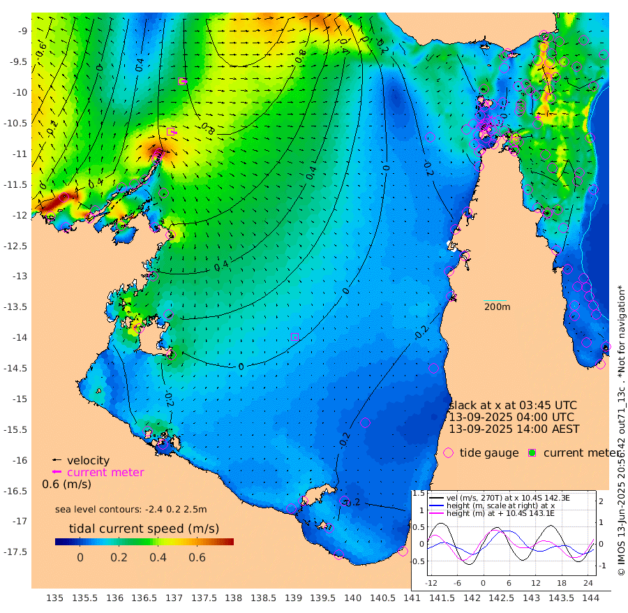46cm/s 106T +3cm/s rms + 7cm/s -42T. ARA-GOC87 57m 14cm/s 157T +3cm/s rms + 2cm/s -2T. ARA-GOC87 60m 39cm/s 96T +2cm/s rms + 3cm/s 61T. ARA-GOC87 47m 64cm Daru 72cm Bobo Island 58cm Meer Island Barge 58cm Bramble Cay 56cm Unnamed Cay 70cm Pearce Cay 64cm Stephens Island 52cm Merrie England Shoals 48cm Mutacomal Reef 68cm Darnley Island Barge 54cm East Cay 66cm Yorke Island Barge 53cm Rennel Island 67cm Aureed Island 56cm Dungeness Reef 56cm Zagai Island 38cm Yam Island 42cm Dauan Island 35cm Saibai Island 45cm Phipi Reef 56cm Warrior Reef - West 6cm Mabuiag Island Barge 56cm Half Way Island 58cm Coconut Island 51cm Dugong Islet 45cm Poll Island 42cm Kirkcaldie Reef 30cm Suarji Island 43cm Sue Islet -29cm Hawkesbury Island 20cm Alert Patches 26cm Twin Island -4cm Badu Island 28cm St Pauls (Moa Island) -3cm Kubin (Moa Island) 11cm Ince Point 2cm Thursday Island 4cm Nardana Patches -3cm Turtle Head -17cm Round Island -18cm Goods Island -33cm Booby Island -39cm White Rocks Area -33cm Carpentaria 23cm Papou Point -29cm Bampfield Head -25cm Crab Island -35cm Red Wallis Island -12cm Packe Island 53cm Harrington Reef -33cm Herald Camp 3cm Sharp Point -11cm Red Island Point 8cm Possession Island 19cm Alpha Rock 39cm Frederick Point 54cm Wyborn Reef Light 50cm Tetley Island 49cm Triangle Reef 64cm Turtle Head Island 48cm Maclennan Cay 46cm Raine Island 58cm Mcsweeny Reef 55cm Collette Reef 49cm Shadwell Reef 61cm Hannibal Island 55cm Round Point -27cm Vrilya Point 45cm Cape Grenville 53cm Hicks Island 53cm Sir Charles Hardy Island 16cm Harvey Island 42cm Kay Reef 45cm Rocky Island 43cm Chapman Island 41cm Ham Reef 48cm Jubilee Reef 45cm Night Island 41cm Unnamed Reef No. 3 48cm Morris Island 49cm 1st 3 Mile Opening 48cm Creech Reef 51cm Fife Island 58cm Eden Reef 44cm Stanley Island 47cm Normanby River 39cm Yabooma Island 74cm Hutchison River 49cm Elcho Island 35cm North West Crocodile Island 72cm Cape Wessel 64cm Stevens Island 124cm Guluwuru Island 49cm Hopeful Bay 65cm Auster Point 70cm Two Island Bay 119cm Cadell Strait 218cm Mallison Island 99cm Melville Bay (Gove Harbour) 108cm Truant Island 79cm Cape Arnhem 40cm Cape Grey 20cm Hawk Island -18cm Milner Bay (Groote Eylandt) -30cm Cape Beatrice -70cm West Island -69cm Centre Island -43cm Mornington Island -51cm West Wellesley Islands -59cm Bountiful Island -65cm Albert River Mouth -68cm Sweers Island -68cm Karumba -27cm Nassau River Offshore -9cm Christmas Creek -8cm Archer River -6cm Boyd Point -11cm Weipa (Humbug Point) -7cm Pennefather River -26cm Cullen Point