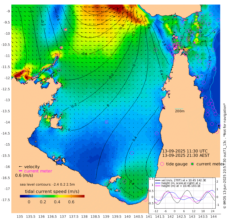 43cm/s -91T +3cm/s rms + 7cm/s -42T. ARA-GOC87 57m 11cm/s -127T +3cm/s rms + 2cm/s -2T. ARA-GOC87 60m 41cm/s -100T +2cm/s rms + 3cm/s 61T. ARA-GOC87 47m -8cm Daru -18cm Bobo Island -16cm Meer Island Barge -12cm Bramble Cay -7cm Unnamed Cay -9cm Pearce Cay -14cm Stephens Island -8cm Merrie England Shoals 1cm Mutacomal Reef -23cm Darnley Island Barge -10cm East Cay -19cm Yorke Island Barge 0cm Rennel Island -11cm Aureed Island 8cm Dungeness Reef 4cm Zagai Island 17cm Yam Island 42cm Dauan Island 26cm Saibai Island 50cm Phipi Reef 16cm Warrior Reef - West 55cm Mabuiag Island Barge -9cm Half Way Island 2cm Coconut Island 0cm Dugong Islet 14cm Poll Island 10cm Kirkcaldie Reef 48cm Suarji Island 4cm Sue Islet 107cm Hawkesbury Island 51cm Alert Patches 38cm Twin Island 97cm Badu Island 39cm St Pauls (Moa Island) 83cm Kubin (Moa Island) 58cm Ince Point 69cm Thursday Island 67cm Nardana Patches 90cm Turtle Head 96cm Round Island 110cm Goods Island 115cm Booby Island 122cm White Rocks Area 69cm Carpentaria 29cm Papou Point 119cm Bampfield Head 85cm Crab Island 110cm Red Wallis Island 98cm Packe Island 2cm Harrington Reef 111cm Herald Camp 5cm Sharp Point 71cm Red Island Point 59cm Possession Island 27cm Alpha Rock 21cm Frederick Point 0cm Wyborn Reef Light 3cm Tetley Island -3cm Triangle Reef -7cm Turtle Head Island -4cm Maclennan Cay -3cm Raine Island -8cm Mcsweeny Reef -9cm Collette Reef -8cm Shadwell Reef -13cm Hannibal Island -6cm Round Point 66cm Vrilya Point -5cm Cape Grenville -8cm Hicks Island -4cm Sir Charles Hardy Island -4cm Harvey Island -5cm Kay Reef -3cm Rocky Island 1cm Chapman Island -5cm Ham Reef -9cm Jubilee Reef -5cm Night Island -2cm Unnamed Reef No. 3 -4cm Morris Island -2cm 1st 3 Mile Opening -6cm Creech Reef -7cm Fife Island -12cm Eden Reef -7cm Stanley Island -9cm Normanby River 16cm Yabooma Island 4cm Hutchison River 7cm Elcho Island 12cm North West Crocodile Island -52cm Cape Wessel -25cm Stevens Island -94cm Guluwuru Island -12cm Hopeful Bay -33cm Auster Point -48cm Two Island Bay -69cm Cadell Strait -237cm Mallison Island -64cm Melville Bay (Gove Harbour) -73cm Truant Island -55cm Cape Arnhem -32cm Cape Grey -15cm Hawk Island -5cm Milner Bay (Groote Eylandt) 8cm Cape Beatrice 24cm West Island 22cm Centre Island 38cm Mornington Island 42cm West Wellesley Islands 75cm Bountiful Island 66cm Albert River Mouth 64cm Sweers Island 73cm Karumba 54cm Nassau River Offshore 54cm Christmas Creek 58cm Archer River 54cm Boyd Point 75cm Weipa (Humbug Point) 40cm Pennefather River 70cm Cullen Point