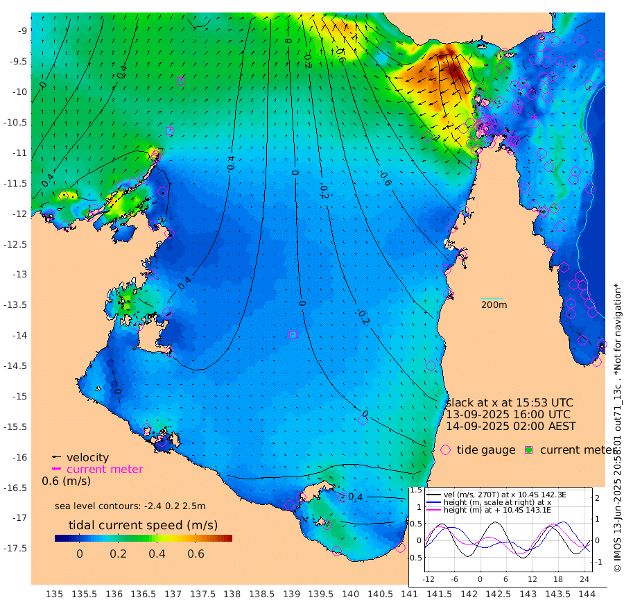 16cm/s 40T +3cm/s rms + 7cm/s -42T. ARA-GOC87 57m 11cm/s -81T +3cm/s rms + 2cm/s -2T. ARA-GOC87 60m 24cm/s 36T +2cm/s rms + 3cm/s 61T. ARA-GOC87 47m 5cm Daru 13cm Bobo Island 7cm Meer Island Barge 4cm Bramble Cay -2cm Unnamed Cay 6cm Pearce Cay 4cm Stephens Island -11cm Merrie England Shoals -9cm Mutacomal Reef 10cm Darnley Island Barge 5cm East Cay 9cm Yorke Island Barge -3cm Rennel Island 10cm Aureed Island -2cm Dungeness Reef 11cm Zagai Island -3cm Yam Island 13cm Dauan Island 12cm Saibai Island 9cm Phipi Reef 17cm Warrior Reef - West -37cm Mabuiag Island Barge -8cm Half Way Island -9cm Coconut Island -8cm Dugong Islet -11cm Poll Island -20cm Kirkcaldie Reef -20cm Suarji Island -8cm Sue Islet -111cm Hawkesbury Island -49cm Alert Patches -40cm Twin Island -94cm Badu Island -34cm St Pauls (Moa Island) -79cm Kubin (Moa Island) -57cm Ince Point -74cm Thursday Island -67cm Nardana Patches -84cm Turtle Head -88cm Round Island -112cm Goods Island -140cm Booby Island -135cm White Rocks Area -141cm Carpentaria -32cm Papou Point -135cm Bampfield Head -125cm Crab Island -135cm Red Wallis Island -103cm Packe Island -16cm Harrington Reef -106cm Herald Camp -6cm Sharp Point -79cm Red Island Point -56cm Possession Island -31cm Alpha Rock -26cm Frederick Point -9cm Wyborn Reef Light -11cm Tetley Island 2cm Triangle Reef -19cm Turtle Head Island 0cm Maclennan Cay -3cm Raine Island -2cm Mcsweeny Reef -1cm Collette Reef 0cm Shadwell Reef 0cm Hannibal Island -3cm Round Point -137cm Vrilya Point -7cm Cape Grenville 3cm Hicks Island 7cm Sir Charles Hardy Island 0cm Harvey Island -8cm Kay Reef 2cm Rocky Island -3cm Chapman Island -1cm Ham Reef 0cm Jubilee Reef -2cm Night Island -6cm Unnamed Reef No. 3 -1cm Morris Island -5cm 1st 3 Mile Opening -3cm Creech Reef 4cm Fife Island 5cm Eden Reef -6cm Stanley Island 1cm Normanby River 76cm Yabooma Island 109cm Hutchison River 88cm Elcho Island 84cm North West Crocodile Island 76cm Cape Wessel 82cm Stevens Island 109cm Guluwuru Island 77cm Hopeful Bay 72cm Auster Point 84cm Two Island Bay 123cm Cadell Strait 131cm Mallison Island 94cm Melville Bay (Gove Harbour) 93cm Truant Island 70cm Cape Arnhem 57cm Cape Grey 55cm Hawk Island 35cm Milner Bay (Groote Eylandt) 33cm Cape Beatrice 11cm West Island 5cm Centre Island 53cm Mornington Island 47cm West Wellesley Islands 81cm Bountiful Island 110cm Albert River Mouth 113cm Sweers Island 99cm Karumba 21cm Nassau River Offshore -10cm Christmas Creek -53cm Archer River -63cm Boyd Point -65cm Weipa (Humbug Point) -97cm Pennefather River -107cm Cullen Point