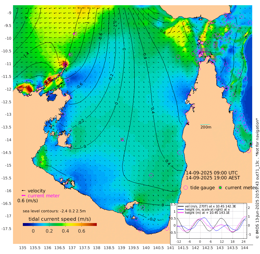 29cm/s -91T +3cm/s rms + 7cm/s -42T. ARA-GOC87 57m 26cm/s 162T +3cm/s rms + 2cm/s -2T. ARA-GOC87 60m 39cm/s -99T +2cm/s rms + 3cm/s 61T. ARA-GOC87 47m 74cm Daru 60cm Bobo Island 48cm Meer Island Barge 59cm Bramble Cay 79cm Unnamed Cay 63cm Pearce Cay 70cm Stephens Island 85cm Merrie England Shoals 86cm Mutacomal Reef 66cm Darnley Island Barge 50cm East Cay 70cm Yorke Island Barge 76cm Rennel Island 67cm Aureed Island 75cm Dungeness Reef 51cm Zagai Island 62cm Yam Island 35cm Dauan Island 35cm Saibai Island 45cm Phipi Reef 53cm Warrior Reef - West 52cm Mabuiag Island Barge 80cm Half Way Island 73cm Coconut Island 87cm Dugong Islet 72cm Poll Island 84cm Kirkcaldie Reef 78cm Suarji Island 75cm Sue Islet 71cm Hawkesbury Island 91cm Alert Patches 82cm Twin Island 59cm Badu Island 77cm St Pauls (Moa Island) 67cm Kubin (Moa Island) 79cm Ince Point 82cm Thursday Island 79cm Nardana Patches 80cm Turtle Head 66cm Round Island 77cm Goods Island 86cm Booby Island 82cm White Rocks Area 96cm Carpentaria 59cm Papou Point 86cm Bampfield Head 67cm Crab Island 84cm Red Wallis Island 82cm Packe Island 90cm Harrington Reef 81cm Herald Camp 24cm Sharp Point 62cm Red Island Point 71cm Possession Island 80cm Alpha Rock 82cm Frederick Point 78cm Wyborn Reef Light 76cm Tetley Island 46cm Triangle Reef 81cm Turtle Head Island 53cm Maclennan Cay 38cm Raine Island 74cm Mcsweeny Reef 70cm Collette Reef 54cm Shadwell Reef 75cm Hannibal Island 62cm Round Point 81cm Vrilya Point 69cm Cape Grenville 53cm Hicks Island 60cm Sir Charles Hardy Island 20cm Harvey Island 62cm Kay Reef 46cm Rocky Island 41cm Chapman Island 42cm Ham Reef 45cm Jubilee Reef 46cm Night Island 46cm Unnamed Reef No. 3 48cm Morris Island 49cm 1st 3 Mile Opening 50cm Creech Reef 43cm Fife Island 47cm Eden Reef 57cm Stanley Island 51cm Normanby River -203cm Yabooma Island -238cm Hutchison River -211cm Elcho Island -206cm North West Crocodile Island -143cm Cape Wessel -191cm Stevens Island -126cm Guluwuru Island -172cm Hopeful Bay -154cm Auster Point -163cm Two Island Bay -218cm Cadell Strait -72cm Mallison Island -120cm Melville Bay (Gove Harbour) -125cm Truant Island -80cm Cape Arnhem -56cm Cape Grey -46cm Hawk Island -30cm Milner Bay (Groote Eylandt) -15cm Cape Beatrice 26cm West Island 26cm Centre Island 15cm Mornington Island 26cm West Wellesley Islands 1cm Bountiful Island -52cm Albert River Mouth -55cm Sweers Island -40cm Karumba 40cm Nassau River Offshore 61cm Christmas Creek 62cm Archer River 67cm Boyd Point 63cm Weipa (Humbug Point) 68cm Pennefather River 72cm Cullen Point