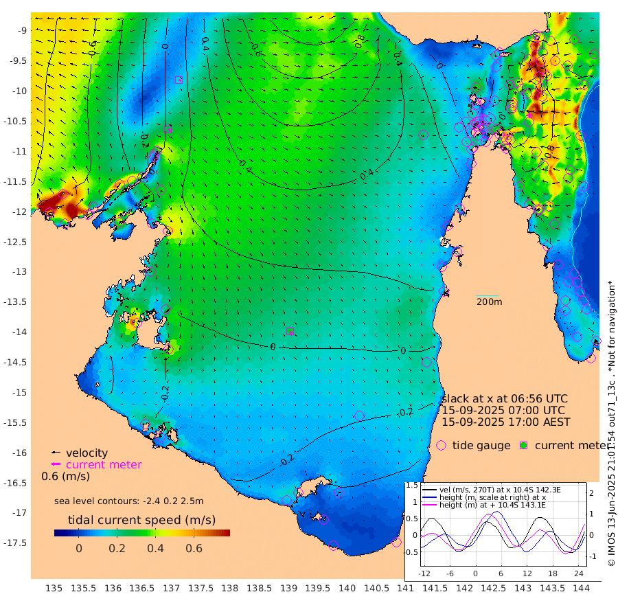 26cm/s 115T +3cm/s rms + 7cm/s -42T. ARA-GOC87 57m 31cm/s 158T +3cm/s rms + 2cm/s -2T. ARA-GOC87 60m 15cm/s 119T +2cm/s rms + 3cm/s 61T. ARA-GOC87 47m 63cm Daru 71cm Bobo Island 92cm Meer Island Barge 89cm Bramble Cay 81cm Unnamed Cay 81cm Pearce Cay 89cm Stephens Island 85cm Merrie England Shoals 63cm Mutacomal Reef 97cm Darnley Island Barge 91cm East Cay 82cm Yorke Island Barge 68cm Rennel Island 74cm Aureed Island 54cm Dungeness Reef 20cm Zagai Island 15cm Yam Island -10cm Dauan Island -5cm Saibai Island -13cm Phipi Reef 17cm Warrior Reef - West -15cm Mabuiag Island Barge 75cm Half Way Island 52cm Coconut Island 68cm Dugong Islet 33cm Poll Island 43cm Kirkcaldie Reef 4cm Suarji Island 39cm Sue Islet 3cm Hawkesbury Island 14cm Alert Patches 17cm Twin Island -5cm Badu Island 6cm St Pauls (Moa Island) 4cm Kubin (Moa Island) 6cm Ince Point 6cm Thursday Island 4cm Nardana Patches 7cm Turtle Head -8cm Round Island 11cm Goods Island 14cm Booby Island 3cm White Rocks Area 37cm Carpentaria 6cm Papou Point 11cm Bampfield Head 10cm Crab Island 11cm Red Wallis Island 11cm Packe Island 62cm Harrington Reef 4cm Herald Camp -4cm Sharp Point 1cm Red Island Point 3cm Possession Island 18cm Alpha Rock 35cm Frederick Point 57cm Wyborn Reef Light 49cm Tetley Island 73cm Triangle Reef 72cm Turtle Head Island 84cm Maclennan Cay 81cm Raine Island 80cm Mcsweeny Reef 82cm Collette Reef 83cm Shadwell Reef 93cm Hannibal Island 89cm Round Point 26cm Vrilya Point 89cm Cape Grenville 86cm Hicks Island 97cm Sir Charles Hardy Island 28cm Harvey Island 94cm Kay Reef 86cm Rocky Island 86cm Chapman Island 86cm Ham Reef 89cm Jubilee Reef 80cm Night Island 87cm Unnamed Reef No. 3 91cm Morris Island 89cm 1st 3 Mile Opening 92cm Creech Reef 88cm Fife Island 110cm Eden Reef 97cm Stanley Island 100cm Normanby River -69cm Yabooma Island -66cm Hutchison River -69cm Elcho Island -79cm North West Crocodile Island -1cm Cape Wessel -44cm Stevens Island 47cm Guluwuru Island -42cm Hopeful Bay -20cm Auster Point -15cm Two Island Bay -7cm Cadell Strait 192cm Mallison Island 21cm Melville Bay (Gove Harbour) 28cm Truant Island 22cm Cape Arnhem -3cm Cape Grey -21cm Hawk Island -48cm Milner Bay (Groote Eylandt) -49cm Cape Beatrice -63cm West Island -64cm Centre Island -61cm Mornington Island -56cm West Wellesley Islands -86cm Bountiful Island -134cm Albert River Mouth -142cm Sweers Island -131cm Karumba -23cm Nassau River Offshore 14cm Christmas Creek 27cm Archer River 35cm Boyd Point 27cm Weipa (Humbug Point) 32cm Pennefather River 22cm Cullen Point