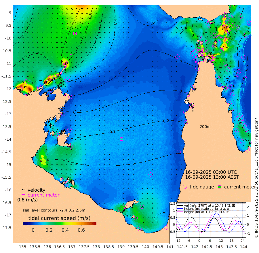 33cm/s 119T +3cm/s rms + 7cm/s -42T. ARA-GOC87 57m 17cm/s 19T +3cm/s rms + 2cm/s -2T. ARA-GOC87 60m 36cm/s 115T +2cm/s rms + 3cm/s 61T. ARA-GOC87 47m -86cm Daru -82cm Bobo Island -70cm Meer Island Barge -86cm Bramble Cay -97cm Unnamed Cay -86cm Pearce Cay -95cm Stephens Island -105cm Merrie England Shoals -95cm Mutacomal Reef -91cm Darnley Island Barge -77cm East Cay -87cm Yorke Island Barge -91cm Rennel Island -85cm Aureed Island -76cm Dungeness Reef -31cm Zagai Island -36cm Yam Island 13cm Dauan Island 14cm Saibai Island -9cm Phipi Reef -37cm Warrior Reef - West 27cm Mabuiag Island Barge -91cm Half Way Island -69cm Coconut Island -92cm Dugong Islet -55cm Poll Island -67cm Kirkcaldie Reef -38cm Suarji Island -54cm Sue Islet 62cm Hawkesbury Island -30cm Alert Patches -30cm Twin Island 67cm Badu Island -19cm St Pauls (Moa Island) 37cm Kubin (Moa Island) -3cm Ince Point 11cm Thursday Island 8cm Nardana Patches 22cm Turtle Head 45cm Round Island 52cm Goods Island 69cm Booby Island 60cm White Rocks Area 58cm Carpentaria -8cm Papou Point 73cm Bampfield Head 63cm Crab Island 61cm Red Wallis Island 34cm Packe Island -92cm Harrington Reef 48cm Herald Camp -11cm Sharp Point 27cm Red Island Point 1cm Possession Island -38cm Alpha Rock -53cm Frederick Point -77cm Wyborn Reef Light -68cm Tetley Island -56cm Triangle Reef -75cm Turtle Head Island -69cm Maclennan Cay -52cm Raine Island -90cm Mcsweeny Reef -88cm Collette Reef -69cm Shadwell Reef -99cm Hannibal Island -87cm Round Point 55cm Vrilya Point -89cm Cape Grenville -77cm Hicks Island -79cm Sir Charles Hardy Island -27cm Harvey Island -82cm Kay Reef -66cm Rocky Island -57cm Chapman Island -57cm Ham Reef -62cm Jubilee Reef -63cm Night Island -60cm Unnamed Reef No. 3 -70cm Morris Island -60cm 1st 3 Mile Opening -67cm Creech Reef -72cm Fife Island -76cm Eden Reef -77cm Stanley Island -83cm Normanby River 154cm Yabooma Island 169cm Hutchison River 152cm Elcho Island 147cm North West Crocodile Island 102cm Cape Wessel 137cm Stevens Island 68cm Guluwuru Island 121cm Hopeful Bay 112cm Auster Point 115cm Two Island Bay 140cm Cadell Strait 3cm Mallison Island 68cm Melville Bay (Gove Harbour) 78cm Truant Island 42cm Cape Arnhem 15cm Cape Grey -2cm Hawk Island -16cm Milner Bay (Groote Eylandt) -38cm Cape Beatrice -73cm West Island -70cm Centre Island -107cm Mornington Island -117cm West Wellesley Islands -113cm Bountiful Island -105cm Albert River Mouth -105cm Sweers Island -108cm Karumba -94cm Nassau River Offshore -71cm Christmas Creek -19cm Archer River 0cm Boyd Point 4cm Weipa (Humbug Point) 20cm Pennefather River 41cm Cullen Point