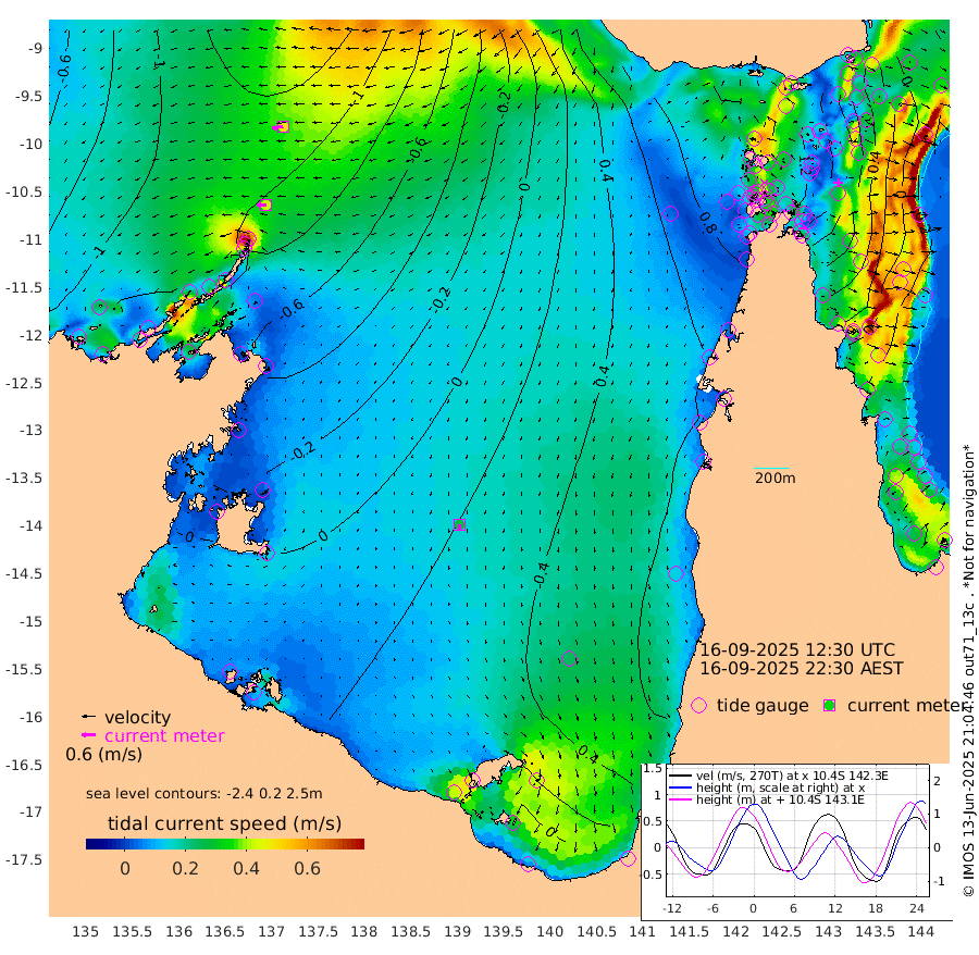 42cm/s -93T +3cm/s rms + 7cm/s -42T. ARA-GOC87 57m 26cm/s -176T +3cm/s rms + 2cm/s -2T. ARA-GOC87 60m 50cm/s -99T +2cm/s rms + 3cm/s 61T. ARA-GOC87 47m 91cm Daru 67cm Bobo Island 0cm Meer Island Barge 22cm Bramble Cay 61cm Unnamed Cay 62cm Pearce Cay 46cm Stephens Island 57cm Merrie England Shoals 93cm Mutacomal Reef 31cm Darnley Island Barge 5cm East Cay 57cm Yorke Island Barge 80cm Rennel Island 68cm Aureed Island 106cm Dungeness Reef 118cm Zagai Island 133cm Yam Island 153cm Dauan Island 130cm Saibai Island 161cm Phipi Reef 138cm Warrior Reef - West 141cm Mabuiag Island Barge 76cm Half Way Island 100cm Coconut Island 96cm Dugong Islet 122cm Poll Island 124cm Kirkcaldie Reef 157cm Suarji Island 112cm Sue Islet 146cm Hawkesbury Island 160cm Alert Patches 149cm Twin Island 151cm Badu Island 161cm St Pauls (Moa Island) 146cm Kubin (Moa Island) 155cm Ince Point 154cm Thursday Island 155cm Nardana Patches 156cm Turtle Head 136cm Round Island 143cm Goods Island 135cm Booby Island 139cm White Rocks Area 90cm Carpentaria 130cm Papou Point 122cm Bampfield Head 110cm Crab Island 137cm Red Wallis Island 151cm Packe Island 107cm Harrington Reef 138cm Herald Camp 49cm Sharp Point 131cm Red Island Point 135cm Possession Island 128cm Alpha Rock 130cm Frederick Point 94cm Wyborn Reef Light 103cm Tetley Island 22cm Triangle Reef 91cm Turtle Head Island 15cm Maclennan Cay -8cm Raine Island 58cm Mcsweeny Reef 43cm Collette Reef 13cm Shadwell Reef 40cm Hannibal Island 27cm Round Point 96cm Vrilya Point 23cm Cape Grenville 14cm Hicks Island 14cm Sir Charles Hardy Island 7cm Harvey Island 3cm Kay Reef -3cm Rocky Island -11cm Chapman Island -12cm Ham Reef -7cm Jubilee Reef 2cm Night Island -8cm Unnamed Reef No. 3 -4cm Morris Island -3cm 1st 3 Mile Opening -4cm Creech Reef -3cm Fife Island -24cm Eden Reef -8cm Stanley Island -13cm Normanby River -124cm Yabooma Island -139cm Hutchison River -129cm Elcho Island -117cm North West Crocodile Island -128cm Cape Wessel -136cm Stevens Island -130cm Guluwuru Island -131cm Hopeful Bay -124cm Auster Point -134cm Two Island Bay -158cm Cadell Strait -215cm Mallison Island -109cm Melville Bay (Gove Harbour) -119cm Truant Island -79cm Cape Arnhem -53cm Cape Grey -38cm Hawk Island -31cm Milner Bay (Groote Eylandt) -8cm Cape Beatrice 21cm West Island 16cm Centre Island 41cm Mornington Island 43cm West Wellesley Islands 46cm Bountiful Island 24cm Albert River Mouth 4cm Sweers Island 41cm Karumba 70cm Nassau River Offshore 82cm Christmas Creek 73cm Archer River 75cm Boyd Point 82cm Weipa (Humbug Point) 72cm Pennefather River 89cm Cullen Point