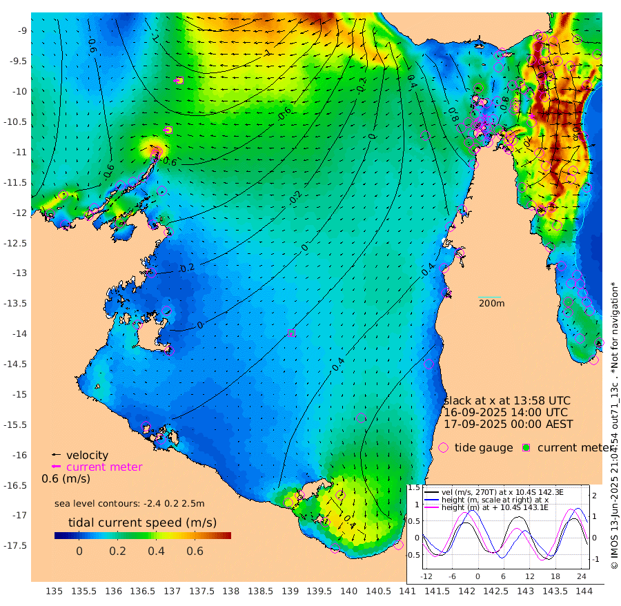 42cm/s -91T +3cm/s rms + 7cm/s -42T. ARA-GOC87 57m 20cm/s -150T +3cm/s rms + 2cm/s -2T. ARA-GOC87 60m 44cm/s -96T +2cm/s rms + 3cm/s 61T. ARA-GOC87 47m 7cm Daru -15cm Bobo Island -56cm Meer Island Barge -51cm Bramble Cay -28cm Unnamed Cay -23cm Pearce Cay -40cm Stephens Island -38cm Merrie England Shoals -1cm Mutacomal Reef -46cm Darnley Island Barge -58cm East Cay -23cm Yorke Island Barge -7cm Rennel Island -11cm Aureed Island 29cm Dungeness Reef 72cm Zagai Island 78cm Yam Island 150cm Dauan Island 125cm Saibai Island 149cm Phipi Reef 96cm Warrior Reef - West 119cm Mabuiag Island Barge -16cm Half Way Island 20cm Coconut Island 4cm Dugong Islet 51cm Poll Island 43cm Kirkcaldie Reef 98cm Suarji Island 44cm Sue Islet 112cm Hawkesbury Island 94cm Alert Patches 82cm Twin Island 131cm Badu Island 102cm St Pauls (Moa Island) 109cm Kubin (Moa Island) 103cm Ince Point 106cm Thursday Island 108cm Nardana Patches 117cm Turtle Head 105cm Round Island 113cm Goods Island 107cm Booby Island 105cm White Rocks Area 55cm Carpentaria 77cm Papou Point 90cm Bampfield Head 89cm Crab Island 105cm Red Wallis Island 111cm Packe Island 6cm Harrington Reef 109cm Herald Camp 34cm Sharp Point 94cm Red Island Point 85cm Possession Island 61cm Alpha Rock 51cm Frederick Point 4cm Wyborn Reef Light 17cm Tetley Island -28cm Triangle Reef -11cm Turtle Head Island -42cm Maclennan Cay -48cm Raine Island -26cm Mcsweeny Reef -33cm Collette Reef -42cm Shadwell Reef -44cm Hannibal Island -51cm Round Point 66cm Vrilya Point -51cm Cape Grenville -50cm Hicks Island -47cm Sir Charles Hardy Island -16cm Harvey Island -63cm Kay Reef -53cm Rocky Island -54cm Chapman Island -56cm Ham Reef -55cm Jubilee Reef -46cm Night Island -54cm Unnamed Reef No. 3 -57cm Morris Island -50cm 1st 3 Mile Opening -55cm Creech Reef -56cm Fife Island -77cm Eden Reef -65cm Stanley Island -77cm Normanby River -68cm Yabooma Island -71cm Hutchison River -65cm Elcho Island -54cm North West Crocodile Island -101cm Cape Wessel -89cm Stevens Island -106cm Guluwuru Island -83cm Hopeful Bay -91cm Auster Point -100cm Two Island Bay -107cm Cadell Strait -219cm Mallison Island -83cm Melville Bay (Gove Harbour) -95cm Truant Island -60cm Cape Arnhem -37cm Cape Grey -18cm Hawk Island -11cm Milner Bay (Groote Eylandt) 9cm Cape Beatrice 28cm West Island 25cm Centre Island 69cm Mornington Island 64cm West Wellesley Islands 92cm Bountiful Island 106cm Albert River Mouth 85cm Sweers Island 113cm Karumba 83cm Nassau River Offshore 80cm Christmas Creek 64cm Archer River 60cm Boyd Point 74cm Weipa (Humbug Point) 48cm Pennefather River 70cm Cullen Point