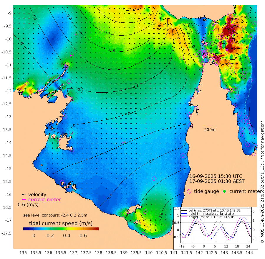 30cm/s -84T +3cm/s rms + 7cm/s -42T. ARA-GOC87 57m 18cm/s -117T +3cm/s rms + 2cm/s -2T. ARA-GOC87 60m 28cm/s -85T +2cm/s rms + 3cm/s 61T. ARA-GOC87 47m -69cm Daru -80cm Bobo Island -74cm Meer Island Barge -88cm Bramble Cay -92cm Unnamed Cay -86cm Pearce Cay -94cm Stephens Island -103cm Merrie England Shoals -82cm Mutacomal Reef -89cm Darnley Island Barge -81cm East Cay -80cm Yorke Island Barge -79cm Rennel Island -73cm Aureed Island -50cm Dungeness Reef -1cm Zagai Island -6cm Yam Island 88cm Dauan Island 70cm Saibai Island 82cm Phipi Reef 21cm Warrior Reef - West 45cm Mabuiag Island Barge -88cm Half Way Island -61cm Coconut Island -78cm Dugong Islet -36cm Poll Island -48cm Kirkcaldie Reef 3cm Suarji Island -36cm Sue Islet 27cm Hawkesbury Island -8cm Alert Patches -17cm Twin Island 52cm Badu Island 1cm St Pauls (Moa Island) 25cm Kubin (Moa Island) 9cm Ince Point 13cm Thursday Island 16cm Nardana Patches 31cm Turtle Head 27cm Round Island 36cm Goods Island 31cm Booby Island 24cm White Rocks Area -9cm Carpentaria -9cm Papou Point 13cm Bampfield Head 27cm Crab Island 28cm Red Wallis Island 26cm Packe Island -87cm Harrington Reef 33cm Herald Camp 6cm Sharp Point 17cm Red Island Point -1cm Possession Island -29cm Alpha Rock -45cm Frederick Point -79cm Wyborn Reef Light -70cm Tetley Island -55cm Triangle Reef -101cm Turtle Head Island -69cm Maclennan Cay -56cm Raine Island -85cm Mcsweeny Reef -82cm Collette Reef -65cm Shadwell Reef -95cm Hannibal Island -93cm Round Point 5cm Vrilya Point -89cm Cape Grenville -79cm Hicks Island -72cm Sir Charles Hardy Island -27cm Harvey Island -87cm Kay Reef -65cm Rocky Island -60cm Chapman Island -62cm Ham Reef -66cm Jubilee Reef -61cm Night Island -64cm Unnamed Reef No. 3 -71cm Morris Island -62cm 1st 3 Mile Opening -68cm Creech Reef -70cm Fife Island -81cm Eden Reef -80cm Stanley Island -93cm Normanby River -11cm Yabooma Island -1cm Hutchison River 1cm Elcho Island 6cm North West Crocodile Island -52cm Cape Wessel -31cm Stevens Island -50cm Guluwuru Island -22cm Hopeful Bay -42cm Auster Point -47cm Two Island Bay -35cm Cadell Strait -129cm Mallison Island -35cm Melville Bay (Gove Harbour) -46cm Truant Island -25cm Cape Arnhem -11cm Cape Grey 7cm Hawk Island 12cm Milner Bay (Groote Eylandt) 26cm Cape Beatrice 31cm West Island 31cm Centre Island 89cm Mornington Island 82cm West Wellesley Islands 124cm Bountiful Island 167cm Albert River Mouth 150cm Sweers Island 163cm Karumba 86cm Nassau River Offshore 67cm Christmas Creek 41cm Archer River 28cm Boyd Point 46cm Weipa (Humbug Point) 6cm Pennefather River 22cm Cullen Point