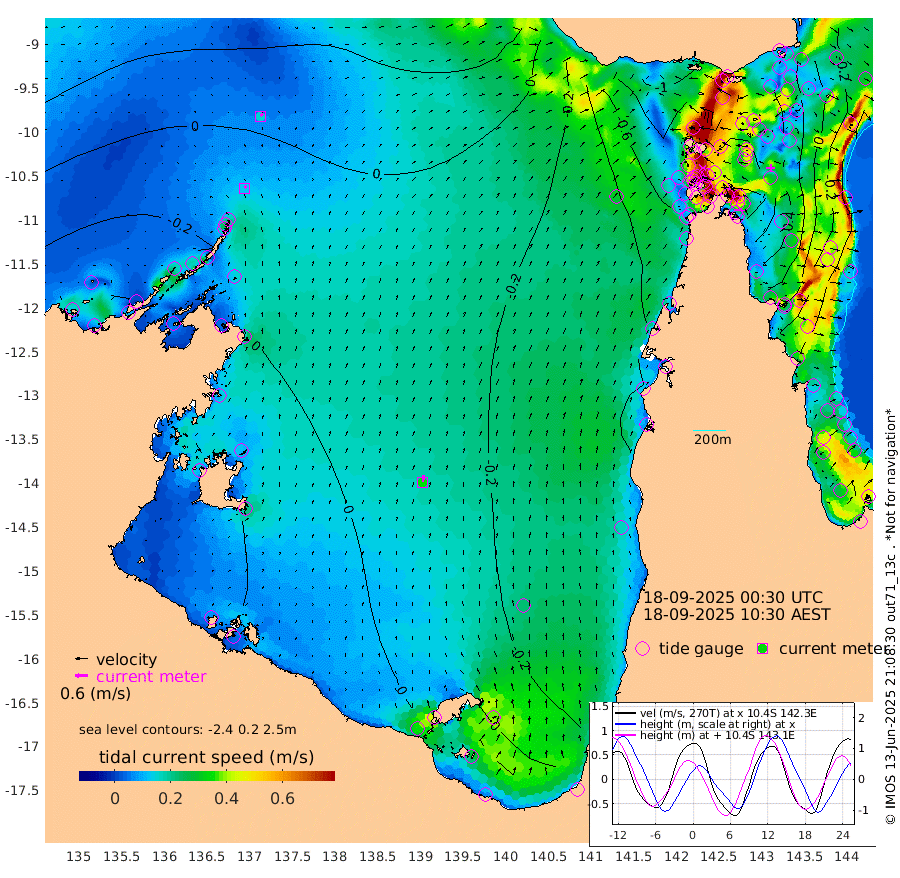 13cm/s 28T +3cm/s rms + 7cm/s -42T. ARA-GOC87 57m 35cm/s 9T +3cm/s rms + 2cm/s -2T. ARA-GOC87 60m 15cm/s 50T +2cm/s rms + 3cm/s 61T. ARA-GOC87 47m 50cm Daru 47cm Bobo Island -23cm Meer Island Barge -2cm Bramble Cay 31cm Unnamed Cay 28cm Pearce Cay 22cm Stephens Island 30cm Merrie England Shoals 52cm Mutacomal Reef 9cm Darnley Island Barge -20cm East Cay 29cm Yorke Island Barge 39cm Rennel Island 37cm Aureed Island 44cm Dungeness Reef 54cm Zagai Island 53cm Yam Island -3cm Dauan Island 3cm Saibai Island 10cm Phipi Reef 38cm Warrior Reef - West 13cm Mabuiag Island Barge 42cm Half Way Island 56cm Coconut Island 48cm Dugong Islet 58cm Poll Island 56cm Kirkcaldie Reef 65cm Suarji Island 52cm Sue Islet -61cm Hawkesbury Island 45cm Alert Patches 53cm Twin Island -48cm Badu Island 57cm St Pauls (Moa Island) -23cm Kubin (Moa Island) 25cm Ince Point 10cm Thursday Island 14cm Nardana Patches -25cm Turtle Head -21cm Round Island -66cm Goods Island -80cm Booby Island -61cm White Rocks Area -53cm Carpentaria 51cm Papou Point -53cm Bampfield Head -65cm Crab Island -71cm Red Wallis Island -44cm Packe Island 70cm Harrington Reef -57cm Herald Camp 25cm Sharp Point -18cm Red Island Point 31cm Possession Island 57cm Alpha Rock 59cm Frederick Point 61cm Wyborn Reef Light 64cm Tetley Island -17cm Triangle Reef 63cm Turtle Head Island -20cm Maclennan Cay -43cm Raine Island 27cm Mcsweeny Reef 14cm Collette Reef -21cm Shadwell Reef 15cm Hannibal Island -1cm Round Point -62cm Vrilya Point -5cm Cape Grenville -12cm Hicks Island -32cm Sir Charles Hardy Island 0cm Harvey Island -25cm Kay Reef -37cm Rocky Island -51cm Chapman Island -47cm Ham Reef -40cm Jubilee Reef -29cm Night Island -46cm Unnamed Reef No. 3 -37cm Morris Island -40cm 1st 3 Mile Opening -40cm Creech Reef -33cm Fife Island -56cm Eden Reef -39cm Stanley Island -34cm Normanby River -17cm Yabooma Island -23cm Hutchison River -18cm Elcho Island -14cm North West Crocodile Island 5cm Cape Wessel 1cm Stevens Island -9cm Guluwuru Island -12cm Hopeful Bay 5cm Auster Point 2cm Two Island Bay -24cm Cadell Strait -57cm Mallison Island -2cm Melville Bay (Gove Harbour) 1cm Truant Island 3cm Cape Arnhem 21cm Cape Grey 24cm Hawk Island 56cm Milner Bay (Groote Eylandt) 42cm Cape Beatrice 66cm West Island 69cm Centre Island 17cm Mornington Island 16cm West Wellesley Islands 3cm Bountiful Island 13cm Albert River Mouth 41cm Sweers Island 11cm Karumba -35cm Nassau River Offshore -64cm Christmas Creek -79cm Archer River -73cm Boyd Point -90cm Weipa (Humbug Point) -53cm Pennefather River -68cm Cullen Point