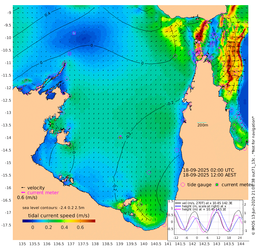 7cm/s 61T +3cm/s rms + 7cm/s -42T. ARA-GOC87 57m 34cm/s 13T +3cm/s rms + 2cm/s -2T. ARA-GOC87 60m 11cm/s 88T +2cm/s rms + 3cm/s 61T. ARA-GOC87 47m -22cm Daru -31cm Bobo Island -83cm Meer Island Barge -79cm Bramble Cay -51cm Unnamed Cay -54cm Pearce Cay -63cm Stephens Island -60cm Merrie England Shoals -28cm Mutacomal Reef -68cm Darnley Island Barge -90cm East Cay -43cm Yorke Island Barge -39cm Rennel Island -37cm Aureed Island -16cm Dungeness Reef 35cm Zagai Island 33cm Yam Island 35cm Dauan Island 40cm Saibai Island 28cm Phipi Reef 22cm Warrior Reef - West 52cm Mabuiag Island Barge -36cm Half Way Island -6cm Coconut Island -25cm Dugong Islet 14cm Poll Island 6cm Kirkcaldie Reef 43cm Suarji Island 16cm Sue Islet 1cm Hawkesbury Island 32cm Alert Patches 35cm Twin Island 16cm Badu Island 52cm St Pauls (Moa Island) 18cm Kubin (Moa Island) 35cm Ince Point 32cm Thursday Island 34cm Nardana Patches 8cm Turtle Head 26cm Round Island -9cm Goods Island -7cm Booby Island -2cm White Rocks Area 13cm Carpentaria 46cm Papou Point 17cm Bampfield Head -2cm Crab Island -6cm Red Wallis Island -2cm Packe Island -11cm Harrington Reef 4cm Herald Camp 24cm Sharp Point 10cm Red Island Point 38cm Possession Island 33cm Alpha Rock 16cm Frederick Point -9cm Wyborn Reef Light 3cm Tetley Island -64cm Triangle Reef -12cm Turtle Head Island -77cm Maclennan Cay -88cm Raine Island -51cm Mcsweeny Reef -60cm Collette Reef -77cm Shadwell Reef -70cm Hannibal Island -82cm Round Point -3cm Vrilya Point -80cm Cape Grenville -80cm Hicks Island -93cm Sir Charles Hardy Island -24cm Harvey Island -94cm Kay Reef -92cm Rocky Island -100cm Chapman Island -94cm Ham Reef -91cm Jubilee Reef -81cm Night Island -97cm Unnamed Reef No. 3 -96cm Morris Island -89cm 1st 3 Mile Opening -95cm Creech Reef -97cm Fife Island -122cm Eden Reef -102cm Stanley Island -108cm Normanby River 4cm Yabooma Island -4cm Hutchison River 3cm Elcho Island 6cm North West Crocodile Island 8cm Cape Wessel 10cm Stevens Island -18cm Guluwuru Island -2cm Hopeful Bay 11cm Auster Point 11cm Two Island Bay -18cm Cadell Strait -96cm Mallison Island -8cm Melville Bay (Gove Harbour) -3cm Truant Island -3cm Cape Arnhem 9cm Cape Grey 8cm Hawk Island 37cm Milner Bay (Groote Eylandt) 18cm Cape Beatrice 34cm West Island 39cm Centre Island -28cm Mornington Island -34cm West Wellesley Islands -42cm Bountiful Island -33cm Albert River Mouth -13cm Sweers Island -35cm Karumba -67cm Nassau River Offshore -77cm Christmas Creek -65cm Archer River -45cm Boyd Point -58cm Weipa (Humbug Point) -22cm Pennefather River -13cm Cullen Point