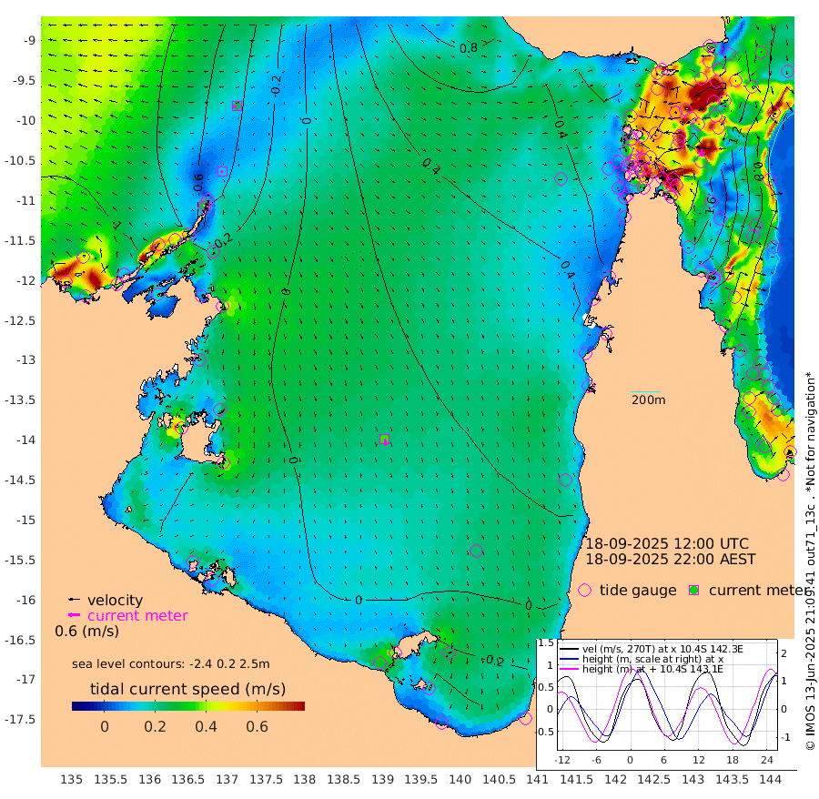 13cm/s -115T +3cm/s rms + 7cm/s -42T. ARA-GOC87 57m 36cm/s 169T +3cm/s rms + 2cm/s -2T. ARA-GOC87 60m 23cm/s -104T +2cm/s rms + 3cm/s 61T. ARA-GOC87 47m 180cm Daru 170cm Bobo Island 85cm Meer Island Barge 121cm Bramble Cay 160cm Unnamed Cay 170cm Pearce Cay 153cm Stephens Island 161cm Merrie England Shoals 184cm Mutacomal Reef 134cm Darnley Island Barge 98cm East Cay 154cm Yorke Island Barge 173cm Rennel Island 163cm Aureed Island 178cm Dungeness Reef 152cm Zagai Island 166cm Yam Island 123cm Dauan Island 109cm Saibai Island 135cm Phipi Reef 166cm Warrior Reef - West 113cm Mabuiag Island Barge 174cm Half Way Island 177cm Coconut Island 187cm Dugong Islet 178cm Poll Island 186cm Kirkcaldie Reef 174cm Suarji Island 166cm Sue Islet 113cm Hawkesbury Island 175cm Alert Patches 177cm Twin Island 103cm Badu Island 176cm St Pauls (Moa Island) 126cm Kubin (Moa Island) 153cm Ince Point 142cm Thursday Island 144cm Nardana Patches 128cm Turtle Head 101cm Round Island 100cm Goods Island 79cm Booby Island 89cm White Rocks Area 54cm Carpentaria 151cm Papou Point 73cm Bampfield Head 62cm Crab Island 89cm Red Wallis Island 123cm Packe Island 204cm Harrington Reef 95cm Herald Camp 49cm Sharp Point 115cm Red Island Point 136cm Possession Island 162cm Alpha Rock 187cm Frederick Point 183cm Wyborn Reef Light 184cm Tetley Island 91cm Triangle Reef 195cm Turtle Head Island 95cm Maclennan Cay 56cm Raine Island 154cm Mcsweeny Reef 134cm Collette Reef 86cm Shadwell Reef 143cm Hannibal Island 129cm Round Point 57cm Vrilya Point 114cm Cape Grenville 103cm Hicks Island 101cm Sir Charles Hardy Island 36cm Harvey Island 91cm Kay Reef 71cm Rocky Island 59cm Chapman Island 58cm Ham Reef 68cm Jubilee Reef 71cm Night Island 63cm Unnamed Reef No. 3 75cm Morris Island 64cm 1st 3 Mile Opening 72cm Creech Reef 80cm Fife Island 68cm Eden Reef 75cm Stanley Island 85cm Normanby River -91cm Yabooma Island -93cm Hutchison River -100cm Elcho Island -92cm North West Crocodile Island -56cm Cape Wessel -84cm Stevens Island -36cm Guluwuru Island -89cm Hopeful Bay -66cm Auster Point -63cm Two Island Bay -66cm Cadell Strait -36cm Mallison Island -38cm Melville Bay (Gove Harbour) -38cm Truant Island -27cm Cape Arnhem -29cm Cape Grey -30cm Hawk Island -54cm Milner Bay (Groote Eylandt) -37cm Cape Beatrice -31cm West Island -41cm Centre Island -22cm Mornington Island -19cm West Wellesley Islands -41cm Bountiful Island -94cm Albert River Mouth -111cm Sweers Island -72cm Karumba 19cm Nassau River Offshore 46cm Christmas Creek 41cm Archer River 50cm Boyd Point 44cm Weipa (Humbug Point) 46cm Pennefather River 49cm Cullen Point