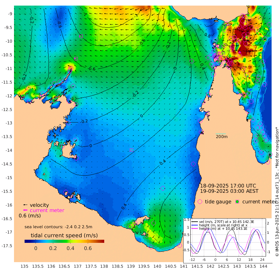 30cm/s -85T +3cm/s rms + 7cm/s -42T. ARA-GOC87 57m 15cm/s -121T +3cm/s rms + 2cm/s -2T. ARA-GOC87 60m 30cm/s -90T +2cm/s rms + 3cm/s 61T. ARA-GOC87 47m -117cm Daru -129cm Bobo Island -91cm Meer Island Barge -117cm Bramble Cay -131cm Unnamed Cay -132cm Pearce Cay -131cm Stephens Island -138cm Merrie England Shoals -129cm Mutacomal Reef -118cm Darnley Island Barge -103cm East Cay -117cm Yorke Island Barge -123cm Rennel Island -119cm Aureed Island -98cm Dungeness Reef -50cm Zagai Island -53cm Yam Island 45cm Dauan Island 34cm Saibai Island 35cm Phipi Reef -33cm Warrior Reef - West 16cm Mabuiag Island Barge -127cm Half Way Island -110cm Coconut Island -122cm Dugong Islet -86cm Poll Island -90cm Kirkcaldie Reef -55cm Suarji Island -76cm Sue Islet 23cm Hawkesbury Island -49cm Alert Patches -61cm Twin Island 39cm Badu Island -45cm St Pauls (Moa Island) 3cm Kubin (Moa Island) -25cm Ince Point -13cm Thursday Island -13cm Nardana Patches 10cm Turtle Head 9cm Round Island 30cm Goods Island 42cm Booby Island 24cm White Rocks Area 19cm Carpentaria -47cm Papou Point 10cm Bampfield Head 46cm Crab Island 34cm Red Wallis Island 11cm Packe Island -138cm Harrington Reef 28cm Herald Camp -5cm Sharp Point 7cm Red Island Point -34cm Possession Island -70cm Alpha Rock -92cm Frederick Point -131cm Wyborn Reef Light -122cm Tetley Island -77cm Triangle Reef -147cm Turtle Head Island -88cm Maclennan Cay -65cm Raine Island -123cm Mcsweeny Reef -113cm Collette Reef -81cm Shadwell Reef -127cm Hannibal Island -125cm Round Point 39cm Vrilya Point -112cm Cape Grenville -102cm Hicks Island -95cm Sir Charles Hardy Island -34cm Harvey Island -102cm Kay Reef -79cm Rocky Island -71cm Chapman Island -70cm Ham Reef -76cm Jubilee Reef -74cm Night Island -73cm Unnamed Reef No. 3 -85cm Morris Island -71cm 1st 3 Mile Opening -78cm Creech Reef -88cm Fife Island -91cm Eden Reef -89cm Stanley Island -108cm Normanby River -69cm Yabooma Island -76cm Hutchison River -57cm Elcho Island -50cm North West Crocodile Island -94cm Cape Wessel -85cm Stevens Island -89cm Guluwuru Island -69cm Hopeful Bay -86cm Auster Point -89cm Two Island Bay -90cm Cadell Strait -132cm Mallison Island -77cm Melville Bay (Gove Harbour) -90cm Truant Island -54cm Cape Arnhem -32cm Cape Grey -14cm Hawk Island 3cm Milner Bay (Groote Eylandt) 19cm Cape Beatrice 35cm West Island 39cm Centre Island 82cm Mornington Island 76cm West Wellesley Islands 102cm Bountiful Island 145cm Albert River Mouth 126cm Sweers Island 143cm Karumba 83cm Nassau River Offshore 70cm Christmas Creek 56cm Archer River 41cm Boyd Point 56cm Weipa (Humbug Point) 35cm Pennefather River 44cm Cullen Point