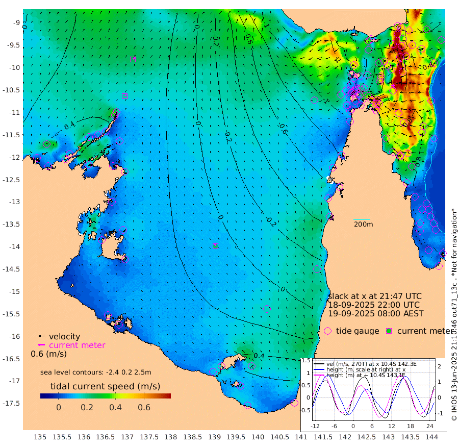 19cm/s 45T +3cm/s rms + 7cm/s -42T. ARA-GOC87 57m 22cm/s -20T +3cm/s rms + 2cm/s -2T. ARA-GOC87 60m 26cm/s 49T +2cm/s rms + 3cm/s 61T. ARA-GOC87 47m 46cm Daru 63cm Bobo Island 68cm Meer Island Barge 82cm Bramble Cay 71cm Unnamed Cay 70cm Pearce Cay 79cm Stephens Island 84cm Merrie England Shoals 54cm Mutacomal Reef 72cm Darnley Island Barge 80cm East Cay 56cm Yorke Island Barge 58cm Rennel Island 57cm Aureed Island 24cm Dungeness Reef -34cm Zagai Island -41cm Yam Island -120cm Dauan Island -114cm Saibai Island -88cm Phipi Reef -45cm Warrior Reef - West -118cm Mabuiag Island Barge 56cm Half Way Island 31cm Coconut Island 40cm Dugong Islet -5cm Poll Island 1cm Kirkcaldie Reef -40cm Suarji Island -15cm Sue Islet -161cm Hawkesbury Island -58cm Alert Patches -50cm Twin Island -154cm Badu Island -71cm St Pauls (Moa Island) -127cm Kubin (Moa Island) -87cm Ince Point -104cm Thursday Island -101cm Nardana Patches -116cm Turtle Head -127cm Round Island -142cm Goods Island -164cm Booby Island -142cm White Rocks Area -148cm Carpentaria -60cm Papou Point -154cm Bampfield Head -137cm Crab Island -154cm Red Wallis Island -127cm Packe Island 48cm Harrington Reef -155cm Herald Camp -22cm Sharp Point -101cm Red Island Point -74cm Possession Island -35cm Alpha Rock -11cm Frederick Point 40cm Wyborn Reef Light 25cm Tetley Island 43cm Triangle Reef 42cm Turtle Head Island 58cm Maclennan Cay 57cm Raine Island 66cm Mcsweeny Reef 69cm Collette Reef 59cm Shadwell Reef 83cm Hannibal Island 86cm Round Point -133cm Vrilya Point 78cm Cape Grenville 73cm Hicks Island 61cm Sir Charles Hardy Island 24cm Harvey Island 80cm Kay Reef 66cm Rocky Island 64cm Chapman Island 58cm Ham Reef 61cm Jubilee Reef 61cm Night Island 62cm Unnamed Reef No. 3 72cm Morris Island 57cm 1st 3 Mile Opening 65cm Creech Reef 79cm Fife Island 87cm Eden Reef 76cm Stanley Island 93cm Normanby River 45cm Yabooma Island 59cm Hutchison River 51cm Elcho Island 45cm North West Crocodile Island 49cm Cape Wessel 61cm Stevens Island 58cm Guluwuru Island 58cm Hopeful Bay 51cm Auster Point 43cm Two Island Bay 63cm Cadell Strait 104cm Mallison Island 54cm Melville Bay (Gove Harbour) 53cm Truant Island 41cm Cape Arnhem 46cm Cape Grey 50cm Hawk Island 59cm Milner Bay (Groote Eylandt) 58cm Cape Beatrice 57cm West Island 59cm Centre Island 83cm Mornington Island 87cm West Wellesley Islands 92cm Bountiful Island 125cm Albert River Mouth 145cm Sweers Island 113cm Karumba 41cm Nassau River Offshore -3cm Christmas Creek -46cm Archer River -75cm Boyd Point -77cm Weipa (Humbug Point) -79cm Pennefather River -123cm Cullen Point
