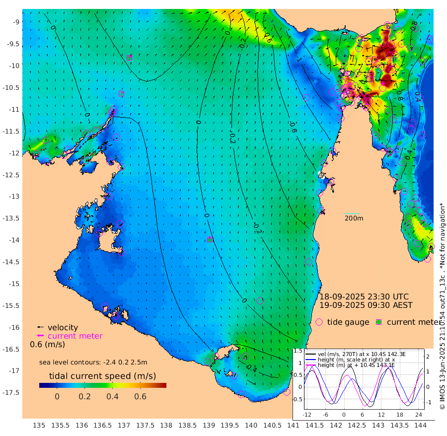 20cm/s 45T +3cm/s rms + 7cm/s -42T. ARA-GOC87 57m 27cm/s -2T +3cm/s rms + 2cm/s -2T. ARA-GOC87 60m 25cm/s 50T +2cm/s rms + 3cm/s 61T. ARA-GOC87 47m 93cm Daru 102cm Bobo Island 48cm Meer Island Barge 75cm Bramble Cay 92cm Unnamed Cay 94cm Pearce Cay 92cm Stephens Island 99cm Merrie England Shoals 97cm Mutacomal Reef 78cm Darnley Island Barge 59cm East Cay 83cm Yorke Island Barge 91cm Rennel Island 91cm Aureed Island 74cm Dungeness Reef 41cm Zagai Island 35cm Yam Island -53cm Dauan Island -48cm Saibai Island -23cm Phipi Reef 27cm Warrior Reef - West -50cm Mabuiag Island Barge 91cm Half Way Island 86cm Coconut Island 87cm Dugong Islet 63cm Poll Island 65cm Kirkcaldie Reef 44cm Suarji Island 50cm Sue Islet -133cm Hawkesbury Island 17cm Alert Patches 28cm Twin Island -117cm Badu Island 18cm St Pauls (Moa Island) -80cm Kubin (Moa Island) -18cm Ince Point -41cm Thursday Island -37cm Nardana Patches -73cm Turtle Head -85cm Round Island -123cm Goods Island -151cm Booby Island -124cm White Rocks Area -127cm Carpentaria 16cm Papou Point -128cm Bampfield Head -126cm Crab Island -137cm Red Wallis Island -95cm Packe Island 107cm Harrington Reef -129cm Herald Camp 9cm Sharp Point -64cm Red Island Point -9cm Possession Island 37cm Alpha Rock 60cm Frederick Point 94cm Wyborn Reef Light 86cm Tetley Island 36cm Triangle Reef 97cm Turtle Head Island 44cm Maclennan Cay 24cm Raine Island 86cm Mcsweeny Reef 77cm Collette Reef 42cm Shadwell Reef 89cm Hannibal Island 78cm Round Point -124cm Vrilya Point 67cm Cape Grenville 60cm Hicks Island 41cm Sir Charles Hardy Island 22cm Harvey Island 53cm Kay Reef 35cm Rocky Island 24cm Chapman Island 21cm Ham Reef 30cm Jubilee Reef 37cm Night Island 26cm Unnamed Reef No. 3 40cm Morris Island 27cm 1st 3 Mile Opening 33cm Creech Reef 48cm Fife Island 38cm Eden Reef 40cm Stanley Island 56cm Normanby River 4cm Yabooma Island 14cm Hutchison River 8cm Elcho Island 6cm North West Crocodile Island 33cm Cape Wessel 30cm Stevens Island 40cm Guluwuru Island 19cm Hopeful Bay 30cm Auster Point 23cm Two Island Bay 25cm Cadell Strait 50cm Mallison Island 39cm Melville Bay (Gove Harbour) 41cm Truant Island 34cm Cape Arnhem 44cm Cape Grey 46cm Hawk Island 64cm Milner Bay (Groote Eylandt) 57cm Cape Beatrice 69cm West Island 70cm Centre Island 63cm Mornington Island 64cm West Wellesley Islands 58cm Bountiful Island 77cm Albert River Mouth 104cm Sweers Island 70cm Karumba 10cm Nassau River Offshore -32cm Christmas Creek -73cm Archer River -86cm Boyd Point -100cm Weipa (Humbug Point) -82cm Pennefather River -119cm Cullen Point