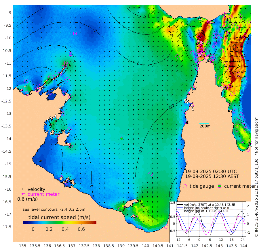 7cm/s 36T +3cm/s rms + 7cm/s -42T. ARA-GOC87 57m 31cm/s 14T +3cm/s rms + 2cm/s -2T. ARA-GOC87 60m 9cm/s 70T +2cm/s rms + 3cm/s 61T. ARA-GOC87 47m -14cm Daru -23cm Bobo Island -79cm Meer Island Barge -77cm Bramble Cay -46cm Unnamed Cay -49cm Pearce Cay -57cm Stephens Island -57cm Merrie England Shoals -23cm Mutacomal Reef -59cm Darnley Island Barge -88cm East Cay -34cm Yorke Island Barge -33cm Rennel Island -26cm Aureed Island -6cm Dungeness Reef 48cm Zagai Island 42cm Yam Island 47cm Dauan Island 52cm Saibai Island 39cm Phipi Reef 36cm Warrior Reef - West 52cm Mabuiag Island Barge -29cm Half Way Island 2cm Coconut Island -17cm Dugong Islet 22cm Poll Island 13cm Kirkcaldie Reef 54cm Suarji Island 25cm Sue Islet -22cm Hawkesbury Island 36cm Alert Patches 39cm Twin Island 1cm Badu Island 59cm St Pauls (Moa Island) 7cm Kubin (Moa Island) 35cm Ince Point 29cm Thursday Island 32cm Nardana Patches 1cm Turtle Head 12cm Round Island -26cm Goods Island -27cm Booby Island -23cm White Rocks Area 3cm Carpentaria 49cm Papou Point -3cm Bampfield Head -20cm Crab Island -26cm Red Wallis Island -16cm Packe Island -3cm Harrington Reef -12cm Herald Camp 28cm Sharp Point -1cm Red Island Point 36cm Possession Island 37cm Alpha Rock 22cm Frederick Point -5cm Wyborn Reef Light 7cm Tetley Island -61cm Triangle Reef -9cm Turtle Head Island -73cm Maclennan Cay -88cm Raine Island -45cm Mcsweeny Reef -56cm Collette Reef -74cm Shadwell Reef -64cm Hannibal Island -82cm Round Point -20cm Vrilya Point -78cm Cape Grenville -78cm Hicks Island -88cm Sir Charles Hardy Island -22cm Harvey Island -94cm Kay Reef -91cm Rocky Island -101cm Chapman Island -94cm Ham Reef -90cm Jubilee Reef -79cm Night Island -97cm Unnamed Reef No. 3 -95cm Morris Island -86cm 1st 3 Mile Opening -92cm Creech Reef -96cm Fife Island -120cm Eden Reef -101cm Stanley Island -109cm Normanby River -42cm Yabooma Island -50cm Hutchison River -39cm Elcho Island -36cm North West Crocodile Island -13cm Cape Wessel -27cm Stevens Island -24cm Guluwuru Island -37cm Hopeful Bay -16cm Auster Point -16cm Two Island Bay -51cm Cadell Strait -85cm Mallison Island -17cm Melville Bay (Gove Harbour) -13cm Truant Island -4cm Cape Arnhem 10cm Cape Grey 10cm Hawk Island 43cm Milner Bay (Groote Eylandt) 26cm Cape Beatrice 49cm West Island 54cm Centre Island -9cm Mornington Island -14cm West Wellesley Islands -22cm Bountiful Island -15cm Albert River Mouth 5cm Sweers Island -21cm Karumba -54cm Nassau River Offshore -68cm Christmas Creek -68cm Archer River -48cm Boyd Point -63cm Weipa (Humbug Point) -31cm Pennefather River -25cm Cullen Point