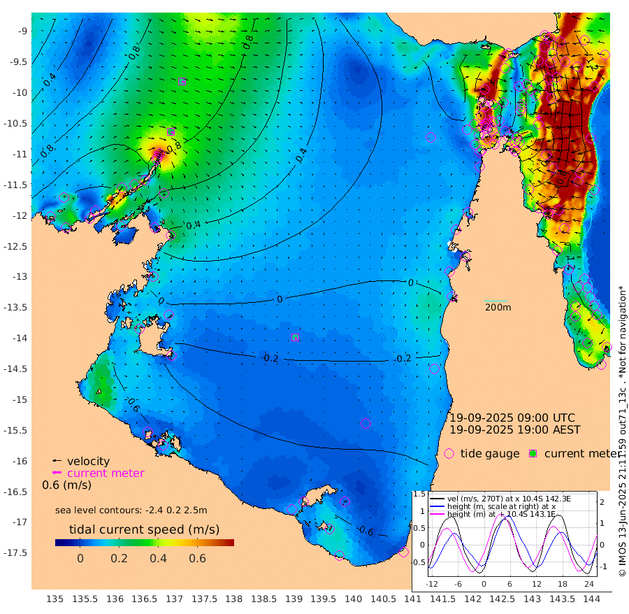 25cm/s 121T +3cm/s rms + 7cm/s -42T. ARA-GOC87 57m 20cm/s 164T +3cm/s rms + 2cm/s -2T. ARA-GOC87 60m 21cm/s 119T +2cm/s rms + 3cm/s 61T. ARA-GOC87 47m 31cm Daru 46cm Bobo Island 98cm Meer Island Barge 100cm Bramble Cay 73cm Unnamed Cay 71cm Pearce Cay 81cm Stephens Island 84cm Merrie England Shoals 47cm Mutacomal Reef 82cm Darnley Island Barge 108cm East Cay 55cm Yorke Island Barge 53cm Rennel Island 45cm Aureed Island 17cm Dungeness Reef -44cm Zagai Island -36cm Yam Island -76cm Dauan Island -69cm Saibai Island -82cm Phipi Reef -47cm Warrior Reef - West -50cm Mabuiag Island Barge 52cm Half Way Island 18cm Coconut Island 38cm Dugong Islet -8cm Poll Island -3cm Kirkcaldie Reef -48cm Suarji Island -11cm Sue Islet 42cm Hawkesbury Island -28cm Alert Patches -25cm Twin Island 4cm Badu Island -48cm St Pauls (Moa Island) 11cm Kubin (Moa Island) -25cm Ince Point -17cm Thursday Island -22cm Nardana Patches 2cm Turtle Head 11cm Round Island 37cm Goods Island 44cm Booby Island 45cm White Rocks Area 36cm Carpentaria -32cm Papou Point 52cm Bampfield Head 24cm Crab Island 41cm Red Wallis Island 27cm Packe Island 30cm Harrington Reef 34cm Herald Camp -32cm Sharp Point 2cm Red Island Point -17cm Possession Island -15cm Alpha Rock -2cm Frederick Point 38cm Wyborn Reef Light 26cm Tetley Island 77cm Triangle Reef 50cm Turtle Head Island 91cm Maclennan Cay 99cm Raine Island 69cm Mcsweeny Reef 75cm Collette Reef 87cm Shadwell Reef 88cm Hannibal Island 108cm Round Point 27cm Vrilya Point 101cm Cape Grenville 98cm Hicks Island 110cm Sir Charles Hardy Island 29cm Harvey Island 117cm Kay Reef 107cm Rocky Island 115cm Chapman Island 109cm Ham Reef 105cm Jubilee Reef 91cm Night Island 111cm Unnamed Reef No. 3 112cm Morris Island 101cm 1st 3 Mile Opening 106cm Creech Reef 109cm Fife Island 138cm Eden Reef 118cm Stanley Island 132cm Normanby River 139cm Yabooma Island 149cm Hutchison River 124cm Elcho Island 113cm North West Crocodile Island 110cm Cape Wessel 125cm Stevens Island 99cm Guluwuru Island 123cm Hopeful Bay 110cm Auster Point 115cm Two Island Bay 141cm Cadell Strait 172cm Mallison Island 85cm Melville Bay (Gove Harbour) 95cm Truant Island 50cm Cape Arnhem 10cm Cape Grey -8cm Hawk Island -53cm Milner Bay (Groote Eylandt) -58cm Cape Beatrice -102cm West Island -108cm Centre Island -108cm Mornington Island -100cm West Wellesley Islands -106cm Bountiful Island -151cm Albert River Mouth -157cm Sweers Island -149cm Karumba -57cm Nassau River Offshore -18cm Christmas Creek 20cm Archer River 26cm Boyd Point 33cm Weipa (Humbug Point) 16cm Pennefather River 28cm Cullen Point