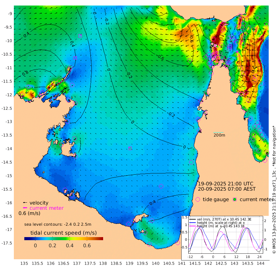 8cm/s 51T +3cm/s rms + 7cm/s -42T. ARA-GOC87 57m 18cm/s -48T +3cm/s rms + 2cm/s -2T. ARA-GOC87 60m 15cm/s 56T +2cm/s rms + 3cm/s 61T. ARA-GOC87 47m -35cm Daru -20cm Bobo Island 39cm Meer Island Barge 36cm Bramble Cay 0cm Unnamed Cay -2cm Pearce Cay 11cm Stephens Island 14cm Merrie England Shoals -27cm Mutacomal Reef 13cm Darnley Island Barge 47cm East Cay -15cm Yorke Island Barge -17cm Rennel Island -20cm Aureed Island -49cm Dungeness Reef -100cm Zagai Island -105cm Yam Island -132cm Dauan Island -129cm Saibai Island -106cm Phipi Reef -104cm Warrior Reef - West -127cm Mabuiag Island Barge -22cm Half Way Island -49cm Coconut Island -42cm Dugong Islet -79cm Poll Island -73cm Kirkcaldie Reef -110cm Suarji Island -84cm Sue Islet -109cm Hawkesbury Island -108cm Alert Patches -109cm Twin Island -108cm Badu Island -130cm St Pauls (Moa Island) -113cm Kubin (Moa Island) -116cm Ince Point -116cm Thursday Island -117cm Nardana Patches -100cm Turtle Head -105cm Round Island -89cm Goods Island -93cm Booby Island -85cm White Rocks Area -102cm Carpentaria -110cm Papou Point -103cm Bampfield Head -72cm Crab Island -93cm Red Wallis Island -98cm Packe Island -49cm Harrington Reef -109cm Herald Camp -43cm Sharp Point -85cm Red Island Point -103cm Possession Island -98cm Alpha Rock -84cm Frederick Point -45cm Wyborn Reef Light -60cm Tetley Island 16cm Triangle Reef -47cm Turtle Head Island 28cm Maclennan Cay 53cm Raine Island -1cm Mcsweeny Reef 14cm Collette Reef 35cm Shadwell Reef 22cm Hannibal Island 38cm Round Point -72cm Vrilya Point 36cm Cape Grenville 37cm Hicks Island 32cm Sir Charles Hardy Island 9cm Harvey Island 54cm Kay Reef 52cm Rocky Island 61cm Chapman Island 53cm Ham Reef 50cm Jubilee Reef 44cm Night Island 56cm Unnamed Reef No. 3 57cm Morris Island 48cm 1st 3 Mile Opening 51cm Creech Reef 59cm Fife Island 77cm Eden Reef 61cm Stanley Island 69cm Normanby River 80cm Yabooma Island 94cm Hutchison River 87cm Elcho Island 80cm North West Crocodile Island 40cm Cape Wessel 76cm Stevens Island 40cm Guluwuru Island 81cm Hopeful Bay 52cm Auster Point 41cm Two Island Bay 76cm Cadell Strait 74cm Mallison Island 40cm Melville Bay (Gove Harbour) 35cm Truant Island 24cm Cape Arnhem 28cm Cape Grey 33cm Hawk Island 35cm Milner Bay (Groote Eylandt) 39cm Cape Beatrice 27cm West Island 31cm Centre Island 78cm Mornington Island 81cm West Wellesley Islands 100cm Bountiful Island 145cm Albert River Mouth 151cm Sweers Island 134cm Karumba 62cm Nassau River Offshore 31cm Christmas Creek 8cm Archer River -29cm Boyd Point -16cm Weipa (Humbug Point) -32cm Pennefather River -66cm Cullen Point