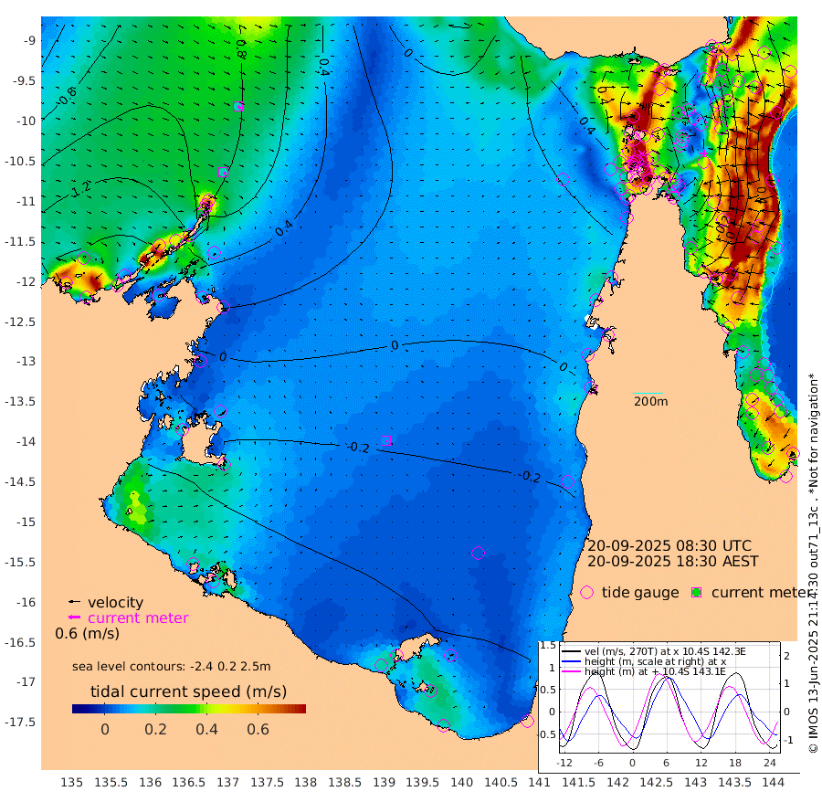 17cm/s 132T +3cm/s rms + 7cm/s -42T. ARA-GOC87 57m 7cm/s 157T +3cm/s rms + 2cm/s -2T. ARA-GOC87 60m 17cm/s 130T +2cm/s rms + 3cm/s 61T. ARA-GOC87 47m -50cm Daru -40cm Bobo Island 41cm Meer Island Barge 29cm Bramble Cay -5cm Unnamed Cay -18cm Pearce Cay 0cm Stephens Island 4cm Merrie England Shoals -33cm Mutacomal Reef 6cm Darnley Island Barge 44cm East Cay -22cm Yorke Island Barge -27cm Rennel Island -37cm Aureed Island -57cm Dungeness Reef -96cm Zagai Island -88cm Yam Island -96cm Dauan Island -88cm Saibai Island -110cm Phipi Reef -102cm Warrior Reef - West -61cm Mabuiag Island Barge -28cm Half Way Island -58cm Coconut Island -42cm Dugong Islet -73cm Poll Island -72cm Kirkcaldie Reef -98cm Suarji Island -71cm Sue Islet 43cm Hawkesbury Island -73cm Alert Patches -76cm Twin Island 6cm Badu Island -93cm St Pauls (Moa Island) -1cm Kubin (Moa Island) -57cm Ince Point -39cm Thursday Island -45cm Nardana Patches -12cm Turtle Head 12cm Round Island 40cm Goods Island 61cm Booby Island 56cm White Rocks Area 53cm Carpentaria -73cm Papou Point 71cm Bampfield Head 38cm Crab Island 51cm Red Wallis Island 18cm Packe Island -58cm Harrington Reef 44cm Herald Camp -44cm Sharp Point -14cm Red Island Point -45cm Possession Island -62cm Alpha Rock -68cm Frederick Point -39cm Wyborn Reef Light -48cm Tetley Island 25cm Triangle Reef -36cm Turtle Head Island 35cm Maclennan Cay 57cm Raine Island -8cm Mcsweeny Reef 5cm Collette Reef 35cm Shadwell Reef 10cm Hannibal Island 34cm Round Point 40cm Vrilya Point 36cm Cape Grenville 35cm Hicks Island 50cm Sir Charles Hardy Island 8cm Harvey Island 59cm Kay Reef 57cm Rocky Island 70cm Chapman Island 65cm Ham Reef 57cm Jubilee Reef 44cm Night Island 64cm Unnamed Reef No. 3 60cm Morris Island 57cm 1st 3 Mile Opening 56cm Creech Reef 52cm Fife Island 81cm Eden Reef 66cm Stanley Island 71cm Normanby River 160cm Yabooma Island 161cm Hutchison River 144cm Elcho Island 134cm North West Crocodile Island 102cm Cape Wessel 133cm Stevens Island 72cm Guluwuru Island 134cm Hopeful Bay 110cm Auster Point 113cm Two Island Bay 124cm Cadell Strait 108cm Mallison Island 68cm Melville Bay (Gove Harbour) 74cm Truant Island 35cm Cape Arnhem 5cm Cape Grey -8cm Hawk Island -36cm Milner Bay (Groote Eylandt) -45cm Cape Beatrice -80cm West Island -84cm Centre Island -99cm Mornington Island -91cm West Wellesley Islands -85cm Bountiful Island -113cm Albert River Mouth -116cm Sweers Island -118cm Karumba -61cm Nassau River Offshore -29cm Christmas Creek 17cm Archer River 25cm Boyd Point 38cm Weipa (Humbug Point) 18cm Pennefather River 41cm Cullen Point