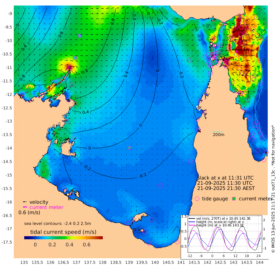 16cm/s 112T +3cm/s rms + 7cm/s -42T. ARA-GOC87 57m 20cm/s 177T +3cm/s rms + 2cm/s -2T. ARA-GOC87 60m 12cm/s 98T +2cm/s rms + 3cm/s 61T. ARA-GOC87 47m 122cm Daru 131cm Bobo Island 103cm Meer Island Barge 133cm Bramble Cay 137cm Unnamed Cay 142cm Pearce Cay 135cm Stephens Island 143cm Merrie England Shoals 136cm Mutacomal Reef 122cm Darnley Island Barge 120cm East Cay 118cm Yorke Island Barge 130cm Rennel Island 121cm Aureed Island 105cm Dungeness Reef 58cm Zagai Island 65cm Yam Island 13cm Dauan Island 9cm Saibai Island 16cm Phipi Reef 63cm Warrior Reef - West 12cm Mabuiag Island Barge 123cm Half Way Island 110cm Coconut Island 121cm Dugong Islet 90cm Poll Island 88cm Kirkcaldie Reef 60cm Suarji Island 75cm Sue Islet 38cm Hawkesbury Island 58cm Alert Patches 67cm Twin Island 18cm Badu Island 51cm St Pauls (Moa Island) 42cm Kubin (Moa Island) 43cm Ince Point 34cm Thursday Island 35cm Nardana Patches 33cm Turtle Head 29cm Round Island 27cm Goods Island 4cm Booby Island 23cm White Rocks Area -23cm Carpentaria 48cm Papou Point 18cm Bampfield Head -12cm Crab Island 15cm Red Wallis Island 43cm Packe Island 127cm Harrington Reef 23cm Herald Camp 1cm Sharp Point 25cm Red Island Point 41cm Possession Island 73cm Alpha Rock 94cm Frederick Point 132cm Wyborn Reef Light 124cm Tetley Island 97cm Triangle Reef 133cm Turtle Head Island 102cm Maclennan Cay 86cm Raine Island 128cm Mcsweeny Reef 121cm Collette Reef 97cm Shadwell Reef 135cm Hannibal Island 143cm Round Point -25cm Vrilya Point 123cm Cape Grenville 116cm Hicks Island 120cm Sir Charles Hardy Island 36cm Harvey Island 119cm Kay Reef 102cm Rocky Island 101cm Chapman Island 93cm Ham Reef 96cm Jubilee Reef 91cm Night Island 97cm Unnamed Reef No. 3 107cm Morris Island 86cm 1st 3 Mile Opening 96cm Creech Reef 113cm Fife Island 118cm Eden Reef 106cm Stanley Island 127cm Normanby River 143cm Yabooma Island 168cm Hutchison River 133cm Elcho Island 126cm North West Crocodile Island 117cm Cape Wessel 139cm Stevens Island 113cm Guluwuru Island 125cm Hopeful Bay 114cm Auster Point 119cm Two Island Bay 156cm Cadell Strait 156cm Mallison Island 103cm Melville Bay (Gove Harbour) 111cm Truant Island 64cm Cape Arnhem 26cm Cape Grey 16cm Hawk Island -36cm Milner Bay (Groote Eylandt) -35cm Cape Beatrice -78cm West Island -90cm Centre Island -64cm Mornington Island -61cm West Wellesley Islands -58cm Bountiful Island -89cm Albert River Mouth -96cm Sweers Island -85cm Karumba -30cm Nassau River Offshore -11cm Christmas Creek -4cm Archer River -1cm Boyd Point 1cm Weipa (Humbug Point) -22cm Pennefather River -14cm Cullen Point