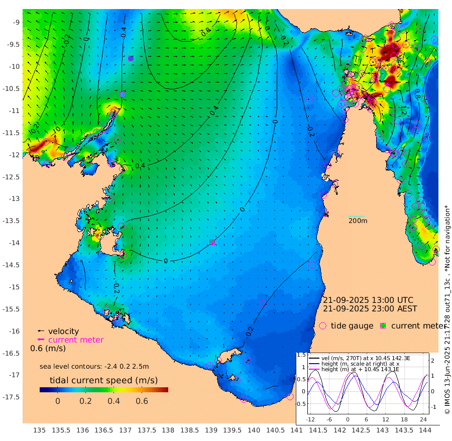 9cm/s 98T +3cm/s rms + 7cm/s -42T. ARA-GOC87 57m 24cm/s 173T +3cm/s rms + 2cm/s -2T. ARA-GOC87 60m 4cm/s 41T +2cm/s rms + 3cm/s 61T. ARA-GOC87 47m 153cm Daru 156cm Bobo Island 77cm Meer Island Barge 111cm Bramble Cay 137cm Unnamed Cay 152cm Pearce Cay 134cm Stephens Island 135cm Merrie England Shoals 155cm Mutacomal Reef 119cm Darnley Island Barge 90cm East Cay 134cm Yorke Island Barge 145cm Rennel Island 145cm Aureed Island 142cm Dungeness Reef 127cm Zagai Island 130cm Yam Island 91cm Dauan Island 84cm Saibai Island 91cm Phipi Reef 138cm Warrior Reef - West 66cm Mabuiag Island Barge 141cm Half Way Island 147cm Coconut Island 150cm Dugong Islet 141cm Poll Island 136cm Kirkcaldie Reef 127cm Suarji Island 129cm Sue Islet 34cm Hawkesbury Island 111cm Alert Patches 123cm Twin Island 29cm Badu Island 121cm St Pauls (Moa Island) 61cm Kubin (Moa Island) 91cm Ince Point 72cm Thursday Island 77cm Nardana Patches 53cm Turtle Head 37cm Round Island 17cm Goods Island -15cm Booby Island 2cm White Rocks Area -30cm Carpentaria 105cm Papou Point -5cm Bampfield Head -23cm Crab Island 2cm Red Wallis Island 49cm Packe Island 164cm Harrington Reef 19cm Herald Camp 32cm Sharp Point 45cm Red Island Point 79cm Possession Island 121cm Alpha Rock 142cm Frederick Point 158cm Wyborn Reef Light 158cm Tetley Island 84cm Triangle Reef 157cm Turtle Head Island 81cm Maclennan Cay 47cm Raine Island 132cm Mcsweeny Reef 115cm Collette Reef 73cm Shadwell Reef 124cm Hannibal Island 117cm Round Point -35cm Vrilya Point 98cm Cape Grenville 91cm Hicks Island 92cm Sir Charles Hardy Island 31cm Harvey Island 79cm Kay Reef 64cm Rocky Island 56cm Chapman Island 53cm Ham Reef 59cm Jubilee Reef 62cm Night Island 56cm Unnamed Reef No. 3 66cm Morris Island 48cm 1st 3 Mile Opening 59cm Creech Reef 77cm Fife Island 65cm Eden Reef 62cm Stanley Island 79cm Normanby River 31cm Yabooma Island 53cm Hutchison River 29cm Elcho Island 29cm North West Crocodile Island 57cm Cape Wessel 46cm Stevens Island 74cm Guluwuru Island 32cm Hopeful Bay 43cm Auster Point 52cm Two Island Bay 76cm Cadell Strait 115cm Mallison Island 62cm Melville Bay (Gove Harbour) 69cm Truant Island 44cm Cape Arnhem 15cm Cape Grey 12cm Hawk Island -33cm Milner Bay (Groote Eylandt) -27cm Cape Beatrice -52cm West Island -63cm Centre Island -37cm Mornington Island -39cm West Wellesley Islands -49cm Bountiful Island -79cm Albert River Mouth -88cm Sweers Island -68cm Karumba -16cm Nassau River Offshore -3cm Christmas Creek -15cm Archer River -7cm Boyd Point -16cm Weipa (Humbug Point) -27cm Pennefather River -22cm Cullen Point