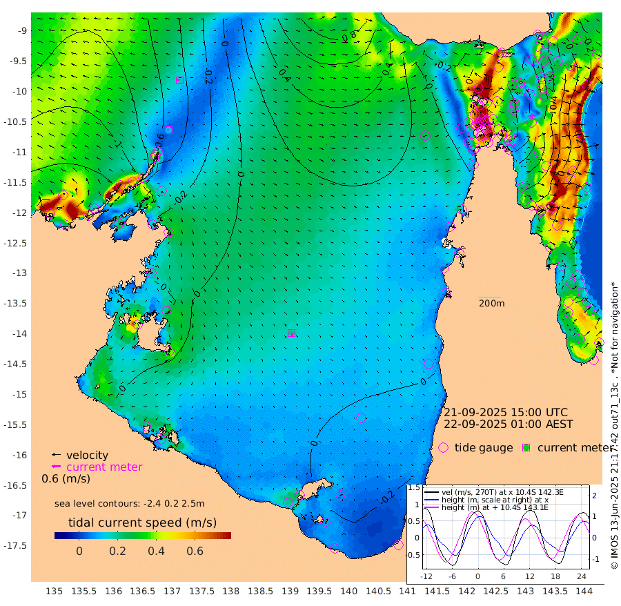 11cm/s -69T +3cm/s rms + 7cm/s -42T. ARA-GOC87 57m 21cm/s 168T +3cm/s rms + 2cm/s -2T. ARA-GOC87 60m 19cm/s -74T +2cm/s rms + 3cm/s 61T. ARA-GOC87 47m 76cm Daru 66cm Bobo Island -10cm Meer Island Barge 2cm Bramble Cay 35cm Unnamed Cay 50cm Pearce Cay 31cm Stephens Island 24cm Merrie England Shoals 63cm Mutacomal Reef 26cm Darnley Island Barge -12cm East Cay 53cm Yorke Island Barge 55cm Rennel Island 64cm Aureed Island 82cm Dungeness Reef 117cm Zagai Island 118cm Yam Island 131cm Dauan Island 124cm Saibai Island 120cm Phipi Reef 131cm Warrior Reef - West 95cm Mabuiag Island Barge 58cm Half Way Island 79cm Coconut Island 76cm Dugong Islet 100cm Poll Island 96cm Kirkcaldie Reef 113cm Suarji Island 100cm Sue Islet 38cm Hawkesbury Island 100cm Alert Patches 107cm Twin Island 43cm Badu Island 123cm St Pauls (Moa Island) 64cm Kubin (Moa Island) 94cm Ince Point 80cm Thursday Island 85cm Nardana Patches 57cm Turtle Head 42cm Round Island 20cm Goods Island 4cm Booby Island 2cm White Rocks Area 9cm Carpentaria 101cm Papou Point -3cm Bampfield Head 4cm Crab Island 16cm Red Wallis Island 47cm Packe Island 84cm Harrington Reef 35cm Herald Camp 46cm Sharp Point 52cm Red Island Point 77cm Possession Island 97cm Alpha Rock 99cm Frederick Point 72cm Wyborn Reef Light 83cm Tetley Island 9cm Triangle Reef 70cm Turtle Head Island -2cm Maclennan Cay -33cm Raine Island 38cm Mcsweeny Reef 22cm Collette Reef -9cm Shadwell Reef 18cm Hannibal Island 0cm Round Point 3cm Vrilya Point -4cm Cape Grenville -5cm Hicks Island -5cm Sir Charles Hardy Island 2cm Harvey Island -26cm Kay Reef -27cm Rocky Island -37cm Chapman Island -31cm Ham Reef -27cm Jubilee Reef -18cm Night Island -32cm Unnamed Reef No. 3 -30cm Morris Island -33cm 1st 3 Mile Opening -27cm Creech Reef -22cm Fife Island -46cm Eden Reef -35cm Stanley Island -35cm Normanby River -128cm Yabooma Island -130cm Hutchison River -123cm Elcho Island -113cm North West Crocodile Island -61cm Cape Wessel -107cm Stevens Island -36cm Guluwuru Island -108cm Hopeful Bay -81cm Auster Point -67cm Two Island Bay -81cm Cadell Strait -25cm Mallison Island -42cm Melville Bay (Gove Harbour) -41cm Truant Island -21cm Cape Arnhem -22cm Cape Grey -14cm Hawk Island -25cm Milner Bay (Groote Eylandt) -15cm Cape Beatrice -1cm West Island -5cm Centre Island 1cm Mornington Island -5cm West Wellesley Islands -26cm Bountiful Island -43cm Albert River Mouth -54cm Sweers Island -28cm Karumba 6cm Nassau River Offshore 12cm Christmas Creek -6cm Archer River 9cm Boyd Point -7cm Weipa (Humbug Point) 1cm Pennefather River 9cm Cullen Point