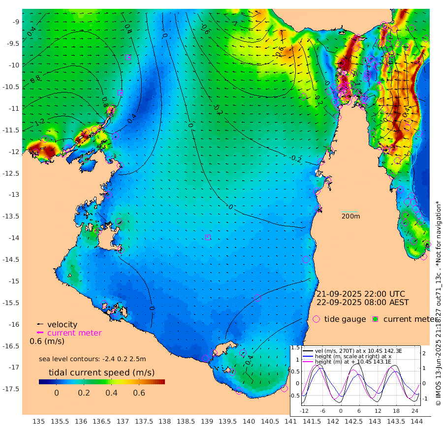 12cm/s 109T +3cm/s rms + 7cm/s -42T. ARA-GOC87 57m 14cm/s -47T +3cm/s rms + 2cm/s -2T. ARA-GOC87 60m 17cm/s 93T +2cm/s rms + 3cm/s 61T. ARA-GOC87 47m -13cm Daru -2cm Bobo Island 41cm Meer Island Barge 45cm Bramble Cay 17cm Unnamed Cay 16cm Pearce Cay 23cm Stephens Island 32cm Merrie England Shoals -3cm Mutacomal Reef 19cm Darnley Island Barge 52cm East Cay -3cm Yorke Island Barge 4cm Rennel Island -8cm Aureed Island -25cm Dungeness Reef -74cm Zagai Island -74cm Yam Island -98cm Dauan Island -100cm Saibai Island -69cm Phipi Reef -77cm Warrior Reef - West -81cm Mabuiag Island Barge -3cm Half Way Island -21cm Coconut Island -22cm Dugong Islet -49cm Poll Island -41cm Kirkcaldie Reef -76cm Suarji Island -57cm Sue Islet -30cm Hawkesbury Island -62cm Alert Patches -67cm Twin Island -34cm Badu Island -87cm St Pauls (Moa Island) -51cm Kubin (Moa Island) -67cm Ince Point -62cm Thursday Island -65cm Nardana Patches -42cm Turtle Head -39cm Round Island -21cm Goods Island -22cm Booby Island -15cm White Rocks Area -55cm Carpentaria -68cm Papou Point -30cm Bampfield Head -10cm Crab Island -26cm Red Wallis Island -36cm Packe Island -22cm Harrington Reef -44cm Herald Camp -34cm Sharp Point -25cm Red Island Point -53cm Possession Island -64cm Alpha Rock -48cm Frederick Point -16cm Wyborn Reef Light -28cm Tetley Island 23cm Triangle Reef -10cm Turtle Head Island 32cm Maclennan Cay 56cm Raine Island 14cm Mcsweeny Reef 25cm Collette Reef 40cm Shadwell Reef 33cm Hannibal Island 51cm Round Point -14cm Vrilya Point 43cm Cape Grenville 44cm Hicks Island 34cm Sir Charles Hardy Island 11cm Harvey Island 58cm Kay Reef 54cm Rocky Island 62cm Chapman Island 52cm Ham Reef 51cm Jubilee Reef 44cm Night Island 57cm Unnamed Reef No. 3 58cm Morris Island 50cm 1st 3 Mile Opening 52cm Creech Reef 58cm Fife Island 74cm Eden Reef 61cm Stanley Island 69cm Normanby River 128cm Yabooma Island 145cm Hutchison River 128cm Elcho Island 123cm North West Crocodile Island 56cm Cape Wessel 114cm Stevens Island 43cm Guluwuru Island 112cm Hopeful Bay 79cm Auster Point 66cm Two Island Bay 112cm Cadell Strait 43cm Mallison Island 48cm Melville Bay (Gove Harbour) 44cm Truant Island 24cm Cape Arnhem 22cm Cape Grey 21cm Hawk Island 12cm Milner Bay (Groote Eylandt) 13cm Cape Beatrice -12cm West Island -9cm Centre Island 33cm Mornington Island 31cm West Wellesley Islands 50cm Bountiful Island 83cm Albert River Mouth 87cm Sweers Island 83cm Karumba 37cm Nassau River Offshore 24cm Christmas Creek 26cm Archer River -5cm Boyd Point 11cm Weipa (Humbug Point) 7cm Pennefather River -22cm Cullen Point