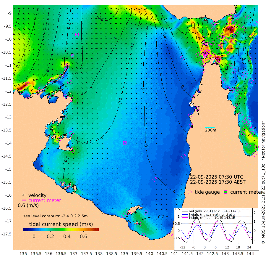 17cm/s -99T +3cm/s rms + 7cm/s -42T. ARA-GOC87 57m 7cm/s 24T +3cm/s rms + 2cm/s -2T. ARA-GOC87 60m 17cm/s -123T +2cm/s rms + 3cm/s 61T. ARA-GOC87 47m -115cm Daru -122cm Bobo Island -45cm Meer Island Barge -73cm Bramble Cay -91cm Unnamed Cay -113cm Pearce Cay -92cm Stephens Island -91cm Merrie England Shoals -108cm Mutacomal Reef -81cm Darnley Island Barge -56cm East Cay -95cm Yorke Island Barge -102cm Rennel Island -109cm Aureed Island -104cm Dungeness Reef -100cm Zagai Island -91cm Yam Island -63cm Dauan Island -59cm Saibai Island -83cm Phipi Reef -109cm Warrior Reef - West -29cm Mabuiag Island Barge -97cm Half Way Island -113cm Coconut Island -100cm Dugong Islet -101cm Poll Island -98cm Kirkcaldie Reef -89cm Suarji Island -90cm Sue Islet 38cm Hawkesbury Island -69cm Alert Patches -79cm Twin Island 19cm Badu Island -78cm St Pauls (Moa Island) 2cm Kubin (Moa Island) -44cm Ince Point -22cm Thursday Island -28cm Nardana Patches -1cm Turtle Head 20cm Round Island 45cm Goods Island 80cm Booby Island 66cm White Rocks Area 92cm Carpentaria -68cm Papou Point 80cm Bampfield Head 60cm Crab Island 63cm Red Wallis Island 16cm Packe Island -118cm Harrington Reef 56cm Herald Camp -26cm Sharp Point -11cm Red Island Point -38cm Possession Island -73cm Alpha Rock -98cm Frederick Point -111cm Wyborn Reef Light -110cm Tetley Island -51cm Triangle Reef -108cm Turtle Head Island -43cm Maclennan Cay -23cm Raine Island -90cm Mcsweeny Reef -79cm Collette Reef -43cm Shadwell Reef -85cm Hannibal Island -77cm Round Point 68cm Vrilya Point -57cm Cape Grenville -56cm Hicks Island -44cm Sir Charles Hardy Island -19cm Harvey Island -41cm Kay Reef -32cm Rocky Island -27cm Chapman Island -22cm Ham Reef -28cm Jubilee Reef -34cm Night Island -27cm Unnamed Reef No. 3 -33cm Morris Island -17cm 1st 3 Mile Opening -28cm Creech Reef -47cm Fife Island -30cm Eden Reef -27cm Stanley Island -40cm Normanby River 3cm Yabooma Island -26cm Hutchison River -9cm Elcho Island -9cm North West Crocodile Island -30cm Cape Wessel -26cm Stevens Island -58cm Guluwuru Island -14cm Hopeful Bay -22cm Auster Point -23cm Two Island Bay -62cm Cadell Strait -105cm Mallison Island -49cm Melville Bay (Gove Harbour) -51cm Truant Island -40cm Cape Arnhem -26cm Cape Grey -30cm Hawk Island -2cm Milner Bay (Groote Eylandt) -6cm Cape Beatrice 11cm West Island 12cm Centre Island -33cm Mornington Island -22cm West Wellesley Islands -16cm Bountiful Island -29cm Albert River Mouth -30cm Sweers Island -39cm Karumba -25cm Nassau River Offshore -11cm Christmas Creek 19cm Archer River 32cm Boyd Point 42cm Weipa (Humbug Point) 35cm Pennefather River 63cm Cullen Point