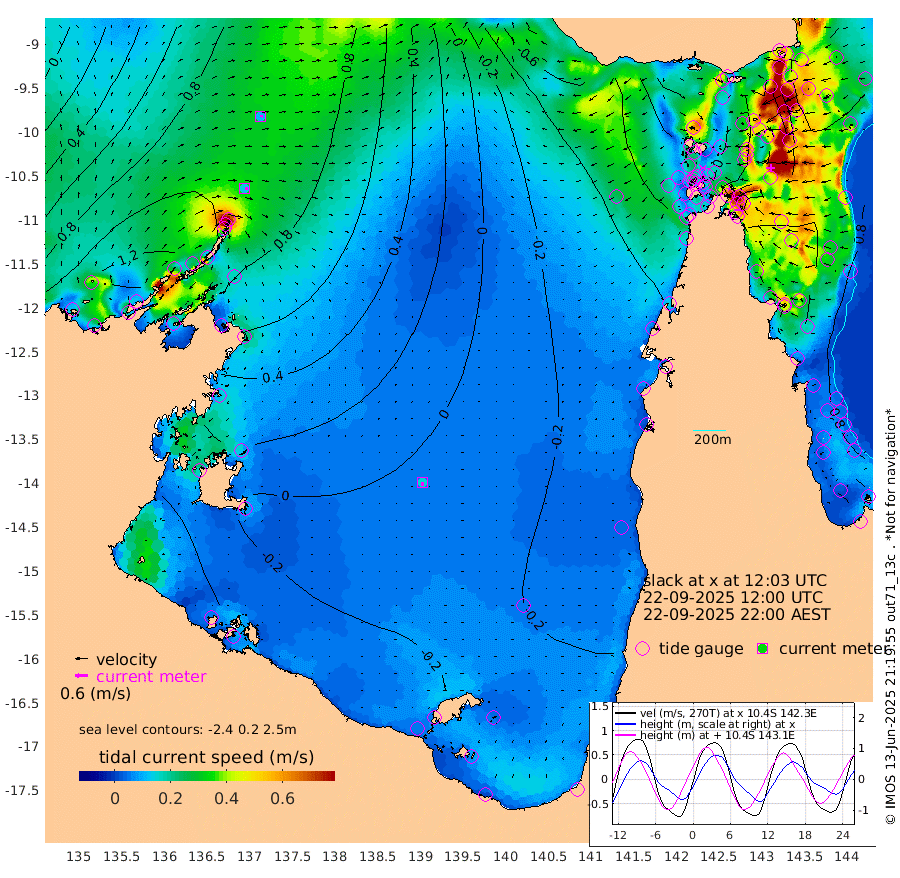 14cm/s 106T +3cm/s rms + 7cm/s -42T. ARA-GOC87 57m 15cm/s -173T +3cm/s rms + 2cm/s -2T. ARA-GOC87 60m 11cm/s 86T +2cm/s rms + 3cm/s 61T. ARA-GOC87 47m 111cm Daru 116cm Bobo Island 83cm Meer Island Barge 113cm Bramble Cay 120cm Unnamed Cay 122cm Pearce Cay 115cm Stephens Island 124cm Merrie England Shoals 123cm Mutacomal Reef 101cm Darnley Island Barge 98cm East Cay 101cm Yorke Island Barge 114cm Rennel Island 105cm Aureed Island 94cm Dungeness Reef 60cm Zagai Island 66cm Yam Island 26cm Dauan Island 20cm Saibai Island 27cm Phipi Reef 67cm Warrior Reef - West 17cm Mabuiag Island Barge 105cm Half Way Island 100cm Coconut Island 105cm Dugong Islet 84cm Poll Island 78cm Kirkcaldie Reef 61cm Suarji Island 69cm Sue Islet 25cm Hawkesbury Island 53cm Alert Patches 61cm Twin Island 14cm Badu Island 50cm St Pauls (Moa Island) 34cm Kubin (Moa Island) 40cm Ince Point 28cm Thursday Island 31cm Nardana Patches 26cm Turtle Head 22cm Round Island 15cm Goods Island -11cm Booby Island 9cm White Rocks Area -41cm Carpentaria 45cm Papou Point 3cm Bampfield Head -25cm Crab Island 1cm Red Wallis Island 33cm Packe Island 111cm Harrington Reef 9cm Herald Camp 3cm Sharp Point 16cm Red Island Point 34cm Possession Island 69cm Alpha Rock 85cm Frederick Point 121cm Wyborn Reef Light 114cm Tetley Island 81cm Triangle Reef 114cm Turtle Head Island 83cm Maclennan Cay 67cm Raine Island 110cm Mcsweeny Reef 103cm Collette Reef 79cm Shadwell Reef 115cm Hannibal Island 121cm Round Point -43cm Vrilya Point 102cm Cape Grenville 95cm Hicks Island 99cm Sir Charles Hardy Island 29cm Harvey Island 97cm Kay Reef 82cm Rocky Island 81cm Chapman Island 73cm Ham Reef 76cm Jubilee Reef 72cm Night Island 76cm Unnamed Reef No. 3 85cm Morris Island 67cm 1st 3 Mile Opening 75cm Creech Reef 92cm Fife Island 94cm Eden Reef 83cm Stanley Island 101cm Normanby River 154cm Yabooma Island 184cm Hutchison River 149cm Elcho Island 142cm North West Crocodile Island 121cm Cape Wessel 151cm Stevens Island 117cm Guluwuru Island 135cm Hopeful Bay 120cm Auster Point 123cm Two Island Bay 164cm Cadell Strait 153cm Mallison Island 109cm Melville Bay (Gove Harbour) 115cm Truant Island 69cm Cape Arnhem 33cm Cape Grey 26cm Hawk Island -22cm Milner Bay (Groote Eylandt) -22cm Cape Beatrice -65cm West Island -77cm Centre Island -45cm Mornington Island -43cm West Wellesley Islands -32cm Bountiful Island -47cm Albert River Mouth -57cm Sweers Island -50cm Karumba -21cm Nassau River Offshore -11cm Christmas Creek -13cm Archer River -12cm Boyd Point -8cm Weipa (Humbug Point) -36cm Pennefather River -28cm Cullen Point