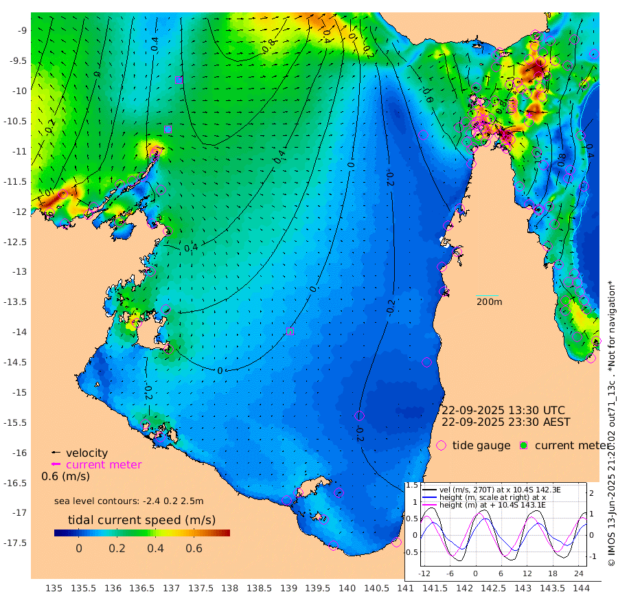 11cm/s 82T +3cm/s rms + 7cm/s -42T. ARA-GOC87 57m 19cm/s 177T +3cm/s rms + 2cm/s -2T. ARA-GOC87 60m 9cm/s 41T +2cm/s rms + 3cm/s 61T. ARA-GOC87 47m 128cm Daru 131cm Bobo Island 57cm Meer Island Barge 87cm Bramble Cay 110cm Unnamed Cay 123cm Pearce Cay 106cm Stephens Island 107cm Merrie England Shoals 129cm Mutacomal Reef 94cm Darnley Island Barge 67cm East Cay 109cm Yorke Island Barge 118cm Rennel Island 121cm Aureed Island 117cm Dungeness Reef 115cm Zagai Island 113cm Yam Island 87cm Dauan Island 82cm Saibai Island 82cm Phipi Reef 125cm Warrior Reef - West 54cm Mabuiag Island Barge 112cm Half Way Island 123cm Coconut Island 121cm Dugong Islet 119cm Poll Island 109cm Kirkcaldie Reef 108cm Suarji Island 108cm Sue Islet 5cm Hawkesbury Island 87cm Alert Patches 100cm Twin Island 7cm Badu Island 100cm St Pauls (Moa Island) 37cm Kubin (Moa Island) 69cm Ince Point 48cm Thursday Island 55cm Nardana Patches 29cm Turtle Head 15cm Round Island -10cm Goods Island -43cm Booby Island -26cm White Rocks Area -54cm Carpentaria 85cm Papou Point -33cm Bampfield Head -47cm Crab Island -25cm Red Wallis Island 23cm Packe Island 132cm Harrington Reef -7cm Herald Camp 28cm Sharp Point 20cm Red Island Point 56cm Possession Island 102cm Alpha Rock 117cm Frederick Point 133cm Wyborn Reef Light 134cm Tetley Island 66cm Triangle Reef 123cm Turtle Head Island 59cm Maclennan Cay 30cm Raine Island 106cm Mcsweeny Reef 91cm Collette Reef 54cm Shadwell Reef 98cm Hannibal Island 91cm Round Point -60cm Vrilya Point 73cm Cape Grenville 68cm Hicks Island 70cm Sir Charles Hardy Island 23cm Harvey Island 56cm Kay Reef 45cm Rocky Island 39cm Chapman Island 36cm Ham Reef 40cm Jubilee Reef 44cm Night Island 38cm Unnamed Reef No. 3 45cm Morris Island 28cm 1st 3 Mile Opening 39cm Creech Reef 57cm Fife Island 43cm Eden Reef 40cm Stanley Island 55cm Normanby River 43cm Yabooma Island 69cm Hutchison River 46cm Elcho Island 44cm North West Crocodile Island 70cm Cape Wessel 62cm Stevens Island 87cm Guluwuru Island 47cm Hopeful Bay 54cm Auster Point 63cm Two Island Bay 90cm Cadell Strait 141cm Mallison Island 75cm Melville Bay (Gove Harbour) 81cm Truant Island 55cm Cape Arnhem 24cm Cape Grey 23cm Hawk Island -19cm Milner Bay (Groote Eylandt) -16cm Cape Beatrice -42cm West Island -52cm Centre Island -24cm Mornington Island -27cm West Wellesley Islands -32cm Bountiful Island -46cm Albert River Mouth -55cm Sweers Island -43cm Karumba -14cm Nassau River Offshore -11cm Christmas Creek -29cm Archer River -22cm Boyd Point -32cm Weipa (Humbug Point) -47cm Pennefather River -42cm Cullen Point