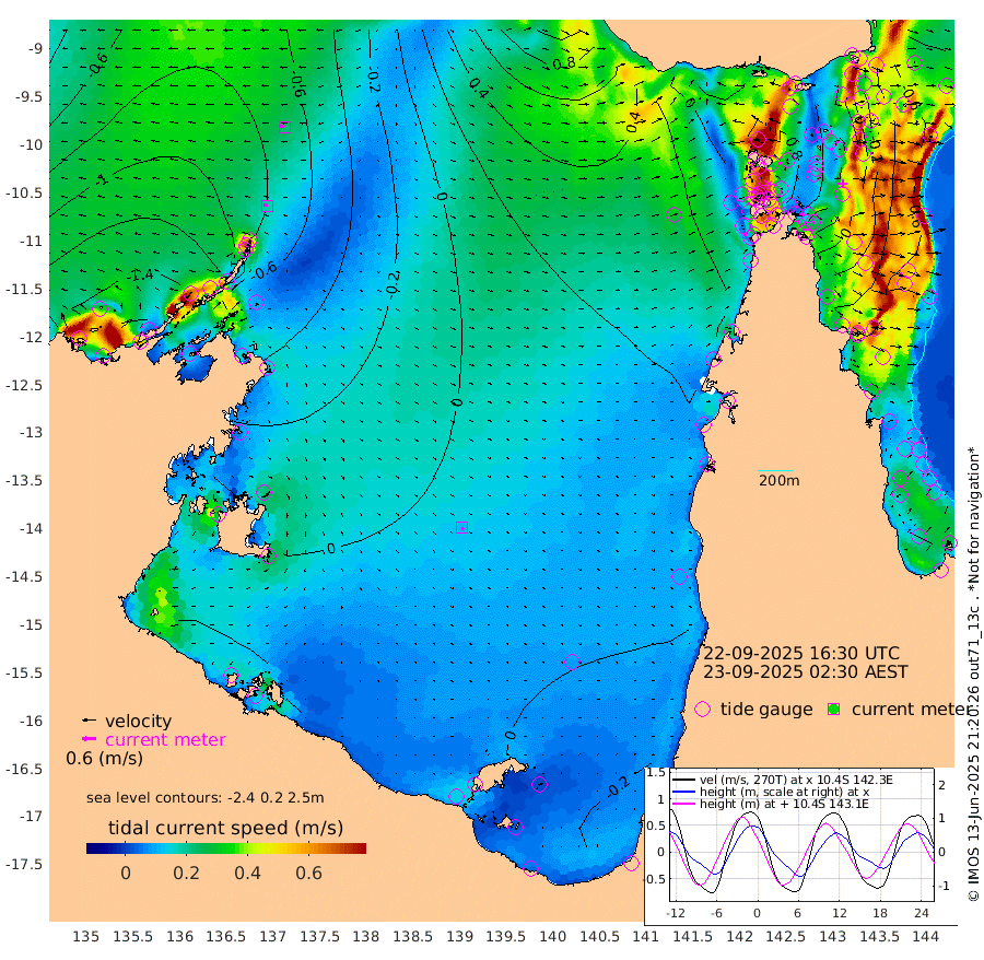18cm/s -66T +3cm/s rms + 7cm/s -42T. ARA-GOC87 57m 11cm/s 163T +3cm/s rms + 2cm/s -2T. ARA-GOC87 60m 23cm/s -73T +2cm/s rms + 3cm/s 61T. ARA-GOC87 47m -15cm Daru -24cm Bobo Island -55cm Meer Island Barge -64cm Bramble Cay -47cm Unnamed Cay -39cm Pearce Cay -46cm Stephens Island -57cm Merrie England Shoals -29cm Mutacomal Reef -41cm Darnley Island Barge -64cm East Cay -23cm Yorke Island Barge -30cm Rennel Island -19cm Aureed Island -5cm Dungeness Reef 40cm Zagai Island 39cm Yam Island 72cm Dauan Island 72cm Saibai Island 53cm Phipi Reef 48cm Warrior Reef - West 47cm Mabuiag Island Barge -23cm Half Way Island -10cm Coconut Island -10cm Dugong Islet 15cm Poll Island 12cm Kirkcaldie Reef 31cm Suarji Island 24cm Sue Islet 5cm Hawkesbury Island 25cm Alert Patches 29cm Twin Island 4cm Badu Island 46cm St Pauls (Moa Island) 18cm Kubin (Moa Island) 31cm Ince Point 27cm Thursday Island 29cm Nardana Patches 11cm Turtle Head 7cm Round Island -9cm Goods Island -7cm Booby Island -20cm White Rocks Area 19cm Carpentaria 34cm Papou Point -18cm Bampfield Head 1cm Crab Island 1cm Red Wallis Island 7cm Packe Island -12cm Harrington Reef 15cm Herald Camp 27cm Sharp Point 12cm Red Island Point 21cm Possession Island 24cm Alpha Rock 12cm Frederick Point -22cm Wyborn Reef Light -10cm Tetley Island -39cm Triangle Reef -25cm Turtle Head Island -49cm Maclennan Cay -64cm Raine Island -40cm Mcsweeny Reef -46cm Collette Reef -53cm Shadwell Reef -56cm Hannibal Island -69cm Round Point 11cm Vrilya Point -61cm Cape Grenville -59cm Hicks Island -57cm Sir Charles Hardy Island -16cm Harvey Island -73cm Kay Reef -65cm Rocky Island -71cm Chapman Island -61cm Ham Reef -62cm Jubilee Reef -53cm Night Island -65cm Unnamed Reef No. 3 -70cm Morris Island -65cm 1st 3 Mile Opening -62cm Creech Reef -65cm Fife Island -84cm Eden Reef -72cm Stanley Island -80cm Normanby River -163cm Yabooma Island -182cm Hutchison River -156cm Elcho Island -145cm North West Crocodile Island -93cm Cape Wessel -145cm Stevens Island -77cm Guluwuru Island -136cm Hopeful Bay -112cm Auster Point -96cm Two Island Bay -131cm Cadell Strait -63cm Mallison Island -79cm Melville Bay (Gove Harbour) -80cm Truant Island -46cm Cape Arnhem -37cm Cape Grey -22cm Hawk Island -13cm Milner Bay (Groote Eylandt) -4cm Cape Beatrice 25cm West Island 27cm Centre Island 15cm Mornington Island 9cm West Wellesley Islands -17cm Bountiful Island -19cm Albert River Mouth -26cm Sweers Island -8cm Karumba 6cm Nassau River Offshore 6cm Christmas Creek -7cm Archer River 6cm Boyd Point -9cm Weipa (Humbug Point) 6cm Pennefather River 15cm Cullen Point
