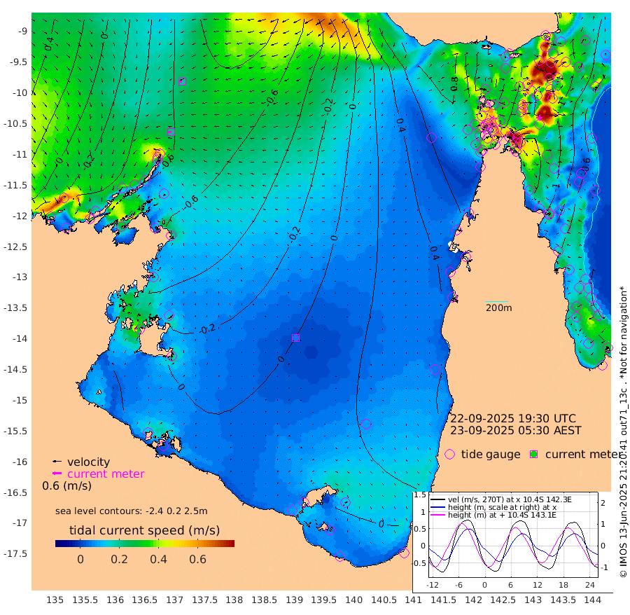 21cm/s -91T +3cm/s rms + 7cm/s -42T. ARA-GOC87 57m 6cm/s -43T +3cm/s rms + 2cm/s -2T. ARA-GOC87 60m 20cm/s -102T +2cm/s rms + 3cm/s 61T. ARA-GOC87 47m -124cm Daru -130cm Bobo Island -62cm Meer Island Barge -89cm Bramble Cay -111cm Unnamed Cay -121cm Pearce Cay -106cm Stephens Island -107cm Merrie England Shoals -123cm Mutacomal Reef -96cm Darnley Island Barge -70cm East Cay -109cm Yorke Island Barge -113cm Rennel Island -122cm Aureed Island -112cm Dungeness Reef -112cm Zagai Island -101cm Yam Island -67cm Dauan Island -68cm Saibai Island -69cm Phipi Reef -112cm Warrior Reef - West -42cm Mabuiag Island Barge -107cm Half Way Island -123cm Coconut Island -113cm Dugong Islet -112cm Poll Island -100cm Kirkcaldie Reef -111cm Suarji Island -102cm Sue Islet 35cm Hawkesbury Island -79cm Alert Patches -90cm Twin Island 9cm Badu Island -90cm St Pauls (Moa Island) -11cm Kubin (Moa Island) -55cm Ince Point -34cm Thursday Island -41cm Nardana Patches -12cm Turtle Head 8cm Round Island 29cm Goods Island 61cm Booby Island 40cm White Rocks Area 59cm Carpentaria -75cm Papou Point 40cm Bampfield Head 67cm Crab Island 49cm Red Wallis Island 5cm Packe Island -129cm Harrington Reef 42cm Herald Camp -23cm Sharp Point 1cm Red Island Point -45cm Possession Island -92cm Alpha Rock -108cm Frederick Point -130cm Wyborn Reef Light -128cm Tetley Island -66cm Triangle Reef -119cm Turtle Head Island -62cm Maclennan Cay -37cm Raine Island -106cm Mcsweeny Reef -93cm Collette Reef -58cm Shadwell Reef -102cm Hannibal Island -91cm Round Point 81cm Vrilya Point -75cm Cape Grenville -70cm Hicks Island -74cm Sir Charles Hardy Island -23cm Harvey Island -62cm Kay Reef -50cm Rocky Island -45cm Chapman Island -40cm Ham Reef -46cm Jubilee Reef -46cm Night Island -42cm Unnamed Reef No. 3 -52cm Morris Island -40cm 1st 3 Mile Opening -45cm Creech Reef -58cm Fife Island -51cm Eden Reef -45cm Stanley Island -58cm Normanby River -48cm Yabooma Island -80cm Hutchison River -54cm Elcho Island -45cm North West Crocodile Island -84cm Cape Wessel -73cm Stevens Island -108cm Guluwuru Island -55cm Hopeful Bay -68cm Auster Point -63cm Two Island Bay -90cm Cadell Strait -158cm Mallison Island -94cm Melville Bay (Gove Harbour) -102cm Truant Island -73cm Cape Arnhem -48cm Cape Grey -35cm Hawk Island -10cm Milner Bay (Groote Eylandt) -2cm Cape Beatrice 19cm West Island 27cm Centre Island 16cm Mornington Island 15cm West Wellesley Islands 7cm Bountiful Island 26cm Albert River Mouth 23cm Sweers Island 38cm Karumba 21cm Nassau River Offshore 24cm Christmas Creek 43cm Archer River 37cm Boyd Point 45cm Weipa (Humbug Point) 63cm Pennefather River 65cm Cullen Point