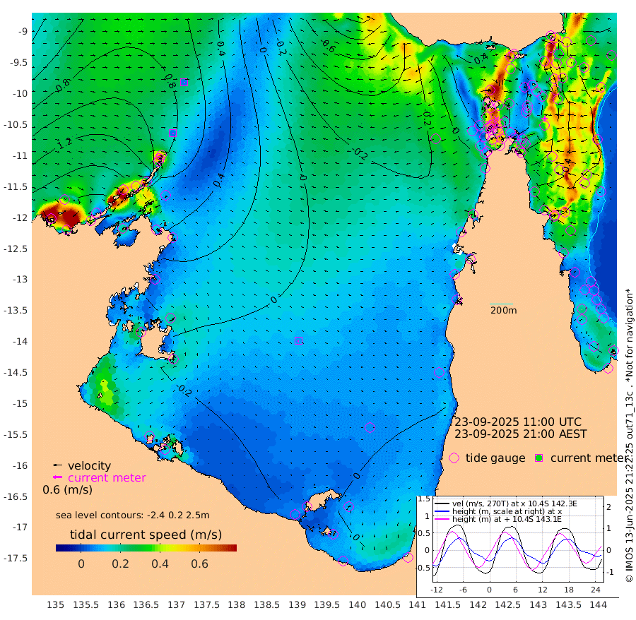 5cm/s 177T +3cm/s rms + 7cm/s -42T. ARA-GOC87 57m 9cm/s -141T +3cm/s rms + 2cm/s -2T. ARA-GOC87 60m 5cm/s 158T +2cm/s rms + 3cm/s 61T. ARA-GOC87 47m 40cm Daru 39cm Bobo Island 53cm Meer Island Barge 70cm Bramble Cay 64cm Unnamed Cay 53cm Pearce Cay 58cm Stephens Island 71cm Merrie England Shoals 57cm Mutacomal Reef 48cm Darnley Island Barge 63cm East Cay 38cm Yorke Island Barge 52cm Rennel Island 34cm Aureed Island 31cm Dungeness Reef -7cm Zagai Island 5cm Yam Island -17cm Dauan Island -26cm Saibai Island -16cm Phipi Reef -4cm Warrior Reef - West -6cm Mabuiag Island Barge 44cm Half Way Island 29cm Coconut Island 40cm Dugong Islet 19cm Poll Island 18cm Kirkcaldie Reef 3cm Suarji Island 7cm Sue Islet 45cm Hawkesbury Island 9cm Alert Patches 8cm Twin Island 30cm Badu Island -3cm St Pauls (Moa Island) 31cm Kubin (Moa Island) 9cm Ince Point 11cm Thursday Island 11cm Nardana Patches 27cm Turtle Head 31cm Round Island 44cm Goods Island 35cm Booby Island 50cm White Rocks Area -5cm Carpentaria -1cm Papou Point 41cm Bampfield Head 14cm Crab Island 35cm Red Wallis Island 39cm Packe Island 36cm Harrington Reef 34cm Herald Camp -15cm Sharp Point 13cm Red Island Point 7cm Possession Island 17cm Alpha Rock 21cm Frederick Point 50cm Wyborn Reef Light 43cm Tetley Island 46cm Triangle Reef 46cm Turtle Head Island 53cm Maclennan Cay 55cm Raine Island 54cm Mcsweeny Reef 54cm Collette Reef 53cm Shadwell Reef 63cm Hannibal Island 76cm Round Point -3cm Vrilya Point 66cm Cape Grenville 61cm Hicks Island 67cm Sir Charles Hardy Island 17cm Harvey Island 72cm Kay Reef 62cm Rocky Island 64cm Chapman Island 57cm Ham Reef 58cm Jubilee Reef 51cm Night Island 59cm Unnamed Reef No. 3 66cm Morris Island 57cm 1st 3 Mile Opening 57cm Creech Reef 63cm Fife Island 75cm Eden Reef 67cm Stanley Island 77cm Normanby River 180cm Yabooma Island 198cm Hutchison River 169cm Elcho Island 163cm North West Crocodile Island 97cm Cape Wessel 152cm Stevens Island 75cm Guluwuru Island 141cm Hopeful Bay 112cm Auster Point 110cm Two Island Bay 140cm Cadell Strait 50cm Mallison Island 78cm Melville Bay (Gove Harbour) 78cm Truant Island 41cm Cape Arnhem 22cm Cape Grey 14cm Hawk Island -12cm Milner Bay (Groote Eylandt) -10cm Cape Beatrice -43cm West Island -55cm Centre Island -32cm Mornington Island -25cm West Wellesley Islands 1cm Bountiful Island -2cm Albert River Mouth -14cm Sweers Island -11cm Karumba -7cm Nassau River Offshore 0cm Christmas Creek 9cm Archer River 7cm Boyd Point 23cm Weipa (Humbug Point) -9cm Pennefather River 4cm Cullen Point