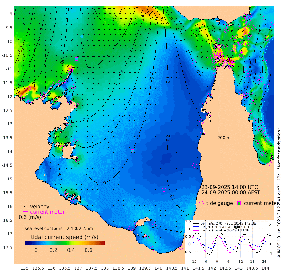 11cm/s 68T +3cm/s rms + 7cm/s -42T. ARA-GOC87 57m 14cm/s -174T +3cm/s rms + 2cm/s -2T. ARA-GOC87 60m 12cm/s 38T +2cm/s rms + 3cm/s 61T. ARA-GOC87 47m 100cm Daru 102cm Bobo Island 35cm Meer Island Barge 61cm Bramble Cay 81cm Unnamed Cay 91cm Pearce Cay 75cm Stephens Island 76cm Merrie England Shoals 100cm Mutacomal Reef 66cm Darnley Island Barge 42cm East Cay 82cm Yorke Island Barge 87cm Rennel Island 92cm Aureed Island 89cm Dungeness Reef 99cm Zagai Island 94cm Yam Island 81cm Dauan Island 78cm Saibai Island 72cm Phipi Reef 109cm Warrior Reef - West 43cm Mabuiag Island Barge 80cm Half Way Island 95cm Coconut Island 89cm Dugong Islet 94cm Poll Island 81cm Kirkcaldie Reef 86cm Suarji Island 85cm Sue Islet -24cm Hawkesbury Island 62cm Alert Patches 74cm Twin Island -12cm Badu Island 78cm St Pauls (Moa Island) 13cm Kubin (Moa Island) 46cm Ince Point 25cm Thursday Island 32cm Nardana Patches 6cm Turtle Head -9cm Round Island -34cm Goods Island -68cm Booby Island -52cm White Rocks Area -74cm Carpentaria 64cm Papou Point -60cm Bampfield Head -67cm Crab Island -49cm Red Wallis Island -2cm Packe Island 97cm Harrington Reef -34cm Herald Camp 24cm Sharp Point -4cm Red Island Point 31cm Possession Island 81cm Alpha Rock 88cm Frederick Point 104cm Wyborn Reef Light 106cm Tetley Island 46cm Triangle Reef 86cm Turtle Head Island 36cm Maclennan Cay 12cm Raine Island 77cm Mcsweeny Reef 65cm Collette Reef 34cm Shadwell Reef 70cm Hannibal Island 63cm Round Point -81cm Vrilya Point 47cm Cape Grenville 43cm Hicks Island 46cm Sir Charles Hardy Island 14cm Harvey Island 32cm Kay Reef 24cm Rocky Island 20cm Chapman Island 17cm Ham Reef 20cm Jubilee Reef 24cm Night Island 18cm Unnamed Reef No. 3 23cm Morris Island 8cm 1st 3 Mile Opening 17cm Creech Reef 35cm Fife Island 21cm Eden Reef 17cm Stanley Island 29cm Normanby River 45cm Yabooma Island 74cm Hutchison River 53cm Elcho Island 50cm North West Crocodile Island 72cm Cape Wessel 68cm Stevens Island 93cm Guluwuru Island 53cm Hopeful Bay 56cm Auster Point 64cm Two Island Bay 92cm Cadell Strait 160cm Mallison Island 80cm Melville Bay (Gove Harbour) 85cm Truant Island 60cm Cape Arnhem 30cm Cape Grey 31cm Hawk Island -5cm Milner Bay (Groote Eylandt) -3cm Cape Beatrice -28cm West Island -38cm Centre Island -7cm Mornington Island -10cm West Wellesley Islands -10cm Bountiful Island -9cm Albert River Mouth -19cm Sweers Island -13cm Karumba -8cm Nassau River Offshore -14cm Christmas Creek -39cm Archer River -35cm Boyd Point -44cm Weipa (Humbug Point) -62cm Pennefather River -59cm Cullen Point