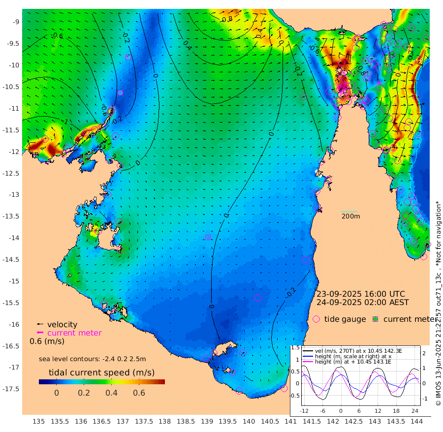 11cm/s -24T +3cm/s rms + 7cm/s -42T. ARA-GOC87 57m 10cm/s 163T +3cm/s rms + 2cm/s -2T. ARA-GOC87 60m 15cm/s -37T +2cm/s rms + 3cm/s 61T. ARA-GOC87 47m 19cm Daru 17cm Bobo Island -29cm Meer Island Barge -28cm Bramble Cay -10cm Unnamed Cay 0cm Pearce Cay -10cm Stephens Island -19cm Merrie England Shoals 9cm Mutacomal Reef -7cm Darnley Island Barge -34cm East Cay 10cm Yorke Island Barge 3cm Rennel Island 18cm Aureed Island 20cm Dungeness Reef 59cm Zagai Island 53cm Yam Island 67cm Dauan Island 71cm Saibai Island 46cm Phipi Reef 66cm Warrior Reef - West 32cm Mabuiag Island Barge 6cm Half Way Island 21cm Coconut Island 18cm Dugong Islet 37cm Poll Island 27cm Kirkcaldie Reef 43cm Suarji Island 41cm Sue Islet -41cm Hawkesbury Island 24cm Alert Patches 34cm Twin Island -34cm Badu Island 47cm St Pauls (Moa Island) -10cm Kubin (Moa Island) 21cm Ince Point 7cm Thursday Island 12cm Nardana Patches -17cm Turtle Head -26cm Round Island -52cm Goods Island -64cm Booby Island -66cm White Rocks Area -33cm Carpentaria 35cm Papou Point -67cm Bampfield Head -54cm Crab Island -48cm Red Wallis Island -24cm Packe Island 20cm Harrington Reef -34cm Herald Camp 26cm Sharp Point -19cm Red Island Point 7cm Possession Island 38cm Alpha Rock 30cm Frederick Point 16cm Wyborn Reef Light 24cm Tetley Island -14cm Triangle Reef 2cm Turtle Head Island -26cm Maclennan Cay -46cm Raine Island -5cm Mcsweeny Reef -14cm Collette Reef -29cm Shadwell Reef -19cm Hannibal Island -32cm Round Point -49cm Vrilya Point -31cm Cape Grenville -31cm Hicks Island -28cm Sir Charles Hardy Island -7cm Harvey Island -45cm Kay Reef -42cm Rocky Island -47cm Chapman Island -40cm Ham Reef -41cm Jubilee Reef -32cm Night Island -42cm Unnamed Reef No. 3 -46cm Morris Island -49cm 1st 3 Mile Opening -42cm Creech Reef -35cm Fife Island -55cm Eden Reef -49cm Stanley Island -50cm Normanby River -114cm Yabooma Island -117cm Hutchison River -103cm Elcho Island -98cm North West Crocodile Island -34cm Cape Wessel -83cm Stevens Island -11cm Guluwuru Island -82cm Hopeful Bay -60cm Auster Point -45cm Two Island Bay -63cm Cadell Strait 52cm Mallison Island -21cm Melville Bay (Gove Harbour) -18cm Truant Island -3cm Cape Arnhem -10cm Cape Grey 2cm Hawk Island -2cm Milner Bay (Groote Eylandt) 3cm Cape Beatrice 16cm West Island 15cm Centre Island 12cm Mornington Island 8cm West Wellesley Islands -16cm Bountiful Island -13cm Albert River Mouth -19cm Sweers Island -11cm Karumba -4cm Nassau River Offshore -11cm Christmas Creek -36cm Archer River -25cm Boyd Point -43cm Weipa (Humbug Point) -38cm Pennefather River -33cm Cullen Point