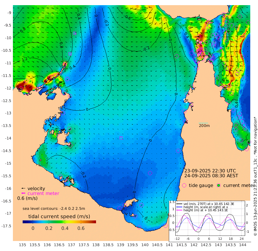15cm/s 130T +3cm/s rms + 7cm/s -42T. ARA-GOC87 57m 13cm/s -30T +3cm/s rms + 2cm/s -2T. ARA-GOC87 60m 18cm/s 115T +2cm/s rms + 3cm/s 61T. ARA-GOC87 47m -14cm Daru -11cm Bobo Island 23cm Meer Island Barge 27cm Bramble Cay 9cm Unnamed Cay 4cm Pearce Cay 10cm Stephens Island 21cm Merrie England Shoals -6cm Mutacomal Reef 4cm Darnley Island Barge 31cm East Cay -12cm Yorke Island Barge 0cm Rennel Island -20cm Aureed Island -21cm Dungeness Reef -62cm Zagai Island -54cm Yam Island -72cm Dauan Island -80cm Saibai Island -46cm Phipi Reef -66cm Warrior Reef - West -43cm Mabuiag Island Barge -5cm Half Way Island -20cm Coconut Island -20cm Dugong Islet -37cm Poll Island -26cm Kirkcaldie Reef -57cm Suarji Island -45cm Sue Islet 39cm Hawkesbury Island -31cm Alert Patches -39cm Twin Island 21cm Badu Island -53cm St Pauls (Moa Island) 4cm Kubin (Moa Island) -29cm Ince Point -18cm Thursday Island -22cm Nardana Patches 4cm Turtle Head 22cm Round Island 34cm Goods Island 41cm Booby Island 42cm White Rocks Area -1cm Carpentaria -36cm Papou Point 42cm Bampfield Head 45cm Crab Island 31cm Red Wallis Island 16cm Packe Island -19cm Harrington Reef 25cm Herald Camp -26cm Sharp Point 17cm Red Island Point -10cm Possession Island -42cm Alpha Rock -31cm Frederick Point -12cm Wyborn Reef Light -19cm Tetley Island 10cm Triangle Reef 4cm Turtle Head Island 17cm Maclennan Cay 38cm Raine Island 4cm Mcsweeny Reef 12cm Collette Reef 24cm Shadwell Reef 17cm Hannibal Island 34cm Round Point 40cm Vrilya Point 26cm Cape Grenville 28cm Hicks Island 14cm Sir Charles Hardy Island 7cm Harvey Island 37cm Kay Reef 33cm Rocky Island 38cm Chapman Island 31cm Ham Reef 31cm Jubilee Reef 27cm Night Island 34cm Unnamed Reef No. 3 37cm Morris Island 34cm 1st 3 Mile Opening 32cm Creech Reef 34cm Fife Island 45cm Eden Reef 40cm Stanley Island 44cm Normanby River 150cm Yabooma Island 159cm Hutchison River 141cm Elcho Island 138cm North West Crocodile Island 55cm Cape Wessel 123cm Stevens Island 27cm Guluwuru Island 118cm Hopeful Bay 87cm Auster Point 81cm Two Island Bay 114cm Cadell Strait -22cm Mallison Island 37cm Melville Bay (Gove Harbour) 36cm Truant Island 12cm Cape Arnhem 9cm Cape Grey 7cm Hawk Island -6cm Milner Bay (Groote Eylandt) -9cm Cape Beatrice -37cm West Island -32cm Centre Island -14cm Mornington Island -20cm West Wellesley Islands -8cm Bountiful Island 13cm Albert River Mouth 19cm Sweers Island 23cm Karumba -1cm Nassau River Offshore 3cm Christmas Creek 29cm Archer River 11cm Boyd Point 26cm Weipa (Humbug Point) 38cm Pennefather River 22cm Cullen Point