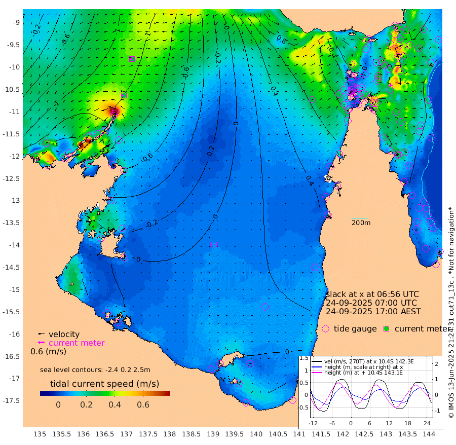 24cm/s -85T +3cm/s rms + 7cm/s -42T. ARA-GOC87 57m 7cm/s 104T +3cm/s rms + 2cm/s -2T. ARA-GOC87 60m 26cm/s -102T +2cm/s rms + 3cm/s 61T. ARA-GOC87 47m -68cm Daru -72cm Bobo Island -32cm Meer Island Barge -58cm Bramble Cay -63cm Unnamed Cay -69cm Pearce Cay -58cm Stephens Island -67cm Merrie England Shoals -71cm Mutacomal Reef -47cm Darnley Island Barge -43cm East Cay -51cm Yorke Island Barge -62cm Rennel Island -55cm Aureed Island -51cm Dungeness Reef -42cm Zagai Island -38cm Yam Island -20cm Dauan Island -13cm Saibai Island -31cm Phipi Reef -47cm Warrior Reef - West -2cm Mabuiag Island Barge -53cm Half Way Island -61cm Coconut Island -49cm Dugong Islet -48cm Poll Island -42cm Kirkcaldie Reef -26cm Suarji Island -36cm Sue Islet 14cm Hawkesbury Island -21cm Alert Patches -28cm Twin Island 10cm Badu Island -22cm St Pauls (Moa Island) 2cm Kubin (Moa Island) -9cm Ince Point 5cm Thursday Island 0cm Nardana Patches 9cm Turtle Head 7cm Round Island 28cm Goods Island 55cm Booby Island 41cm White Rocks Area 87cm Carpentaria -23cm Papou Point 46cm Bampfield Head 42cm Crab Island 44cm Red Wallis Island 11cm Packe Island -58cm Harrington Reef 34cm Herald Camp -3cm Sharp Point 5cm Red Island Point -10cm Possession Island -33cm Alpha Rock -45cm Frederick Point -73cm Wyborn Reef Light -70cm Tetley Island -36cm Triangle Reef -65cm Turtle Head Island -28cm Maclennan Cay -23cm Raine Island -56cm Mcsweeny Reef -53cm Collette Reef -34cm Shadwell Reef -59cm Hannibal Island -64cm Round Point 58cm Vrilya Point -43cm Cape Grenville -42cm Hicks Island -32cm Sir Charles Hardy Island -12cm Harvey Island -37cm Kay Reef -29cm Rocky Island -29cm Chapman Island -22cm Ham Reef -25cm Jubilee Reef -26cm Night Island -25cm Unnamed Reef No. 3 -31cm Morris Island -15cm 1st 3 Mile Opening -22cm Creech Reef -40cm Fife Island -32cm Eden Reef -26cm Stanley Island -38cm Normanby River -151cm Yabooma Island -188cm Hutchison River -156cm Elcho Island -151cm North West Crocodile Island -112cm Cape Wessel -160cm Stevens Island -114cm Guluwuru Island -141cm Hopeful Bay -120cm Auster Point -124cm Two Island Bay -178cm Cadell Strait -156cm Mallison Island -108cm Melville Bay (Gove Harbour) -112cm Truant Island -71cm Cape Arnhem -40cm Cape Grey -41cm Hawk Island 1cm Milner Bay (Groote Eylandt) 4cm Cape Beatrice 50cm West Island 52cm Centre Island 11cm Mornington Island 22cm West Wellesley Islands 16cm Bountiful Island -15cm Albert River Mouth -12cm Sweers Island -17cm Karumba 12cm Nassau River Offshore 19cm Christmas Creek 26cm Archer River 37cm Boyd Point 36cm Weipa (Humbug Point) 37cm Pennefather River 52cm Cullen Point