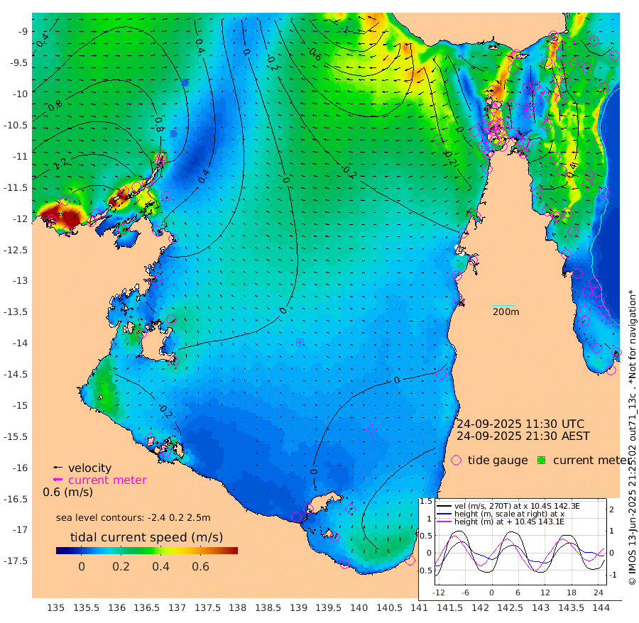 5cm/s -134T +3cm/s rms + 7cm/s -42T. ARA-GOC87 57m 10cm/s -129T +3cm/s rms + 2cm/s -2T. ARA-GOC87 60m 4cm/s -151T +2cm/s rms + 3cm/s 61T. ARA-GOC87 47m 47cm Daru 42cm Bobo Island 42cm Meer Island Barge 60cm Bramble Cay 61cm Unnamed Cay 52cm Pearce Cay 53cm Stephens Island 65cm Merrie England Shoals 59cm Mutacomal Reef 42cm Darnley Island Barge 51cm East Cay 38cm Yorke Island Barge 54cm Rennel Island 35cm Aureed Island 40cm Dungeness Reef 11cm Zagai Island 22cm Yam Island 8cm Dauan Island -5cm Saibai Island 12cm Phipi Reef 17cm Warrior Reef - West 11cm Mabuiag Island Barge 46cm Half Way Island 36cm Coconut Island 45cm Dugong Islet 31cm Poll Island 31cm Kirkcaldie Reef 22cm Suarji Island 19cm Sue Islet 45cm Hawkesbury Island 24cm Alert Patches 22cm Twin Island 39cm Badu Island 16cm St Pauls (Moa Island) 38cm Kubin (Moa Island) 23cm Ince Point 22cm Thursday Island 23cm Nardana Patches 36cm Turtle Head 34cm Round Island 45cm Goods Island 32cm Booby Island 47cm White Rocks Area -15cm Carpentaria 14cm Papou Point 31cm Bampfield Head 13cm Crab Island 31cm Red Wallis Island 40cm Packe Island 42cm Harrington Reef 30cm Herald Camp -6cm Sharp Point 21cm Red Island Point 17cm Possession Island 26cm Alpha Rock 31cm Frederick Point 53cm Wyborn Reef Light 48cm Tetley Island 38cm Triangle Reef 49cm Turtle Head Island 43cm Maclennan Cay 43cm Raine Island 51cm Mcsweeny Reef 49cm Collette Reef 43cm Shadwell Reef 56cm Hannibal Island 64cm Round Point -7cm Vrilya Point 54cm Cape Grenville 51cm Hicks Island 55cm Sir Charles Hardy Island 14cm Harvey Island 56cm Kay Reef 49cm Rocky Island 47cm Chapman Island 41cm Ham Reef 44cm Jubilee Reef 39cm Night Island 43cm Unnamed Reef No. 3 52cm Morris Island 45cm 1st 3 Mile Opening 43cm Creech Reef 48cm Fife Island 57cm Eden Reef 51cm Stanley Island 60cm Normanby River 165cm Yabooma Island 186cm Hutchison River 157cm Elcho Island 154cm North West Crocodile Island 80cm Cape Wessel 137cm Stevens Island 63cm Guluwuru Island 123cm Hopeful Bay 96cm Auster Point 94cm Two Island Bay 127cm Cadell Strait 12cm Mallison Island 68cm Melville Bay (Gove Harbour) 66cm Truant Island 34cm Cape Arnhem 23cm Cape Grey 16cm Hawk Island -4cm Milner Bay (Groote Eylandt) 0cm Cape Beatrice -27cm West Island -40cm Centre Island -9cm Mornington Island -3cm West Wellesley Islands 30cm Bountiful Island 36cm Albert River Mouth 21cm Sweers Island 25cm Karumba 10cm Nassau River Offshore 10cm Christmas Creek 10cm Archer River 5cm Boyd Point 21cm Weipa (Humbug Point) -12cm Pennefather River -2cm Cullen Point