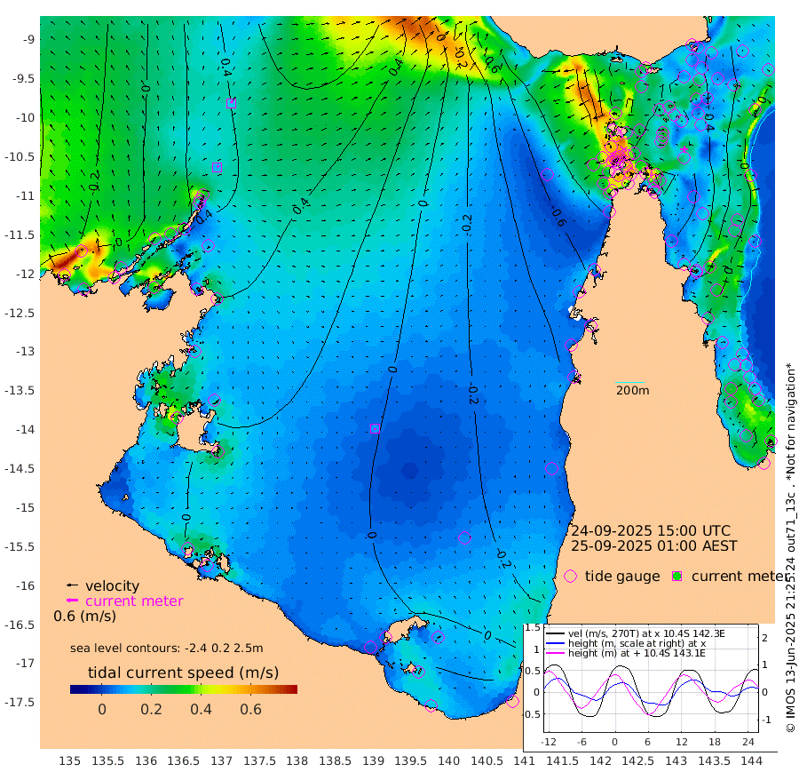 12cm/s 43T +3cm/s rms + 7cm/s -42T. ARA-GOC87 57m 8cm/s -167T +3cm/s rms + 2cm/s -2T. ARA-GOC87 60m 15cm/s 23T +2cm/s rms + 3cm/s 61T. ARA-GOC87 47m 56cm Daru 57cm Bobo Island 1cm Meer Island Barge 17cm Bramble Cay 34cm Unnamed Cay 41cm Pearce Cay 28cm Stephens Island 27cm Merrie England Shoals 52cm Mutacomal Reef 26cm Darnley Island Barge 2cm East Cay 41cm Yorke Island Barge 40cm Rennel Island 51cm Aureed Island 47cm Dungeness Reef 76cm Zagai Island 66cm Yam Island 70cm Dauan Island 73cm Saibai Island 54cm Phipi Reef 84cm Warrior Reef - West 27cm Mabuiag Island Barge 35cm Half Way Island 53cm Coconut Island 44cm Dugong Islet 57cm Poll Island 42cm Kirkcaldie Reef 54cm Suarji Island 55cm Sue Islet -62cm Hawkesbury Island 27cm Alert Patches 40cm Twin Island -42cm Badu Island 48cm St Pauls (Moa Island) -21cm Kubin (Moa Island) 16cm Ince Point -5cm Thursday Island 3cm Nardana Patches -26cm Turtle Head -42cm Round Island -68cm Goods Island -97cm Booby Island -86cm White Rocks Area -86cm Carpentaria 35cm Papou Point -96cm Bampfield Head -88cm Crab Island -78cm Red Wallis Island -37cm Packe Island 48cm Harrington Reef -67cm Herald Camp 21cm Sharp Point -33cm Red Island Point -1cm Possession Island 51cm Alpha Rock 48cm Frederick Point 57cm Wyborn Reef Light 61cm Tetley Island 14cm Triangle Reef 32cm Turtle Head Island 1cm Maclennan Cay -18cm Raine Island 32cm Mcsweeny Reef 24cm Collette Reef 2cm Shadwell Reef 25cm Hannibal Island 15cm Round Point -96cm Vrilya Point 5cm Cape Grenville 3cm Hicks Island 8cm Sir Charles Hardy Island 2cm Harvey Island -6cm Kay Reef -10cm Rocky Island -12cm Chapman Island -13cm Ham Reef -11cm Jubilee Reef -6cm Night Island -13cm Unnamed Reef No. 3 -12cm Morris Island -23cm 1st 3 Mile Opening -15cm Creech Reef -1cm Fife Island -17cm Eden Reef -18cm Stanley Island -12cm Normanby River -2cm Yabooma Island 21cm Hutchison River 12cm Elcho Island 10cm North West Crocodile Island 47cm Cape Wessel 30cm Stevens Island 73cm Guluwuru Island 19cm Hopeful Bay 24cm Auster Point 33cm Two Island Bay 52cm Cadell Strait 164cm Mallison Island 59cm Melville Bay (Gove Harbour) 63cm Truant Island 50cm Cape Arnhem 27cm Cape Grey 31cm Hawk Island 10cm Milner Bay (Groote Eylandt) 12cm Cape Beatrice -2cm West Island -9cm Centre Island 15cm Mornington Island 12cm West Wellesley Islands 9cm Bountiful Island 25cm Albert River Mouth 15cm Sweers Island 14cm Karumba -1cm Nassau River Offshore -16cm Christmas Creek -49cm Archer River -46cm Boyd Point -58cm Weipa (Humbug Point) -72cm Pennefather River -72cm Cullen Point