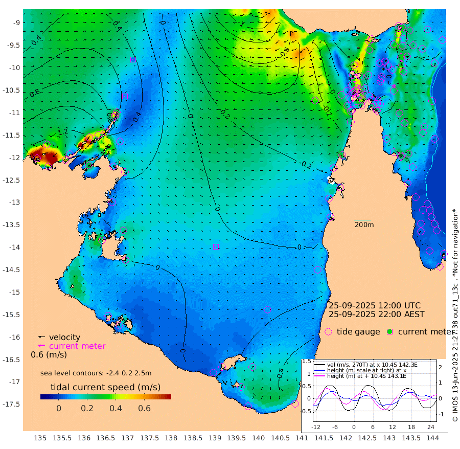 8cm/s -109T +3cm/s rms + 7cm/s -42T. ARA-GOC87 57m 11cm/s -124T +3cm/s rms + 2cm/s -2T. ARA-GOC87 60m 6cm/s -114T +2cm/s rms + 3cm/s 61T. ARA-GOC87 47m 51cm Daru 43cm Bobo Island 32cm Meer Island Barge 50cm Bramble Cay 56cm Unnamed Cay 49cm Pearce Cay 47cm Stephens Island 57cm Merrie England Shoals 58cm Mutacomal Reef 36cm Darnley Island Barge 38cm East Cay 37cm Yorke Island Barge 53cm Rennel Island 36cm Aureed Island 48cm Dungeness Reef 28cm Zagai Island 38cm Yam Island 33cm Dauan Island 17cm Saibai Island 40cm Phipi Reef 37cm Warrior Reef - West 26cm Mabuiag Island Barge 46cm Half Way Island 41cm Coconut Island 48cm Dugong Islet 41cm Poll Island 42cm Kirkcaldie Reef 38cm Suarji Island 30cm Sue Islet 44cm Hawkesbury Island 37cm Alert Patches 34cm Twin Island 46cm Badu Island 33cm St Pauls (Moa Island) 42cm Kubin (Moa Island) 34cm Ince Point 32cm Thursday Island 33cm Nardana Patches 42cm Turtle Head 35cm Round Island 45cm Goods Island 28cm Booby Island 42cm White Rocks Area -24cm Carpentaria 28cm Papou Point 20cm Bampfield Head 11cm Crab Island 26cm Red Wallis Island 39cm Packe Island 46cm Harrington Reef 27cm Herald Camp 1cm Sharp Point 29cm Red Island Point 25cm Possession Island 33cm Alpha Rock 39cm Frederick Point 53cm Wyborn Reef Light 49cm Tetley Island 29cm Triangle Reef 50cm Turtle Head Island 33cm Maclennan Cay 30cm Raine Island 46cm Mcsweeny Reef 42cm Collette Reef 33cm Shadwell Reef 47cm Hannibal Island 52cm Round Point -11cm Vrilya Point 42cm Cape Grenville 40cm Hicks Island 42cm Sir Charles Hardy Island 11cm Harvey Island 40cm Kay Reef 35cm Rocky Island 31cm Chapman Island 26cm Ham Reef 31cm Jubilee Reef 27cm Night Island 27cm Unnamed Reef No. 3 37cm Morris Island 33cm 1st 3 Mile Opening 30cm Creech Reef 34cm Fife Island 38cm Eden Reef 34cm Stanley Island 42cm Normanby River 146cm Yabooma Island 169cm Hutchison River 140cm Elcho Island 140cm North West Crocodile Island 61cm Cape Wessel 116cm Stevens Island 52cm Guluwuru Island 102cm Hopeful Bay 79cm Auster Point 76cm Two Island Bay 112cm Cadell Strait -27cm Mallison Island 57cm Melville Bay (Gove Harbour) 52cm Truant Island 27cm Cape Arnhem 24cm Cape Grey 17cm Hawk Island 2cm Milner Bay (Groote Eylandt) 9cm Cape Beatrice -13cm West Island -26cm Centre Island 12cm Mornington Island 16cm West Wellesley Islands 55cm Bountiful Island 68cm Albert River Mouth 51cm Sweers Island 57cm Karumba 26cm Nassau River Offshore 19cm Christmas Creek 11cm Archer River 4cm Boyd Point 19cm Weipa (Humbug Point) -12cm Pennefather River -6cm Cullen Point