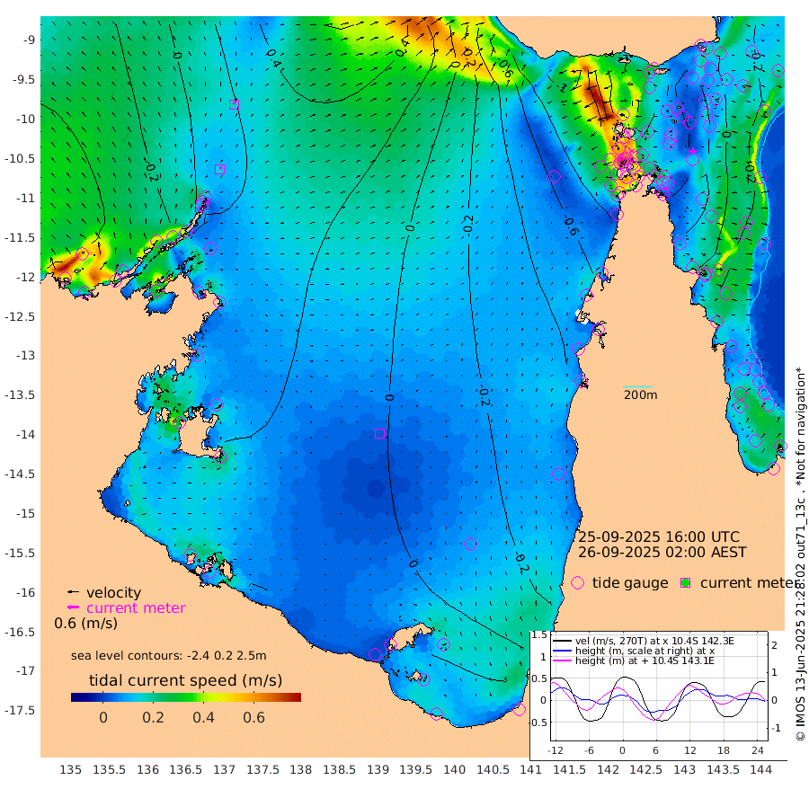 14cm/s 23T +3cm/s rms + 7cm/s -42T. ARA-GOC87 57m 3cm/s -141T +3cm/s rms + 2cm/s -2T. ARA-GOC87 60m 17cm/s 13T +2cm/s rms + 3cm/s 61T. ARA-GOC87 47m 8cm Daru 9cm Bobo Island -26cm Meer Island Barge -20cm Bramble Cay -11cm Unnamed Cay -8cm Pearce Cay -15cm Stephens Island -16cm Merrie England Shoals 4cm Mutacomal Reef -11cm Darnley Island Barge -29cm East Cay 1cm Yorke Island Barge -7cm Rennel Island 7cm Aureed Island 0cm Dungeness Reef 37cm Zagai Island 24cm Yam Island 39cm Dauan Island 48cm Saibai Island 17cm Phipi Reef 42cm Warrior Reef - West -1cm Mabuiag Island Barge -10cm Half Way Island 5cm Coconut Island -3cm Dugong Islet 12cm Poll Island -3cm Kirkcaldie Reef 9cm Suarji Island 16cm Sue Islet -98cm Hawkesbury Island -15cm Alert Patches -4cm Twin Island -75cm Badu Island 5cm St Pauls (Moa Island) -59cm Kubin (Moa Island) -22cm Ince Point -40cm Thursday Island -33cm Nardana Patches -62cm Turtle Head -77cm Round Island -99cm Goods Island -120cm Booby Island -114cm White Rocks Area -91cm Carpentaria -3cm Papou Point -126cm Bampfield Head -104cm Crab Island -102cm Red Wallis Island -73cm Packe Island -4cm Harrington Reef -99cm Herald Camp 13cm Sharp Point -64cm Red Island Point -40cm Possession Island 12cm Alpha Rock 0cm Frederick Point 7cm Wyborn Reef Light 11cm Tetley Island -14cm Triangle Reef -23cm Turtle Head Island -27cm Maclennan Cay -38cm Raine Island -10cm Mcsweeny Reef -13cm Collette Reef -24cm Shadwell Reef -15cm Hannibal Island -26cm Round Point -104cm Vrilya Point -28cm Cape Grenville -30cm Hicks Island -23cm Sir Charles Hardy Island -9cm Harvey Island -34cm Kay Reef -34cm Rocky Island -34cm Chapman Island -32cm Ham Reef -33cm Jubilee Reef -29cm Night Island -33cm Unnamed Reef No. 3 -37cm Morris Island -44cm 1st 3 Mile Opening -37cm Creech Reef -28cm Fife Island -41cm Eden Reef -41cm Stanley Island -40cm Normanby River -45cm Yabooma Island -32cm Hutchison River -28cm Elcho Island -29cm North West Crocodile Island 20cm Cape Wessel -7cm Stevens Island 49cm Guluwuru Island -13cm Hopeful Bay -6cm Auster Point 2cm Two Island Bay 9cm Cadell Strait 162cm Mallison Island 34cm Melville Bay (Gove Harbour) 36cm Truant Island 35cm Cape Arnhem 21cm Cape Grey 28cm Hawk Island 22cm Milner Bay (Groote Eylandt) 24cm Cape Beatrice 23cm West Island 18cm Centre Island 33cm Mornington Island 32cm West Wellesley Islands 24cm Bountiful Island 51cm Albert River Mouth 42cm Sweers Island 34cm Karumba 5cm Nassau River Offshore -17cm Christmas Creek -54cm Archer River -53cm Boyd Point -67cm Weipa (Humbug Point) -76cm Pennefather River -81cm Cullen Point