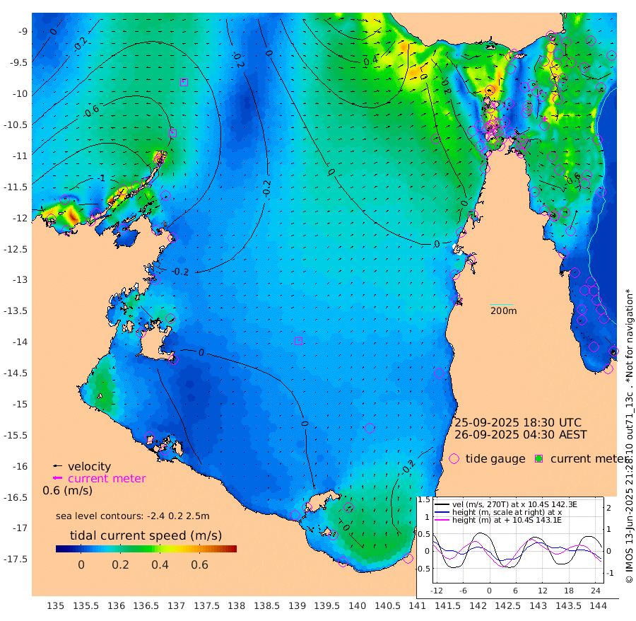 18cm/s -43T +3cm/s rms + 7cm/s -42T. ARA-GOC87 57m 9cm/s 15T +3cm/s rms + 2cm/s -2T. ARA-GOC87 60m 16cm/s -50T +2cm/s rms + 3cm/s 61T. ARA-GOC87 47m -83cm Daru -79cm Bobo Island -56cm Meer Island Barge -75cm Bramble Cay -84cm Unnamed Cay -85cm Pearce Cay -76cm Stephens Island -83cm Merrie England Shoals -84cm Mutacomal Reef -67cm Darnley Island Barge -64cm East Cay -70cm Yorke Island Barge -80cm Rennel Island -70cm Aureed Island -81cm Dungeness Reef -63cm Zagai Island -65cm Yam Island -62cm Dauan Island -49cm Saibai Island -85cm Phipi Reef -69cm Warrior Reef - West -59cm Mabuiag Island Barge -72cm Half Way Island -81cm Coconut Island -73cm Dugong Islet -72cm Poll Island -74cm Kirkcaldie Reef -75cm Suarji Island -64cm Sue Islet -83cm Hawkesbury Island -77cm Alert Patches -71cm Twin Island -93cm Badu Island -69cm St Pauls (Moa Island) -74cm Kubin (Moa Island) -68cm Ince Point -68cm Thursday Island -68cm Nardana Patches -78cm Turtle Head -75cm Round Island -82cm Goods Island -67cm Booby Island -74cm White Rocks Area -10cm Carpentaria -62cm Papou Point -76cm Bampfield Head -49cm Crab Island -56cm Red Wallis Island -70cm Packe Island -80cm Harrington Reef -63cm Herald Camp -9cm Sharp Point -70cm Red Island Point -70cm Possession Island -57cm Alpha Rock -75cm Frederick Point -86cm Wyborn Reef Light -82cm Tetley Island -54cm Triangle Reef -94cm Turtle Head Island -55cm Maclennan Cay -53cm Raine Island -75cm Mcsweeny Reef -72cm Collette Reef -58cm Shadwell Reef -78cm Hannibal Island -79cm Round Point -28cm Vrilya Point -65cm Cape Grenville -66cm Hicks Island -63cm Sir Charles Hardy Island -19cm Harvey Island -63cm Kay Reef -57cm Rocky Island -55cm Chapman Island -47cm Ham Reef -53cm Jubilee Reef -47cm Night Island -49cm Unnamed Reef No. 3 -59cm Morris Island -57cm 1st 3 Mile Opening -53cm Creech Reef -52cm Fife Island -61cm Eden Reef -55cm Stanley Island -60cm Normanby River -129cm Yabooma Island -158cm Hutchison River -122cm Elcho Island -117cm North West Crocodile Island -62cm Cape Wessel -110cm Stevens Island -68cm Guluwuru Island -96cm Hopeful Bay -83cm Auster Point -72cm Two Island Bay -119cm Cadell Strait -18cm Mallison Island -70cm Melville Bay (Gove Harbour) -69cm Truant Island -40cm Cape Arnhem -30cm Cape Grey -14cm Hawk Island 16cm Milner Bay (Groote Eylandt) 20cm Cape Beatrice 53cm West Island 58cm Centre Island 22cm Mornington Island 27cm West Wellesley Islands -11cm Bountiful Island 7cm Albert River Mouth 7cm Sweers Island 1cm Karumba -6cm Nassau River Offshore -20cm Christmas Creek -33cm Archer River -26cm Boyd Point -41cm Weipa (Humbug Point) -23cm Pennefather River -22cm Cullen Point