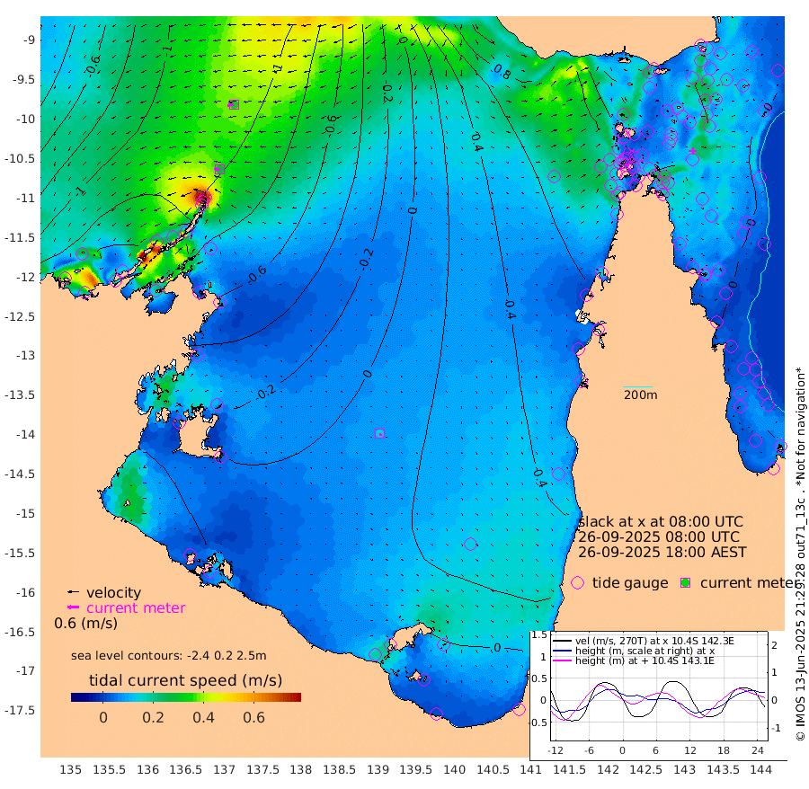 29cm/s -89T +3cm/s rms + 7cm/s -42T. ARA-GOC87 57m 14cm/s 157T +3cm/s rms + 2cm/s -2T. ARA-GOC87 60m 33cm/s -101T +2cm/s rms + 3cm/s 61T. ARA-GOC87 47m -25cm Daru -24cm Bobo Island 7cm Meer Island Barge -9cm Bramble Cay -14cm Unnamed Cay -14cm Pearce Cay -7cm Stephens Island -14cm Merrie England Shoals -23cm Mutacomal Reef -2cm Darnley Island Barge 6cm East Cay -9cm Yorke Island Barge -13cm Rennel Island -9cm Aureed Island -11cm Dungeness Reef -25cm Zagai Island -18cm Yam Island -17cm Dauan Island -12cm Saibai Island -17cm Phipi Reef -25cm Warrior Reef - West 5cm Mabuiag Island Barge -7cm Half Way Island -19cm Coconut Island -5cm Dugong Islet -15cm Poll Island -7cm Kirkcaldie Reef 0cm Suarji Island -8cm Sue Islet 43cm Hawkesbury Island 8cm Alert Patches 1cm Twin Island 28cm Badu Island -2cm St Pauls (Moa Island) 23cm Kubin (Moa Island) 13cm Ince Point 25cm Thursday Island 20cm Nardana Patches 33cm Turtle Head 27cm Round Island 51cm Goods Island 73cm Booby Island 64cm White Rocks Area 91cm Carpentaria -4cm Papou Point 65cm Bampfield Head 56cm Crab Island 65cm Red Wallis Island 38cm Packe Island -9cm Harrington Reef 57cm Herald Camp -2cm Sharp Point 32cm Red Island Point 14cm Possession Island -8cm Alpha Rock -7cm Frederick Point -29cm Wyborn Reef Light -29cm Tetley Island 3cm Triangle Reef -17cm Turtle Head Island 13cm Maclennan Cay 13cm Raine Island -8cm Mcsweeny Reef -6cm Collette Reef 5cm Shadwell Reef -9cm Hannibal Island -8cm Round Point 70cm Vrilya Point 6cm Cape Grenville 4cm Hicks Island 13cm Sir Charles Hardy Island 2cm Harvey Island 11cm Kay Reef 13cm Rocky Island 16cm Chapman Island 18cm Ham Reef 14cm Jubilee Reef 11cm Night Island 18cm Unnamed Reef No. 3 13cm Morris Island 20cm 1st 3 Mile Opening 19cm Creech Reef 8cm Fife Island 15cm Eden Reef 18cm Stanley Island 13cm Normanby River -151cm Yabooma Island -188cm Hutchison River -161cm Elcho Island -154cm North West Crocodile Island -115cm Cape Wessel -164cm Stevens Island -122cm Guluwuru Island -139cm Hopeful Bay -123cm Auster Point -130cm Two Island Bay -178cm Cadell Strait -160cm Mallison Island -113cm Melville Bay (Gove Harbour) -118cm Truant Island -77cm Cape Arnhem -48cm Cape Grey -45cm Hawk Island -18cm Milner Bay (Groote Eylandt) -8cm Cape Beatrice 34cm West Island 36cm Centre Island 14cm Mornington Island 24cm West Wellesley Islands 20cm Bountiful Island -29cm Albert River Mouth -24cm Sweers Island -18cm Karumba 32cm Nassau River Offshore 45cm Christmas Creek 51cm Archer River 55cm Boyd Point 57cm Weipa (Humbug Point) 50cm Pennefather River 65cm Cullen Point