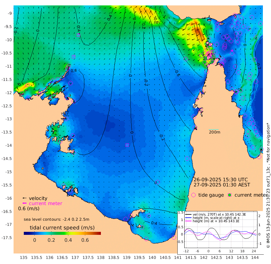 13cm/s 37T +3cm/s rms + 7cm/s -42T. ARA-GOC87 57m 6cm/s -104T +3cm/s rms + 2cm/s -2T. ARA-GOC87 60m 17cm/s 28T +2cm/s rms + 3cm/s 61T. ARA-GOC87 47m 17cm Daru 15cm Bobo Island -19cm Meer Island Barge -9cm Bramble Cay 0cm Unnamed Cay -2cm Pearce Cay -9cm Stephens Island -5cm Merrie England Shoals 13cm Mutacomal Reef -5cm Darnley Island Barge -23cm East Cay 5cm Yorke Island Barge 0cm Rennel Island 8cm Aureed Island 7cm Dungeness Reef 41cm Zagai Island 28cm Yam Island 49cm Dauan Island 54cm Saibai Island 34cm Phipi Reef 48cm Warrior Reef - West 5cm Mabuiag Island Barge -6cm Half Way Island 10cm Coconut Island 0cm Dugong Islet 14cm Poll Island 2cm Kirkcaldie Reef 11cm Suarji Island 19cm Sue Islet -89cm Hawkesbury Island -12cm Alert Patches -4cm Twin Island -59cm Badu Island 5cm St Pauls (Moa Island) -55cm Kubin (Moa Island) -20cm Ince Point -38cm Thursday Island -31cm Nardana Patches -55cm Turtle Head -73cm Round Island -90cm Goods Island -117cm Booby Island -108cm White Rocks Area -111cm Carpentaria -2cm Papou Point -128cm Bampfield Head -103cm Crab Island -104cm Red Wallis Island -73cm Packe Island -3cm Harrington Reef -102cm Herald Camp 11cm Sharp Point -57cm Red Island Point -40cm Possession Island 11cm Alpha Rock 1cm Frederick Point 13cm Wyborn Reef Light 16cm Tetley Island -10cm Triangle Reef -16cm Turtle Head Island -23cm Maclennan Cay -29cm Raine Island -3cm Mcsweeny Reef -5cm Collette Reef -16cm Shadwell Reef -6cm Hannibal Island -16cm Round Point -110cm Vrilya Point -21cm Cape Grenville -22cm Hicks Island -16cm Sir Charles Hardy Island -7cm Harvey Island -26cm Kay Reef -25cm Rocky Island -27cm Chapman Island -27cm Ham Reef -25cm Jubilee Reef -25cm Night Island -28cm Unnamed Reef No. 3 -29cm Morris Island -35cm 1st 3 Mile Opening -31cm Creech Reef -23cm Fife Island -32cm Eden Reef -34cm Stanley Island -32cm Normanby River 16cm Yabooma Island 42cm Hutchison River 34cm Elcho Island 32cm North West Crocodile Island 44cm Cape Wessel 45cm Stevens Island 78cm Guluwuru Island 32cm Hopeful Bay 29cm Auster Point 33cm Two Island Bay 63cm Cadell Strait 169cm Mallison Island 63cm Melville Bay (Gove Harbour) 62cm Truant Island 50cm Cape Arnhem 39cm Cape Grey 40cm Hawk Island 29cm Milner Bay (Groote Eylandt) 32cm Cape Beatrice 19cm West Island 11cm Centre Island 46cm Mornington Island 45cm West Wellesley Islands 58cm Bountiful Island 96cm Albert River Mouth 84cm Sweers Island 74cm Karumba 19cm Nassau River Offshore -9cm Christmas Creek -47cm Archer River -55cm Boyd Point -61cm Weipa (Humbug Point) -78cm Pennefather River -90cm Cullen Point
