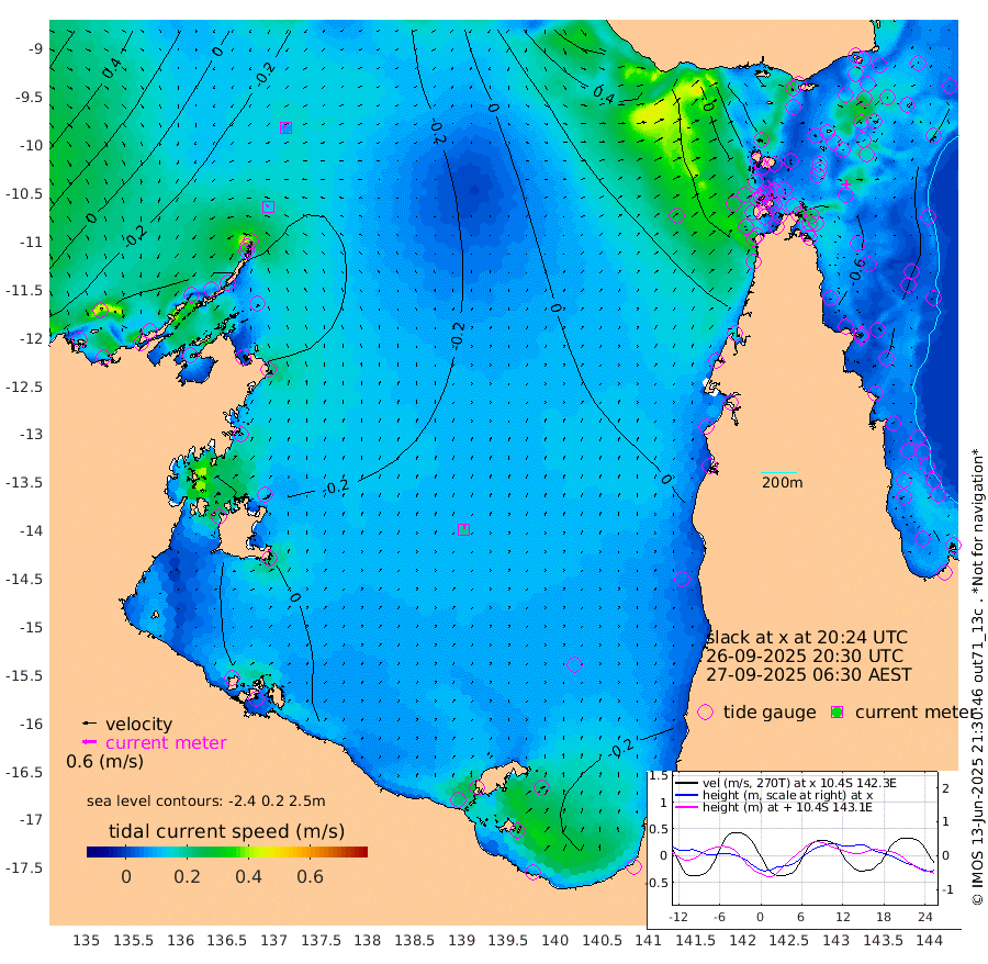 14cm/s -60T +3cm/s rms + 7cm/s -42T. ARA-GOC87 57m 20cm/s 5T +3cm/s rms + 2cm/s -2T. ARA-GOC87 60m 9cm/s -77T +2cm/s rms + 3cm/s 61T. ARA-GOC87 47m -87cm Daru -81cm Bobo Island -39cm Meer Island Barge -55cm Bramble Cay -71cm Unnamed Cay -74cm Pearce Cay -60cm Stephens Island -64cm Merrie England Shoals -80cm Mutacomal Reef -59cm Darnley Island Barge -40cm East Cay -71cm Yorke Island Barge -70cm Rennel Island -73cm Aureed Island -84cm Dungeness Reef -99cm Zagai Island -91cm Yam Island -117cm Dauan Island -111cm Saibai Island -126cm Phipi Reef -112cm Warrior Reef - West -82cm Mabuiag Island Barge -61cm Half Way Island -83cm Coconut Island -69cm Dugong Islet -83cm Poll Island -78cm Kirkcaldie Reef -93cm Suarji Island -85cm Sue Islet -46cm Hawkesbury Island -82cm Alert Patches -79cm Twin Island -72cm Badu Island -87cm St Pauls (Moa Island) -55cm Kubin (Moa Island) -70cm Ince Point -60cm Thursday Island -65cm Nardana Patches -60cm Turtle Head -47cm Round Island -41cm Goods Island -16cm Booby Island -19cm White Rocks Area 22cm Carpentaria -71cm Papou Point -21cm Bampfield Head -5cm Crab Island -12cm Red Wallis Island -41cm Packe Island -72cm Harrington Reef -27cm Herald Camp -23cm Sharp Point -49cm Red Island Point -61cm Possession Island -70cm Alpha Rock -79cm Frederick Point -84cm Wyborn Reef Light -86cm Tetley Island -45cm Triangle Reef -76cm Turtle Head Island -36cm Maclennan Cay -28cm Raine Island -65cm Mcsweeny Reef -60cm Collette Reef -43cm Shadwell Reef -63cm Hannibal Island -54cm Round Point 15cm Vrilya Point -42cm Cape Grenville -43cm Hicks Island -49cm Sir Charles Hardy Island -12cm Harvey Island -36cm Kay Reef -35cm Rocky Island -32cm Chapman Island -27cm Ham Reef -32cm Jubilee Reef -26cm Night Island -26cm Unnamed Reef No. 3 -32cm Morris Island -30cm 1st 3 Mile Opening -28cm Creech Reef -28cm Fife Island -32cm Eden Reef -26cm Stanley Island -27cm Normanby River -48cm Yabooma Island -80cm Hutchison River -52cm Elcho Island -47cm North West Crocodile Island -39cm Cape Wessel -54cm Stevens Island -77cm Guluwuru Island -44cm Hopeful Bay -42cm Auster Point -35cm Two Island Bay -80cm Cadell Strait -113cm Mallison Island -68cm Melville Bay (Gove Harbour) -67cm Truant Island -48cm Cape Arnhem -34cm Cape Grey -22cm Hawk Island 13cm Milner Bay (Groote Eylandt) 15cm Cape Beatrice 43cm West Island 49cm Centre Island 0cm Mornington Island 6cm West Wellesley Islands -31cm Bountiful Island -12cm Albert River Mouth -9cm Sweers Island -14cm Karumba -20cm Nassau River Offshore -28cm Christmas Creek -20cm Archer River -15cm Boyd Point -21cm Weipa (Humbug Point) 5cm Pennefather River 6cm Cullen Point