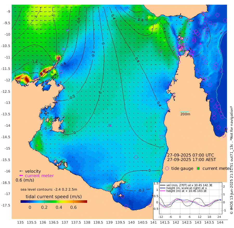 12cm/s -91T +3cm/s rms + 7cm/s -42T. ARA-GOC87 57m 21cm/s 153T +3cm/s rms + 2cm/s -2T. ARA-GOC87 60m 19cm/s -99T +2cm/s rms + 3cm/s 61T. ARA-GOC87 47m 2cm Daru 5cm Bobo Island 20cm Meer Island Barge 11cm Bramble Cay 7cm Unnamed Cay 8cm Pearce Cay 10cm Stephens Island 8cm Merrie England Shoals 4cm Mutacomal Reef 20cm Darnley Island Barge 20cm East Cay 16cm Yorke Island Barge 5cm Rennel Island 17cm Aureed Island 6cm Dungeness Reef 5cm Zagai Island 2cm Yam Island 6cm Dauan Island 22cm Saibai Island 3cm Phipi Reef 6cm Warrior Reef - West 15cm Mabuiag Island Barge 7cm Half Way Island 8cm Coconut Island 9cm Dugong Islet 5cm Poll Island 6cm Kirkcaldie Reef 14cm Suarji Island 17cm Sue Islet 23cm Hawkesbury Island 18cm Alert Patches 14cm Twin Island 15cm Badu Island 10cm St Pauls (Moa Island) 12cm Kubin (Moa Island) 15cm Ince Point 20cm Thursday Island 18cm Nardana Patches 20cm Turtle Head 16cm Round Island 25cm Goods Island 39cm Booby Island 28cm White Rocks Area 69cm Carpentaria 5cm Papou Point 44cm Bampfield Head 29cm Crab Island 37cm Red Wallis Island 24cm Packe Island 9cm Harrington Reef 36cm Herald Camp 5cm Sharp Point 21cm Red Island Point 16cm Possession Island 12cm Alpha Rock 11cm Frederick Point 2cm Wyborn Reef Light 2cm Tetley Island 21cm Triangle Reef 0cm Turtle Head Island 22cm Maclennan Cay 19cm Raine Island 13cm Mcsweeny Reef 17cm Collette Reef 21cm Shadwell Reef 15cm Hannibal Island 12cm Round Point 44cm Vrilya Point 21cm Cape Grenville 15cm Hicks Island 28cm Sir Charles Hardy Island 6cm Harvey Island 25cm Kay Reef 23cm Rocky Island 30cm Chapman Island 30cm Ham Reef 24cm Jubilee Reef 21cm Night Island 30cm Unnamed Reef No. 3 21cm Morris Island 22cm 1st 3 Mile Opening 27cm Creech Reef 20cm Fife Island 26cm Eden Reef 26cm Stanley Island 21cm Normanby River -174cm Yabooma Island -203cm Hutchison River -178cm Elcho Island -176cm North West Crocodile Island -92cm Cape Wessel -156cm Stevens Island -78cm Guluwuru Island -132cm Hopeful Bay -113cm Auster Point -120cm Two Island Bay -160cm Cadell Strait 12cm Mallison Island -79cm Melville Bay (Gove Harbour) -79cm Truant Island -47cm Cape Arnhem -37cm Cape Grey -33cm Hawk Island -27cm Milner Bay (Groote Eylandt) -24cm Cape Beatrice 4cm West Island 9cm Centre Island -6cm Mornington Island 0cm West Wellesley Islands -15cm Bountiful Island -74cm Albert River Mouth -62cm Sweers Island -60cm Karumba 14cm Nassau River Offshore 35cm Christmas Creek 42cm Archer River 47cm Boyd Point 41cm Weipa (Humbug Point) 38cm Pennefather River 47cm Cullen Point