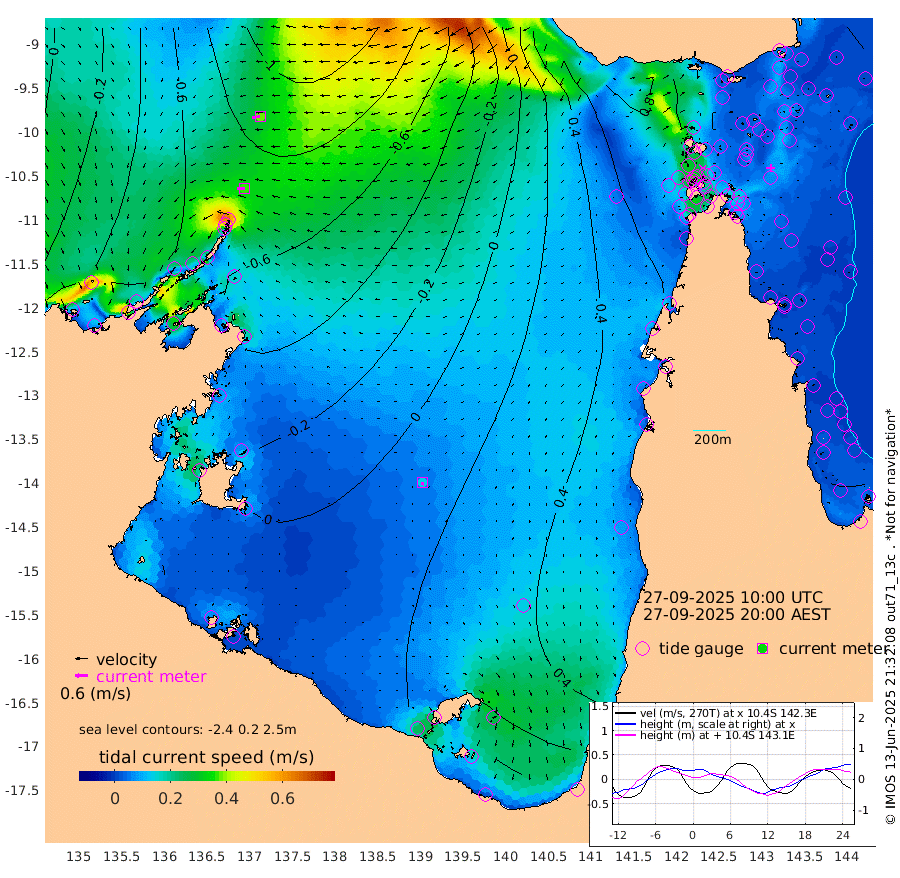 37cm/s -93T +3cm/s rms + 7cm/s -42T. ARA-GOC87 57m 14cm/s -172T +3cm/s rms + 2cm/s -2T. ARA-GOC87 60m 39cm/s -103T +2cm/s rms + 3cm/s 61T. ARA-GOC87 47m 15cm Daru 11cm Bobo Island 24cm Meer Island Barge 22cm Bramble Cay 23cm Unnamed Cay 27cm Pearce Cay 28cm Stephens Island 23cm Merrie England Shoals 18cm Mutacomal Reef 21cm Darnley Island Barge 31cm East Cay 18cm Yorke Island Barge 28cm Rennel Island 21cm Aureed Island 29cm Dungeness Reef -3cm Zagai Island 14cm Yam Island 5cm Dauan Island -5cm Saibai Island 19cm Phipi Reef 5cm Warrior Reef - West 26cm Mabuiag Island Barge 30cm Half Way Island 17cm Coconut Island 34cm Dugong Islet 21cm Poll Island 31cm Kirkcaldie Reef 36cm Suarji Island 15cm Sue Islet 88cm Hawkesbury Island 44cm Alert Patches 35cm Twin Island 67cm Badu Island 31cm St Pauls (Moa Island) 65cm Kubin (Moa Island) 47cm Ince Point 57cm Thursday Island 53cm Nardana Patches 72cm Turtle Head 67cm Round Island 92cm Goods Island 102cm Booby Island 103cm White Rocks Area 78cm Carpentaria 27cm Papou Point 91cm Bampfield Head 78cm Crab Island 94cm Red Wallis Island 78cm Packe Island 34cm Harrington Reef 92cm Herald Camp 2cm Sharp Point 68cm Red Island Point 49cm Possession Island 19cm Alpha Rock 30cm Frederick Point 11cm Wyborn Reef Light 10cm Tetley Island 20cm Triangle Reef 28cm Turtle Head Island 34cm Maclennan Cay 29cm Raine Island 24cm Mcsweeny Reef 21cm Collette Reef 22cm Shadwell Reef 22cm Hannibal Island 27cm Round Point 75cm Vrilya Point 32cm Cape Grenville 31cm Hicks Island 33cm Sir Charles Hardy Island 10cm Harvey Island 32cm Kay Reef 32cm Rocky Island 30cm Chapman Island 29cm Ham Reef 28cm Jubilee Reef 27cm Night Island 31cm Unnamed Reef No. 3 33cm Morris Island 35cm 1st 3 Mile Opening 34cm Creech Reef 29cm Fife Island 33cm Eden Reef 35cm Stanley Island 38cm Normanby River -51cm Yabooma Island -73cm Hutchison River -65cm Elcho Island -56cm North West Crocodile Island -83cm Cape Wessel -89cm Stevens Island -107cm Guluwuru Island -73cm Hopeful Bay -72cm Auster Point -79cm Two Island Bay -104cm Cadell Strait -242cm Mallison Island -88cm Melville Bay (Gove Harbour) -97cm Truant Island -70cm Cape Arnhem -39cm Cape Grey -36cm Hawk Island -20cm Milner Bay (Groote Eylandt) -4cm Cape Beatrice 25cm West Island 21cm Centre Island 26cm Mornington Island 33cm West Wellesley Islands 51cm Bountiful Island 14cm Albert River Mouth 13cm Sweers Island 29cm Karumba 52cm Nassau River Offshore 59cm Christmas Creek 62cm Archer River 60cm Boyd Point 72cm Weipa (Humbug Point) 53cm Pennefather River 69cm Cullen Point