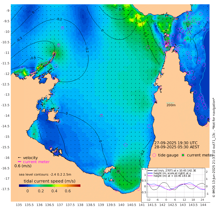 16cm/s -25T +3cm/s rms + 7cm/s -42T. ARA-GOC87 57m 18cm/s 5T +3cm/s rms + 2cm/s -2T. ARA-GOC87 60m 12cm/s -20T +2cm/s rms + 3cm/s 61T. ARA-GOC87 47m -79cm Daru -71cm Bobo Island -42cm Meer Island Barge -53cm Bramble Cay -68cm Unnamed Cay -73cm Pearce Cay -62cm Stephens Island -61cm Merrie England Shoals -72cm Mutacomal Reef -55cm Darnley Island Barge -44cm East Cay -64cm Yorke Island Barge -71cm Rennel Island -65cm Aureed Island -86cm Dungeness Reef -84cm Zagai Island -87cm Yam Island -109cm Dauan Island -88cm Saibai Island -126cm Phipi Reef -96cm Warrior Reef - West -91cm Mabuiag Island Barge -65cm Half Way Island -78cm Coconut Island -72cm Dugong Islet -82cm Poll Island -83cm Kirkcaldie Reef -95cm Suarji Island -76cm Sue Islet -117cm Hawkesbury Island -97cm Alert Patches -89cm Twin Island -122cm Badu Island -96cm St Pauls (Moa Island) -108cm Kubin (Moa Island) -94cm Ince Point -95cm Thursday Island -96cm Nardana Patches -106cm Turtle Head -109cm Round Island -109cm Goods Island -96cm Booby Island -93cm White Rocks Area -36cm Carpentaria -84cm Papou Point -107cm Bampfield Head -74cm Crab Island -83cm Red Wallis Island -100cm Packe Island -75cm Harrington Reef -107cm Herald Camp -19cm Sharp Point -91cm Red Island Point -97cm Possession Island -69cm Alpha Rock -84cm Frederick Point -78cm Wyborn Reef Light -79cm Tetley Island -45cm Triangle Reef -90cm Turtle Head Island -43cm Maclennan Cay -36cm Raine Island -62cm Mcsweeny Reef -56cm Collette Reef -43cm Shadwell Reef -58cm Hannibal Island -56cm Round Point -52cm Vrilya Point -45cm Cape Grenville -50cm Hicks Island -49cm Sir Charles Hardy Island -15cm Harvey Island -37cm Kay Reef -39cm Rocky Island -34cm Chapman Island -29cm Ham Reef -36cm Jubilee Reef -32cm Night Island -28cm Unnamed Reef No. 3 -39cm Morris Island -42cm 1st 3 Mile Opening -36cm Creech Reef -31cm Fife Island -38cm Eden Reef -34cm Stanley Island -34cm Normanby River -92cm Yabooma Island -117cm Hutchison River -85cm Elcho Island -82cm North West Crocodile Island -34cm Cape Wessel -69cm Stevens Island -47cm Guluwuru Island -61cm Hopeful Bay -55cm Auster Point -52cm Two Island Bay -89cm Cadell Strait 22cm Mallison Island -49cm Melville Bay (Gove Harbour) -48cm Truant Island -27cm Cape Arnhem -15cm Cape Grey -4cm Hawk Island 32cm Milner Bay (Groote Eylandt) 34cm Cape Beatrice 65cm West Island 68cm Centre Island 30cm Mornington Island 40cm West Wellesley Islands 4cm Bountiful Island 30cm Albert River Mouth 33cm Sweers Island 16cm Karumba -6cm Nassau River Offshore -29cm Christmas Creek -43cm Archer River -45cm Boyd Point -58cm Weipa (Humbug Point) -39cm Pennefather River -49cm Cullen Point